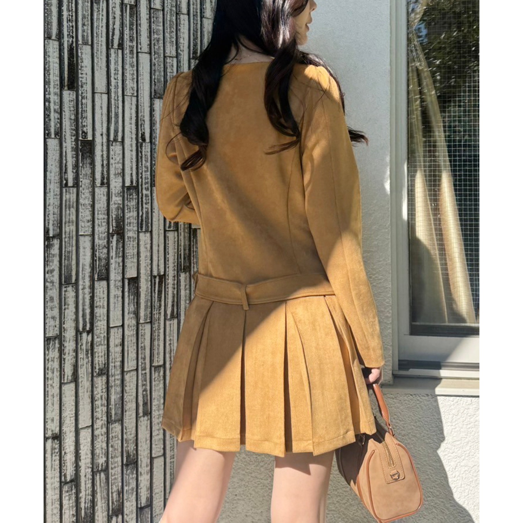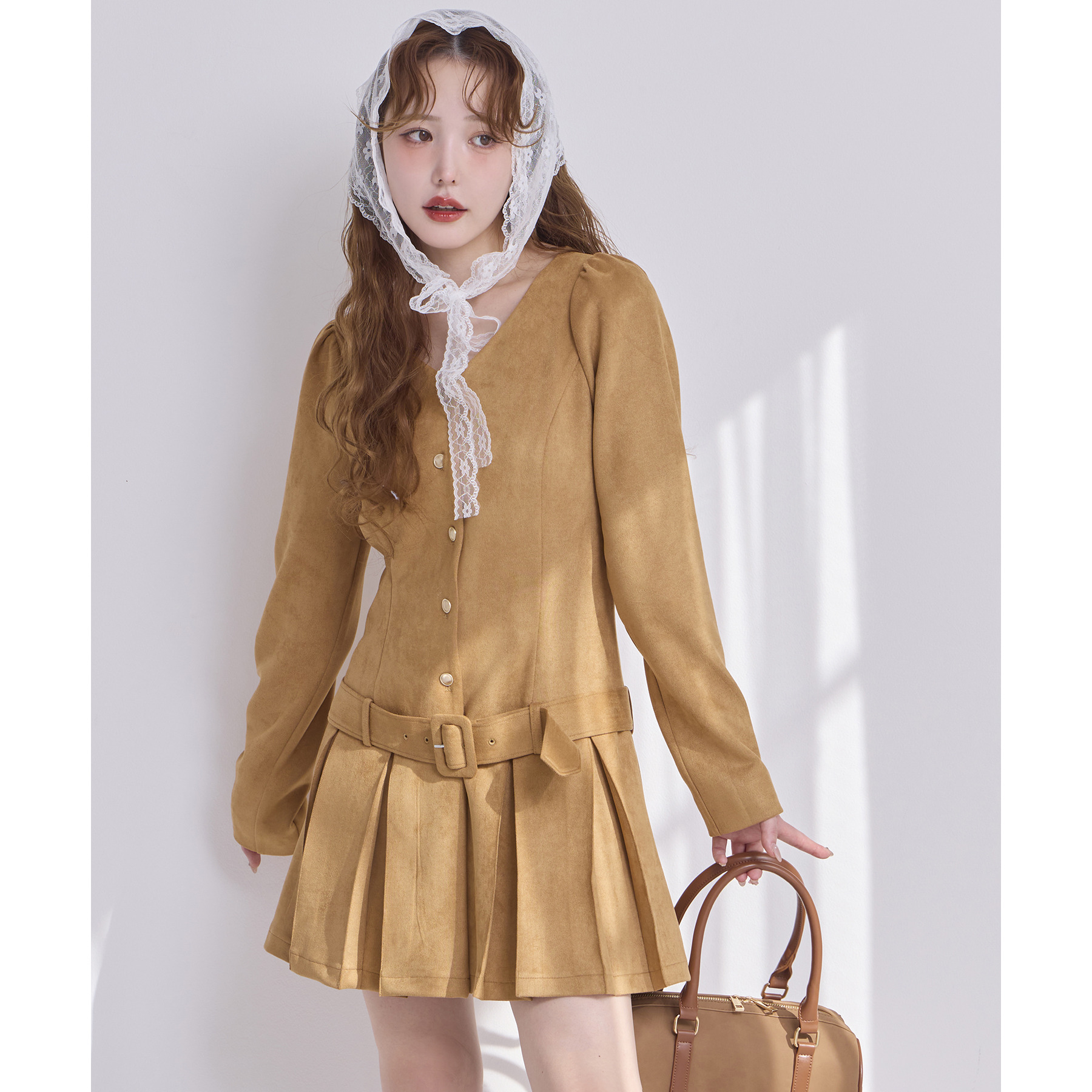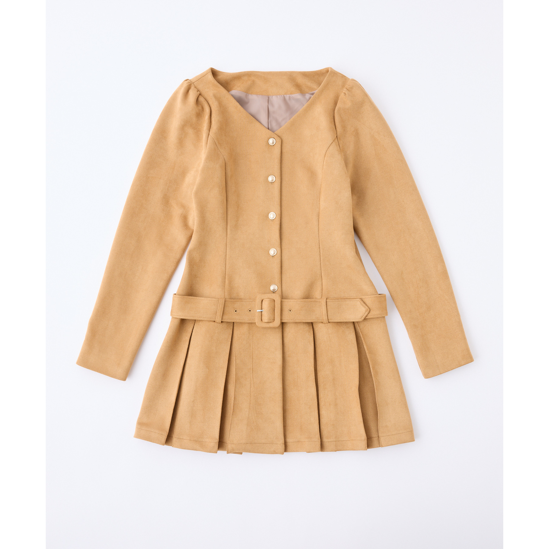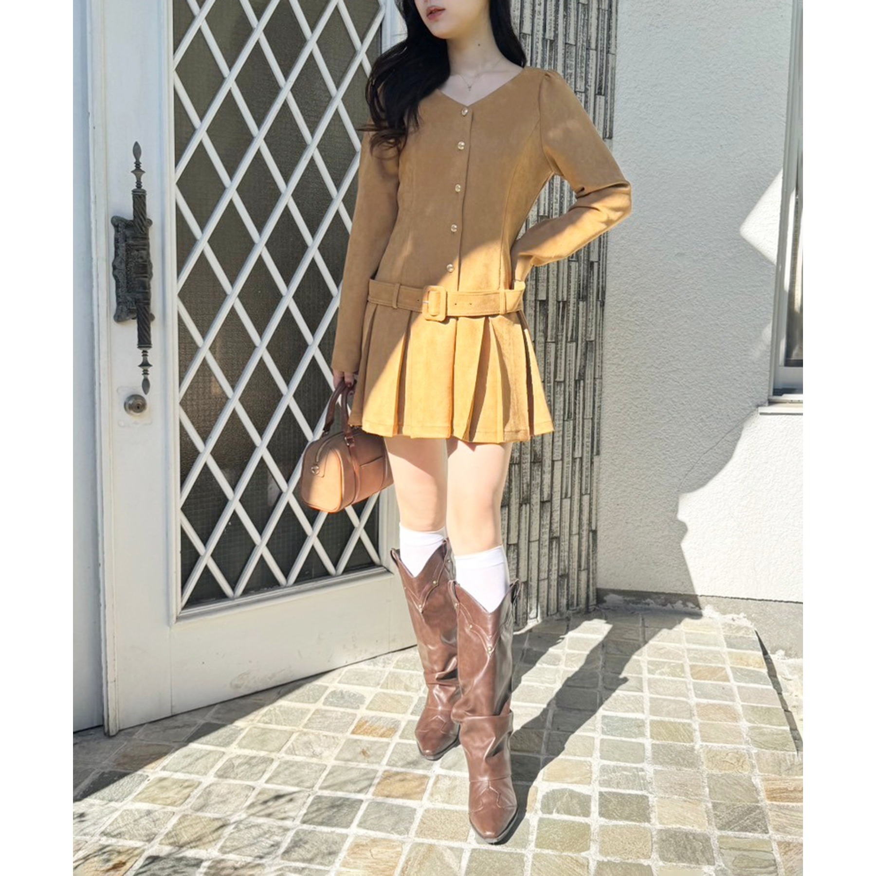 ウエストラインは程よくフィットし、裾はプリーツでゆるやかなAラインシルエットに。