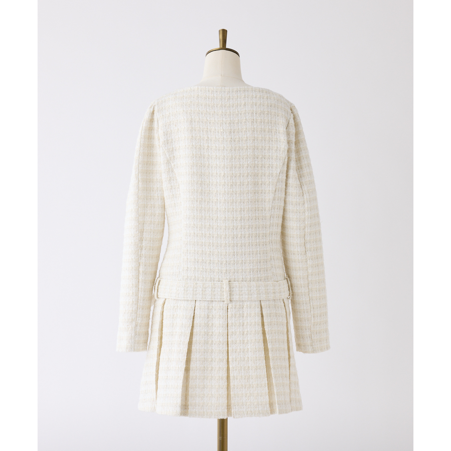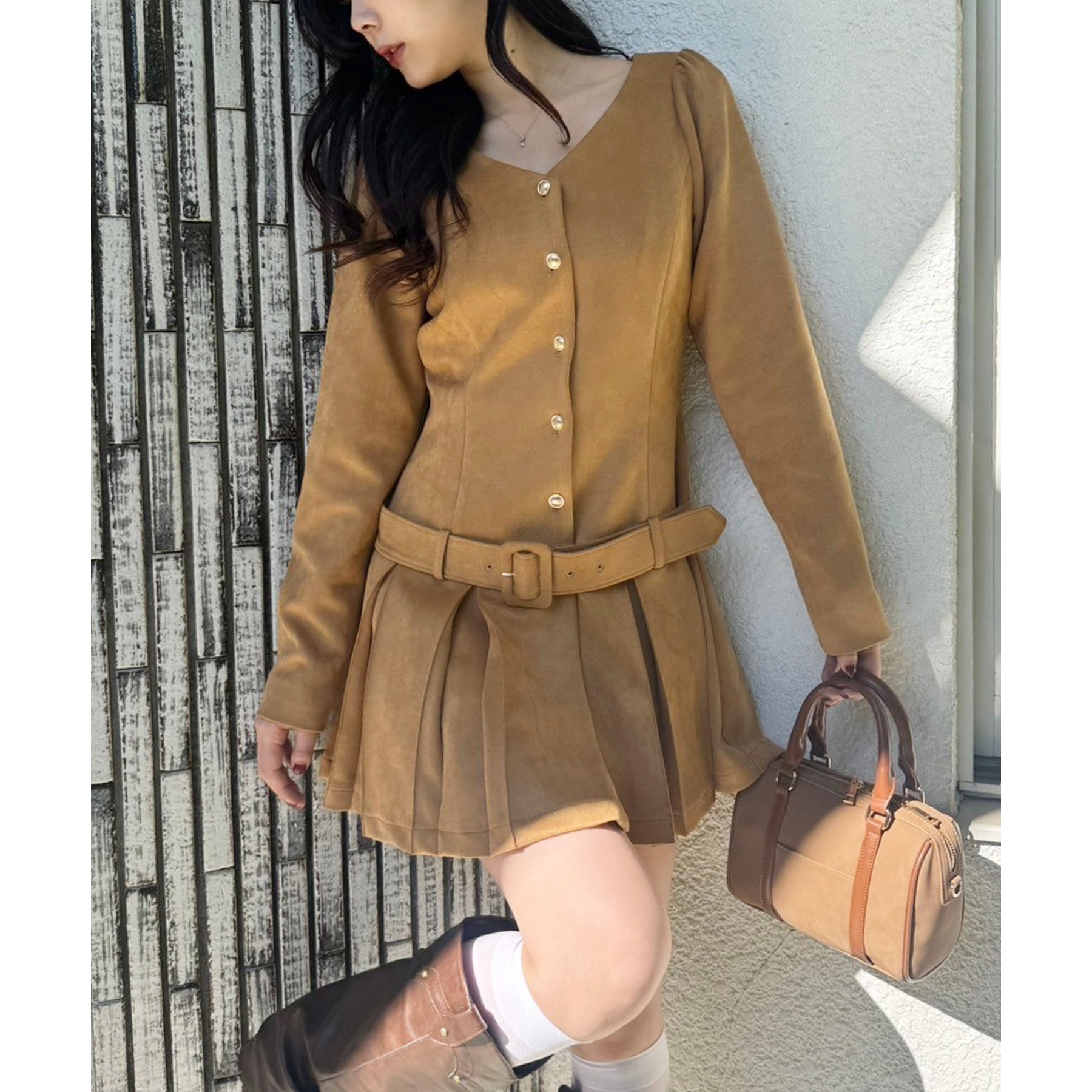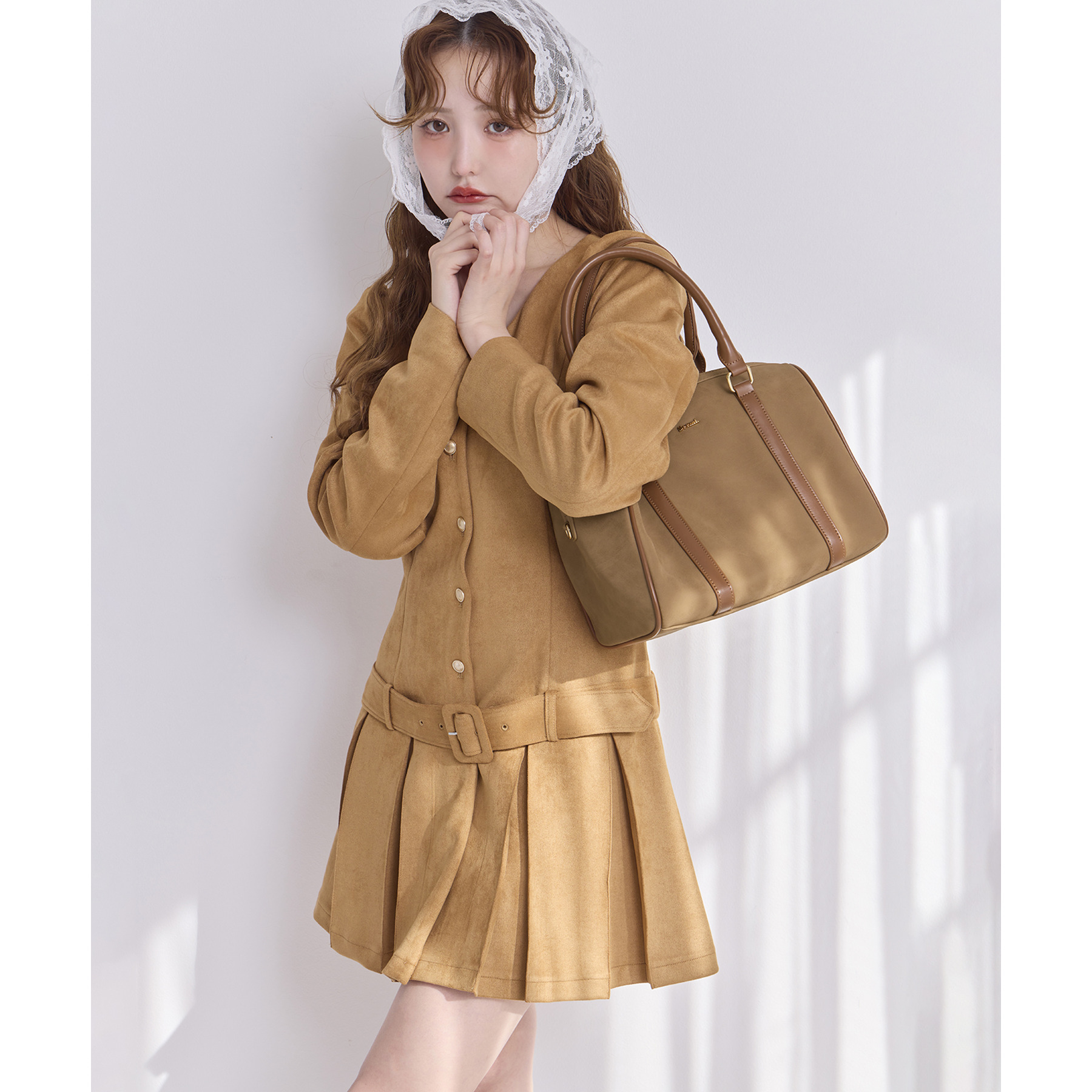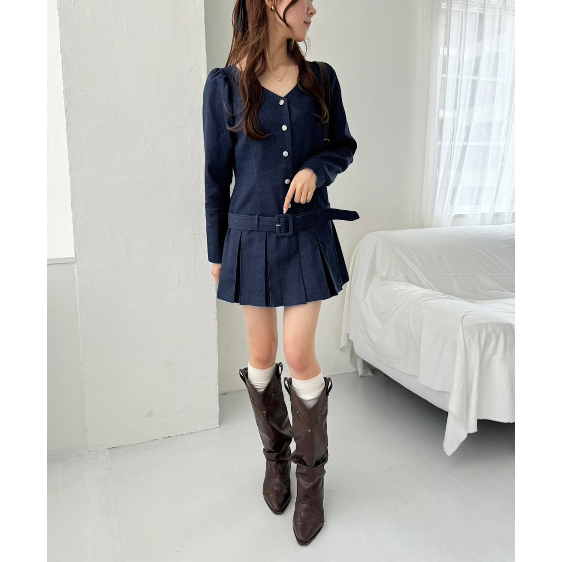 ウエストラインは程よくフィットし、裾はプリーツでゆるやかなAラインシルエットに。