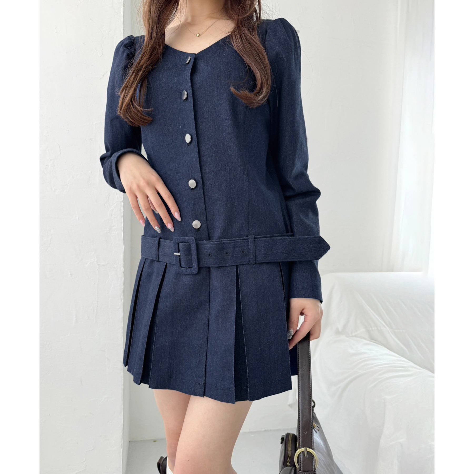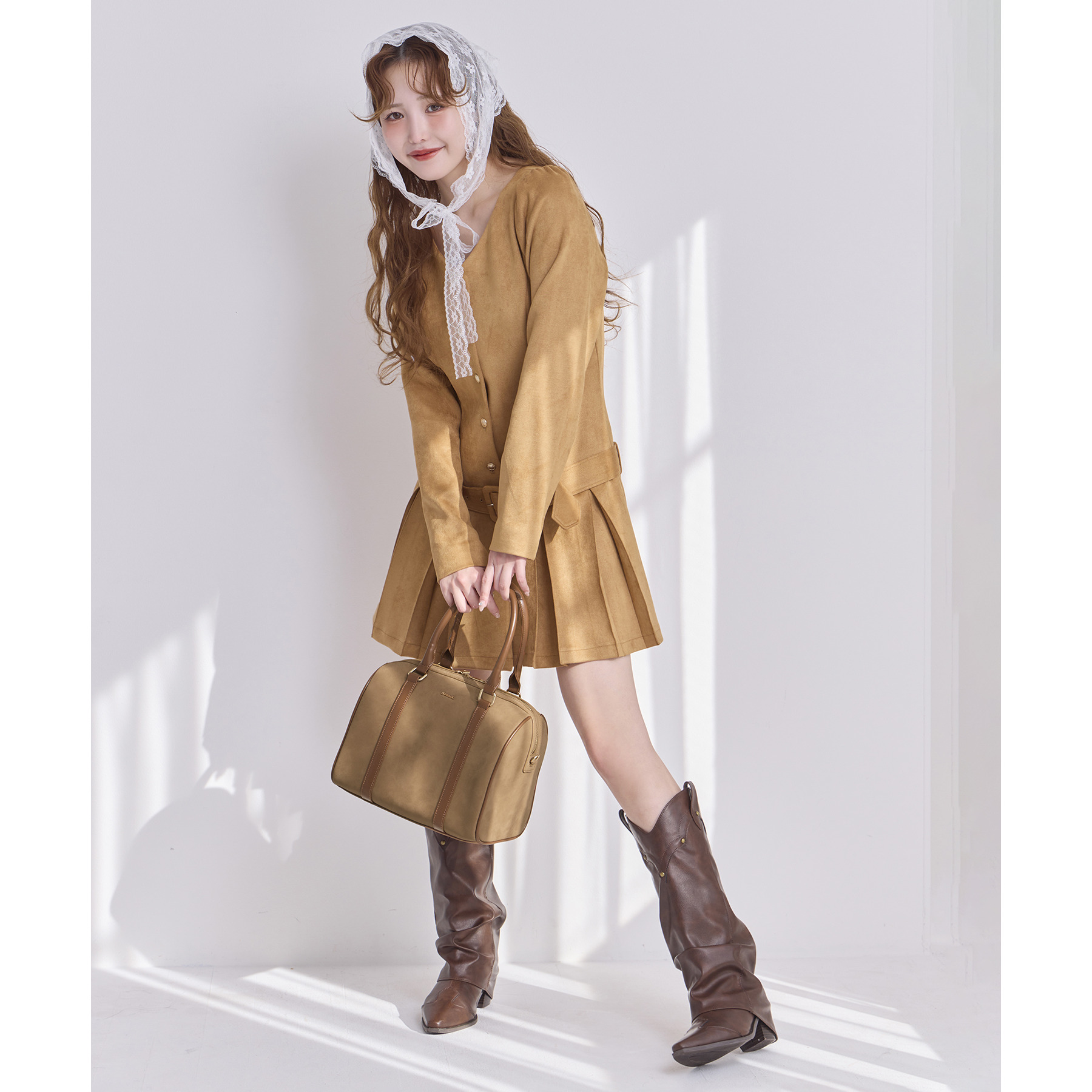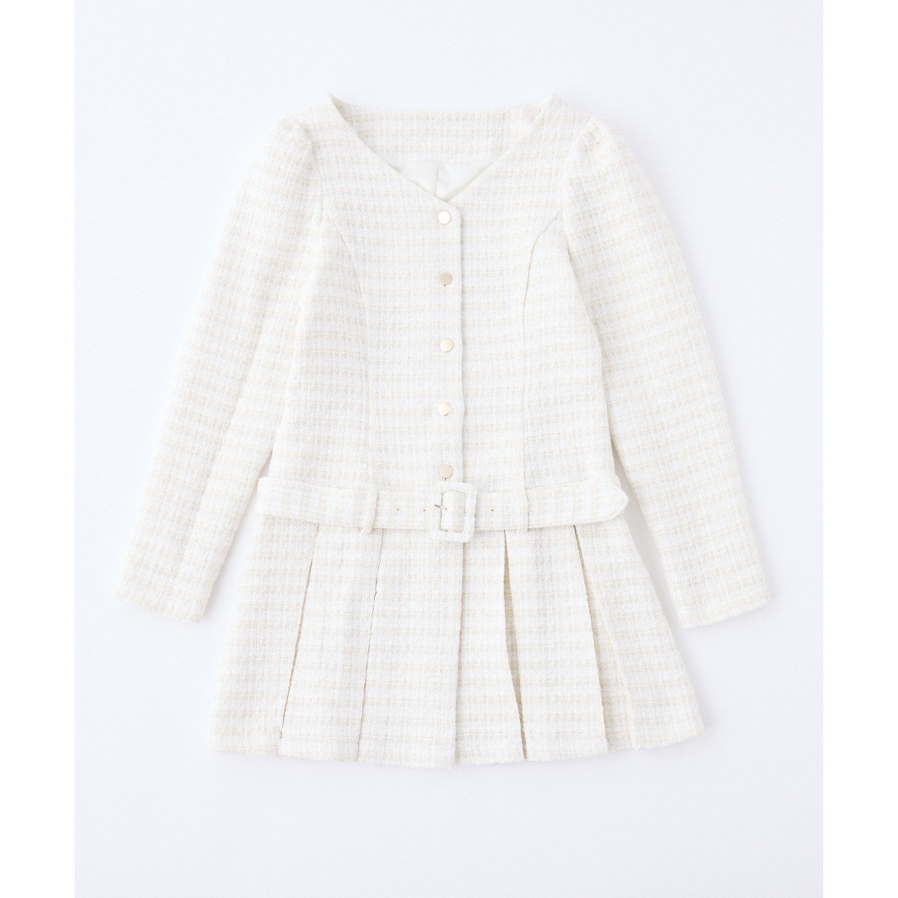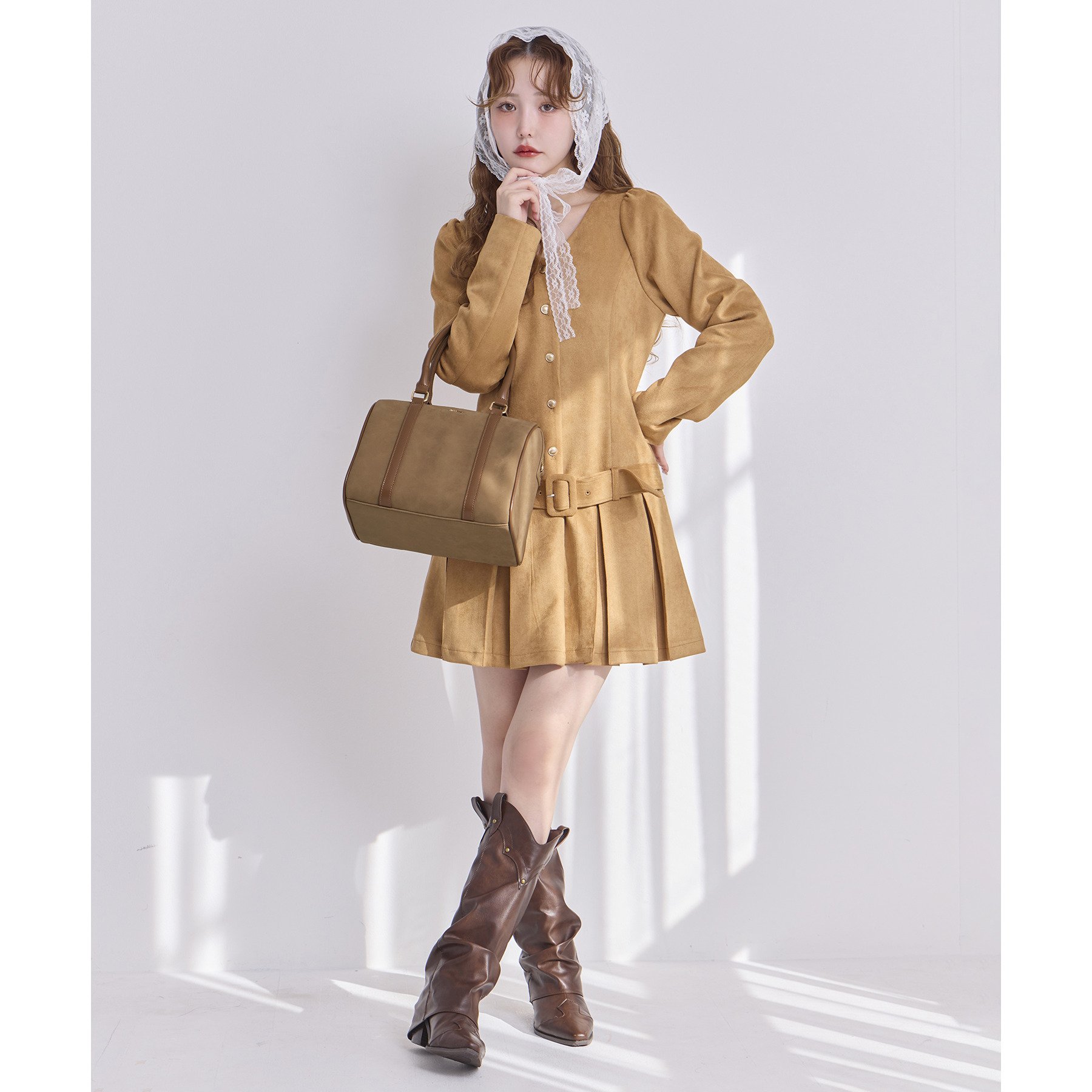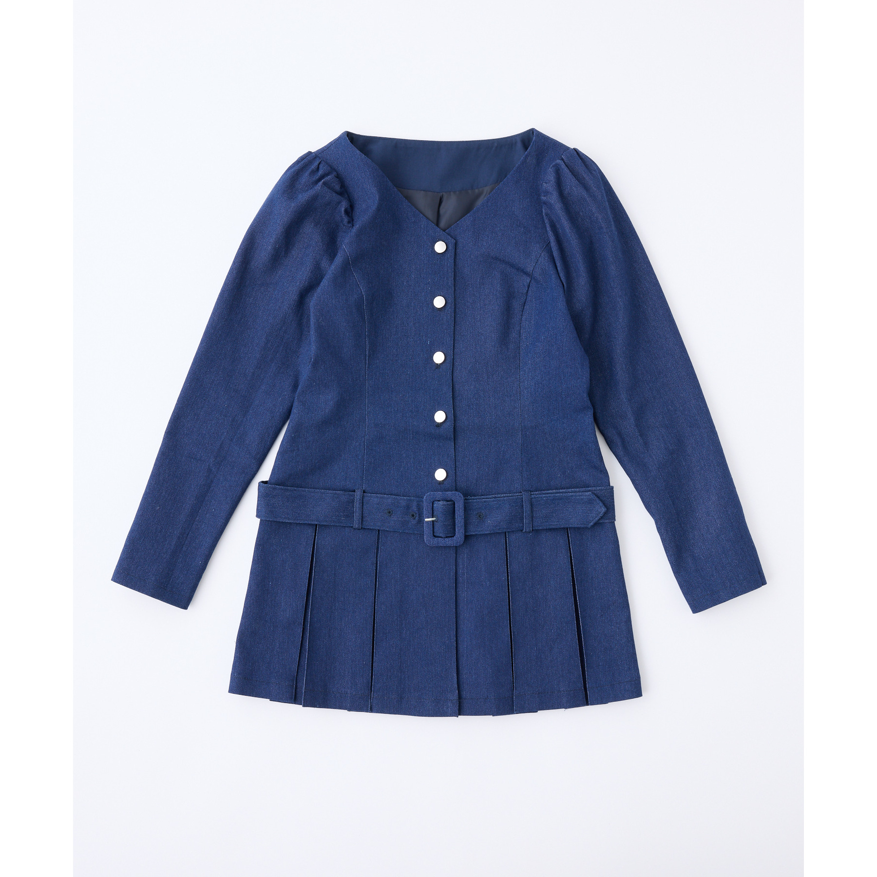 ウエストラインは程よくフィットし、裾はプリーツでゆるやかなAラインシルエットに。