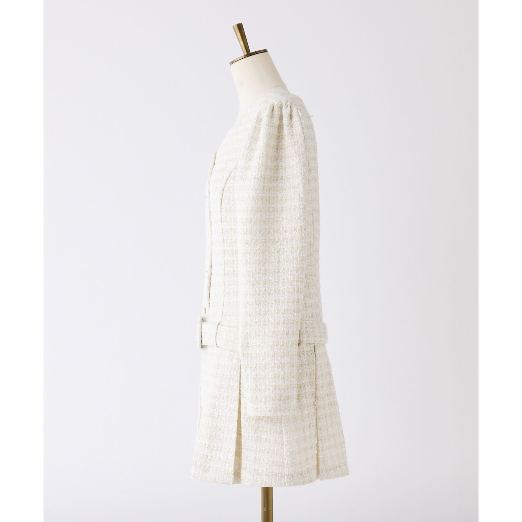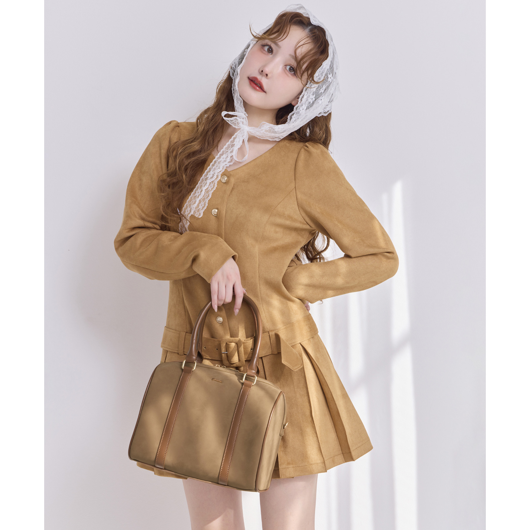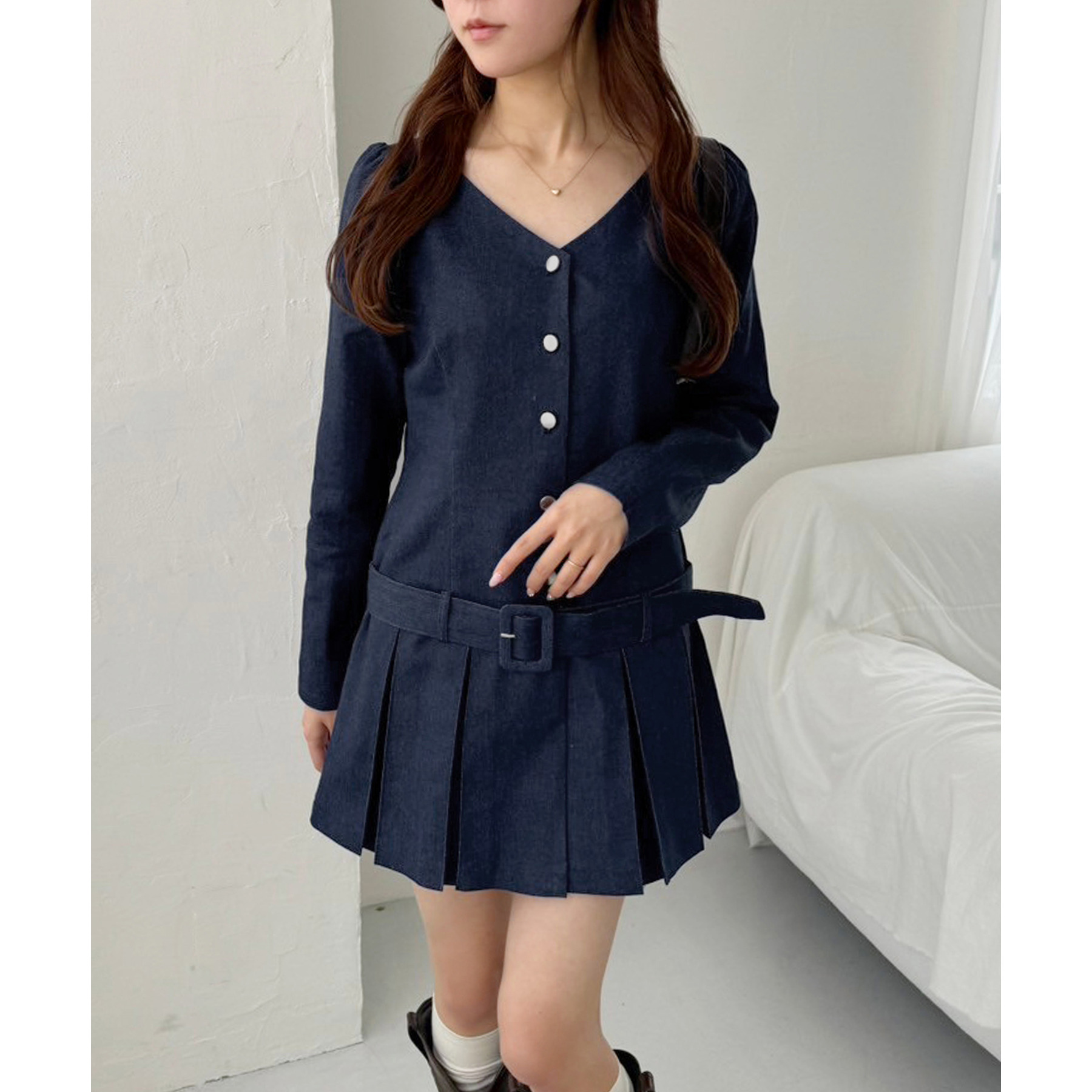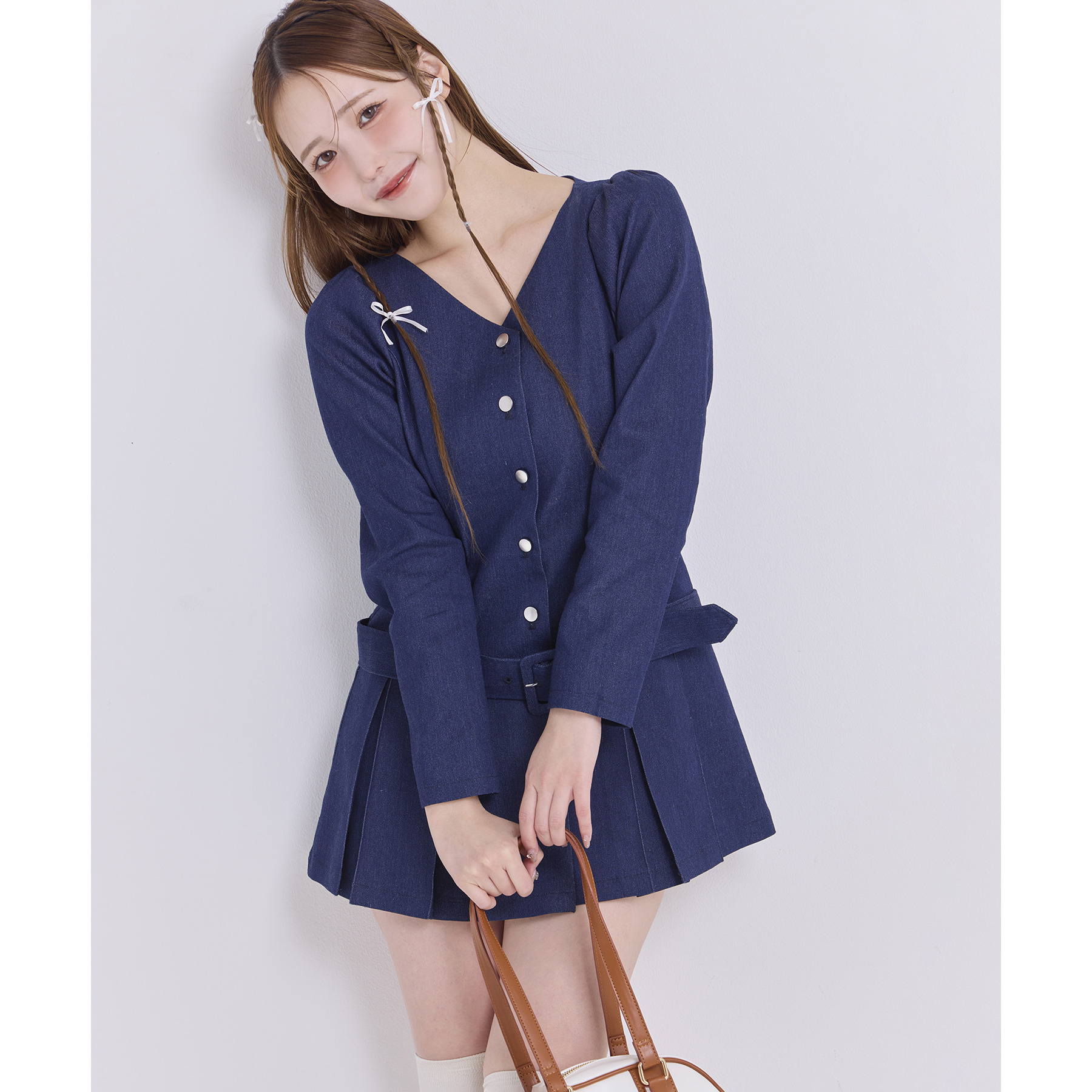 ウエストラインは程よくフィットし、裾はプリーツでゆるやかなAラインシルエットに。