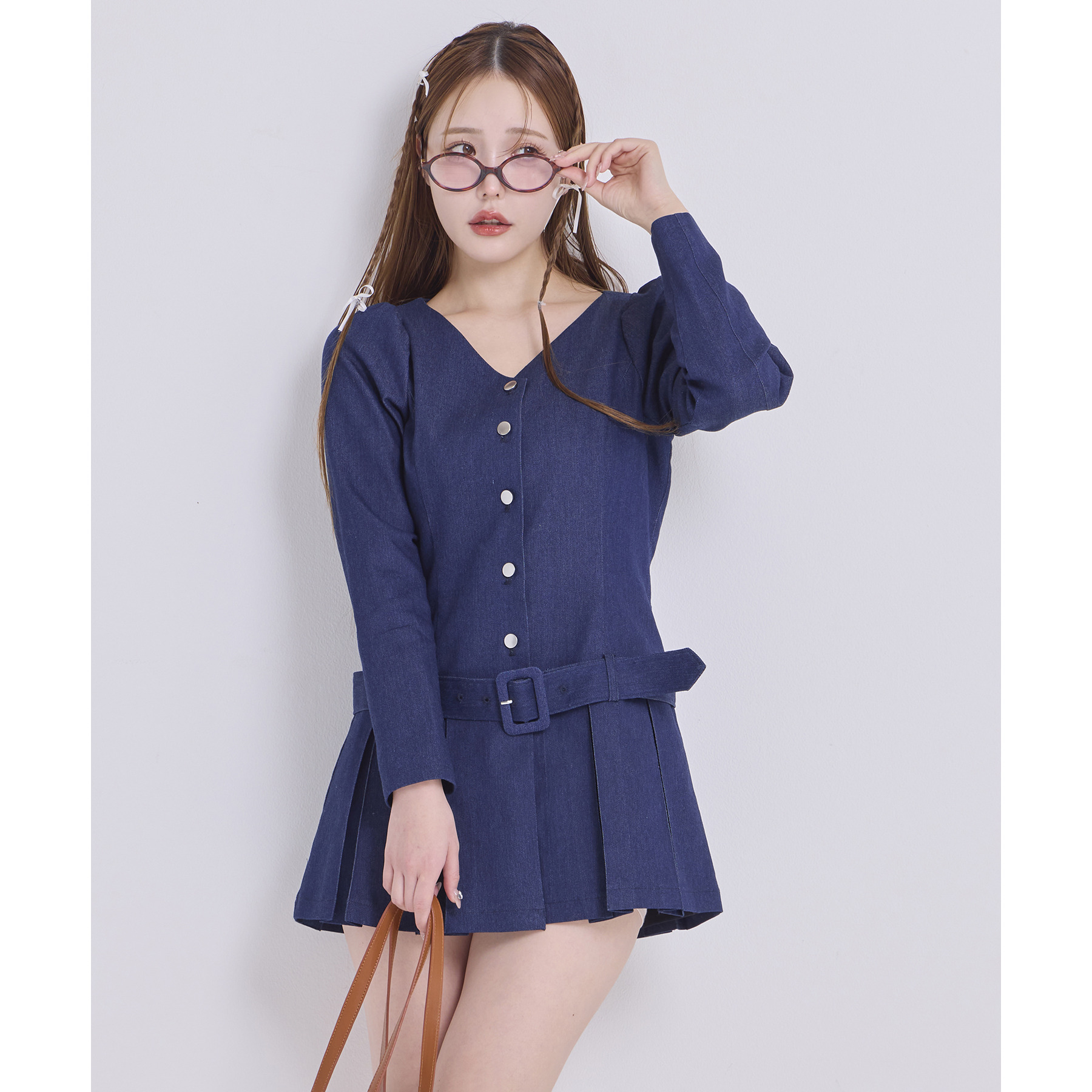 ローウエストのベルトデザインが旬なコーデに仕上げてくれます。