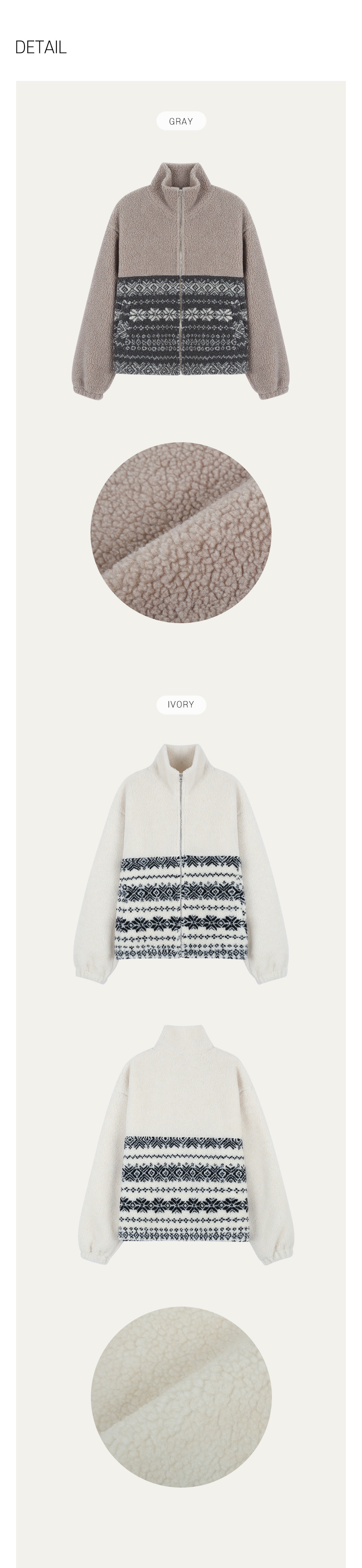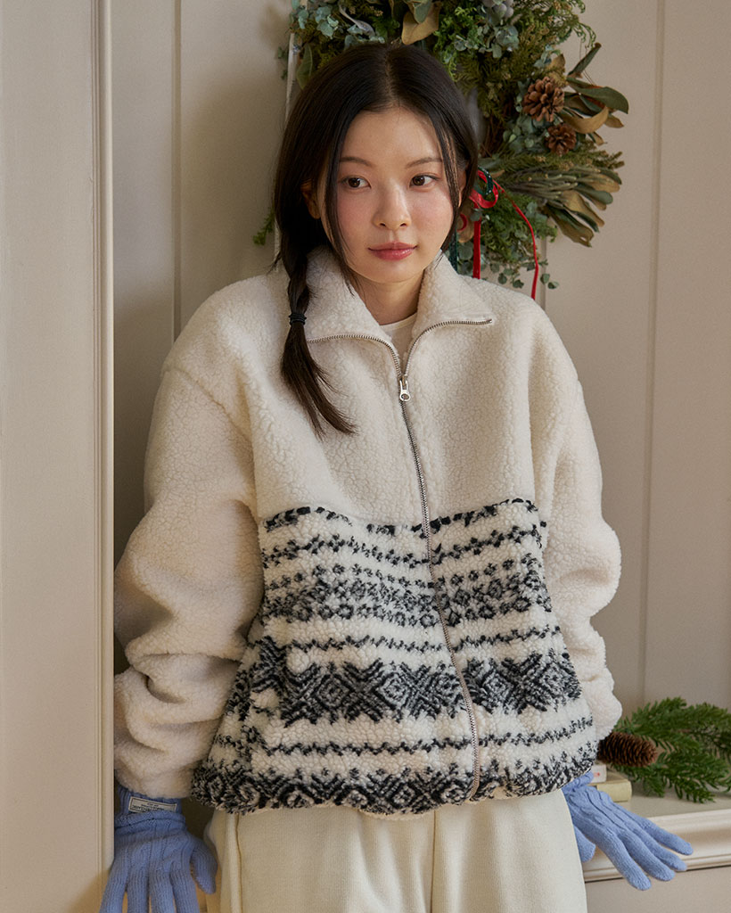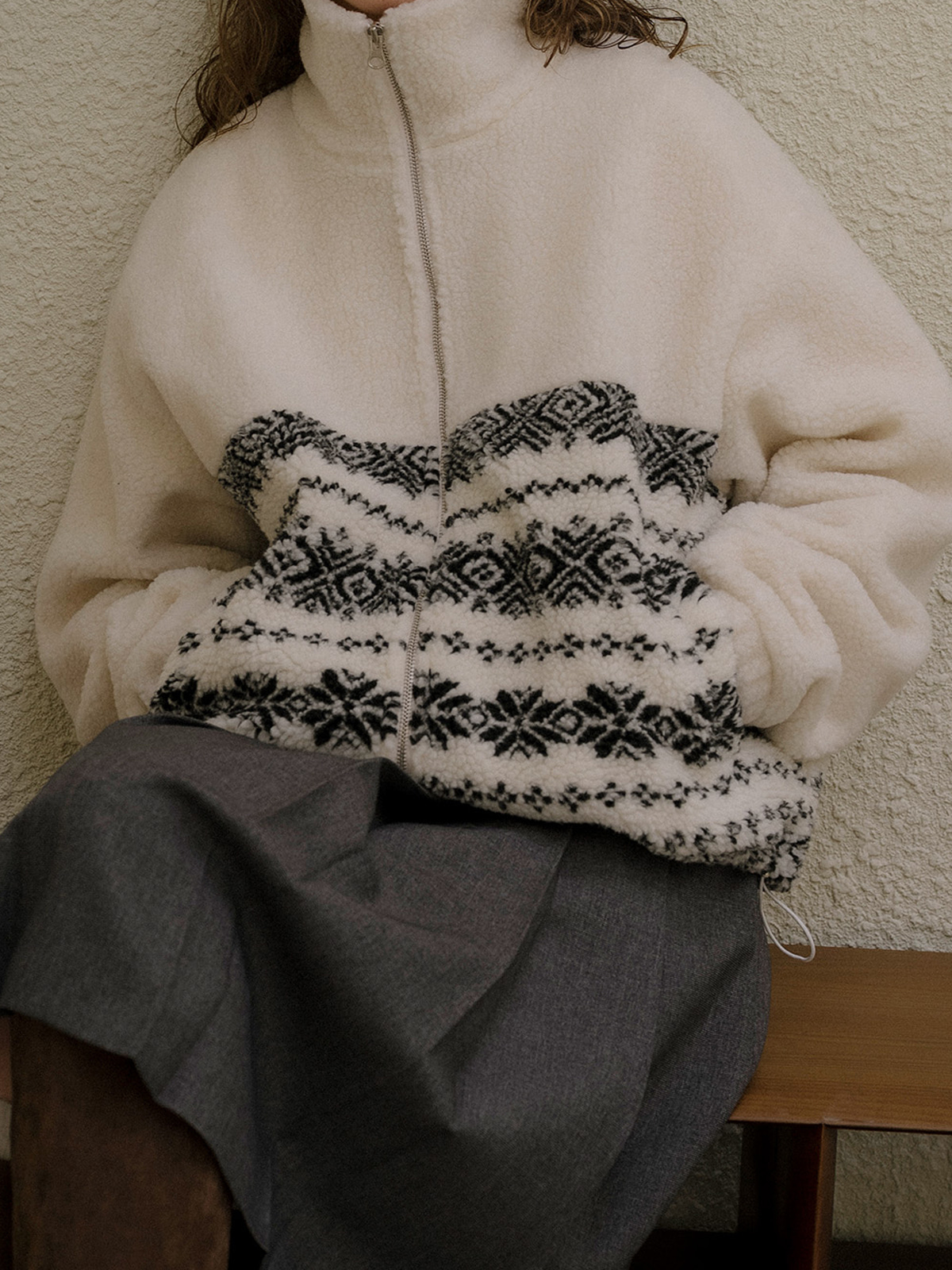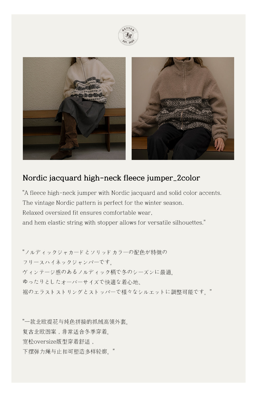 Nordic jacquard high-neck fleece jumper [KNFW05JP08]_[2color]