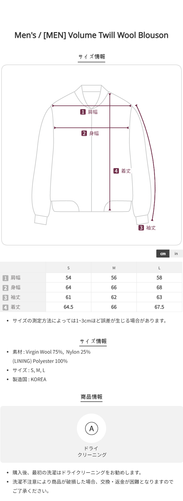 [MEN] Volume Twill Wool Blouson ASH BROWN