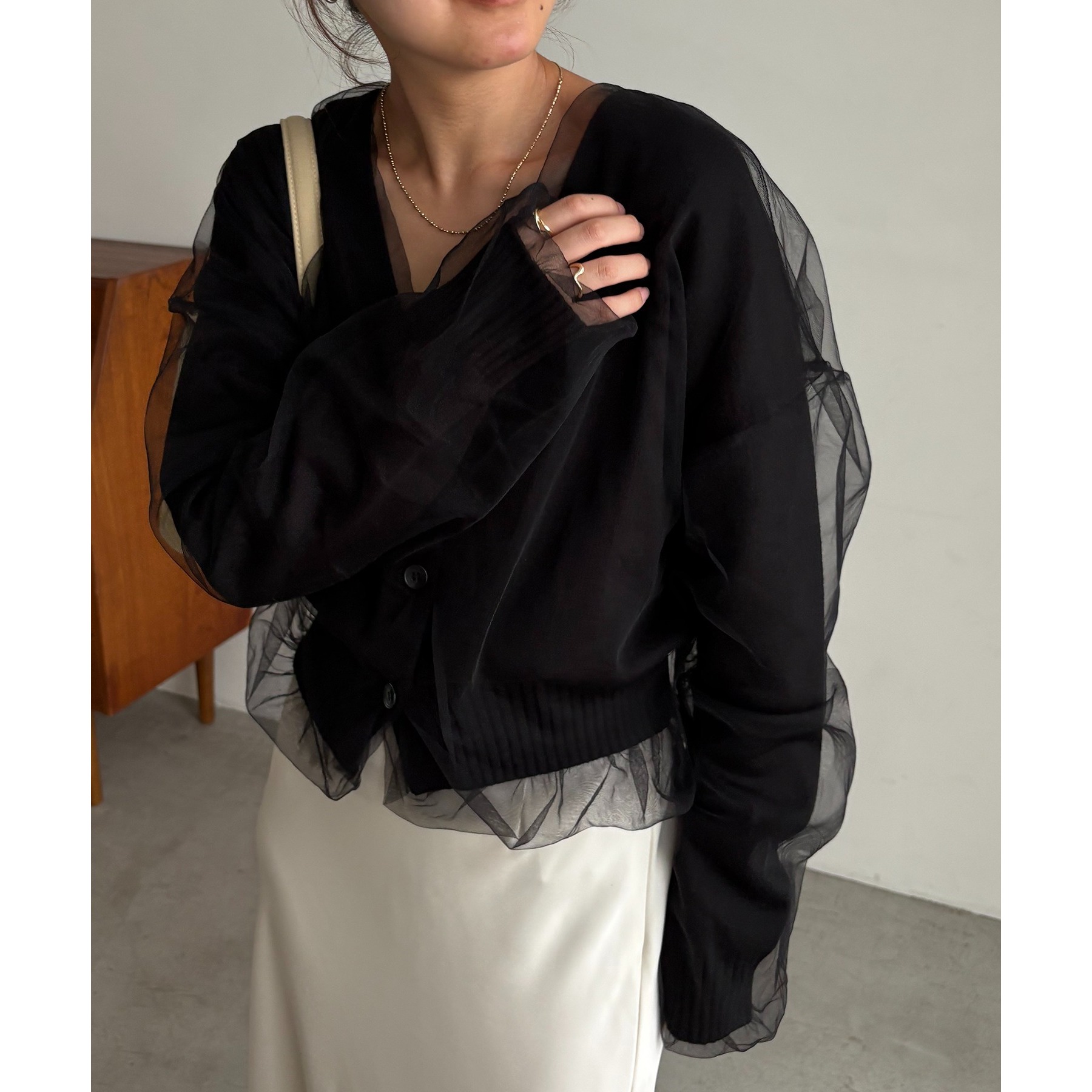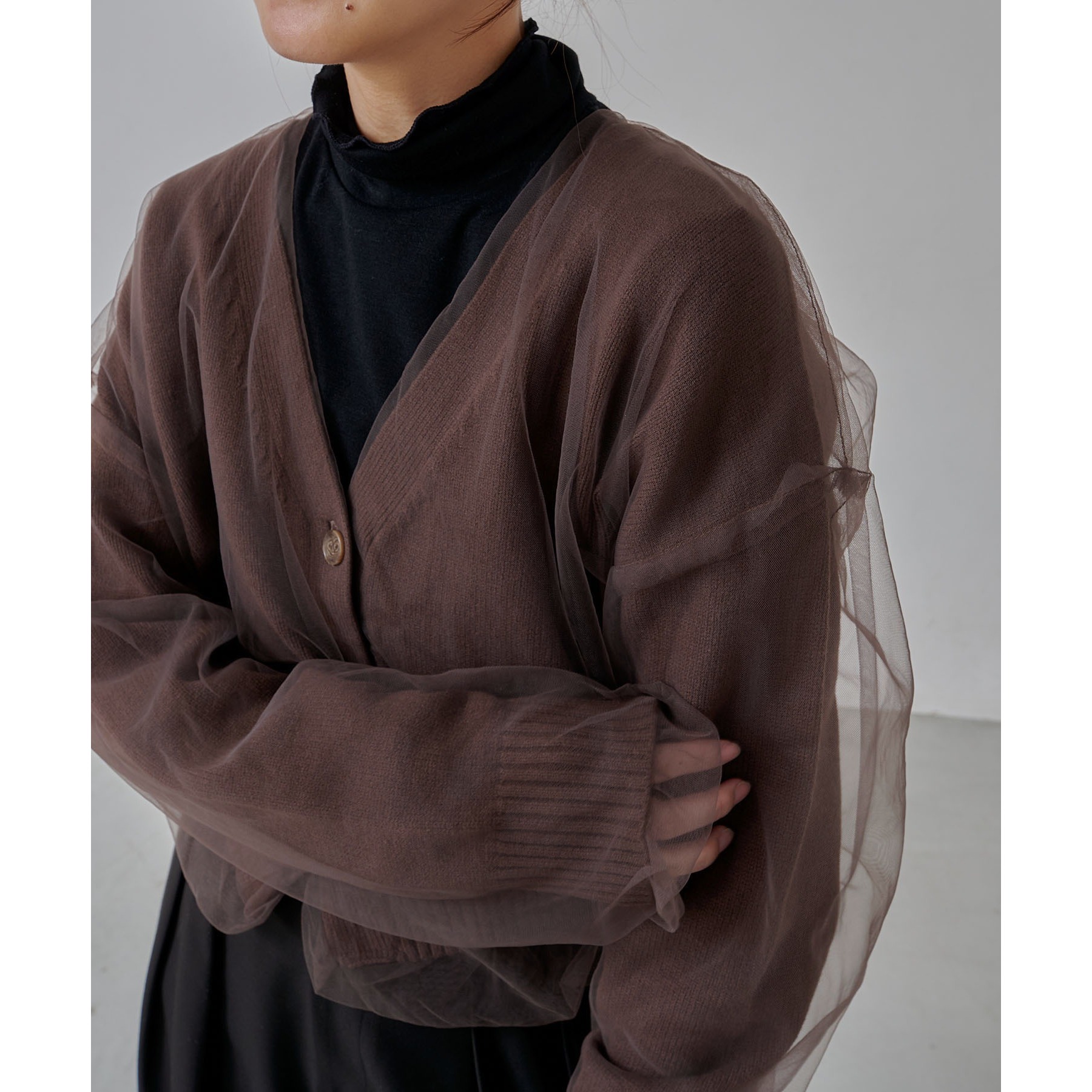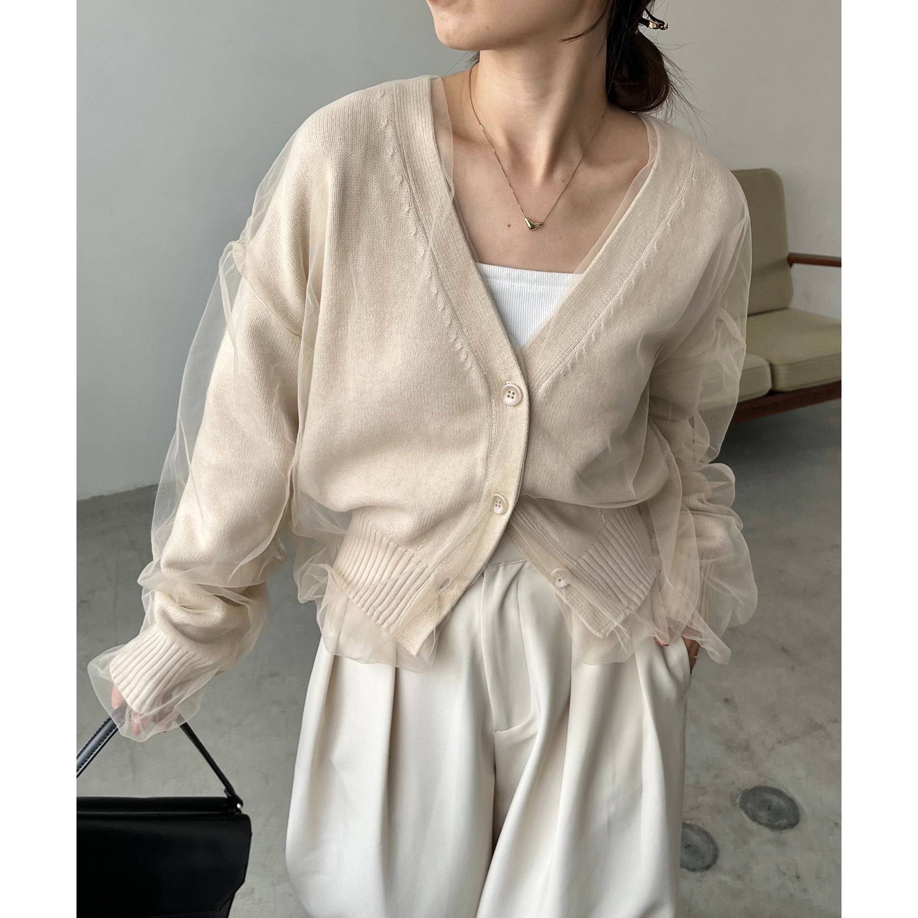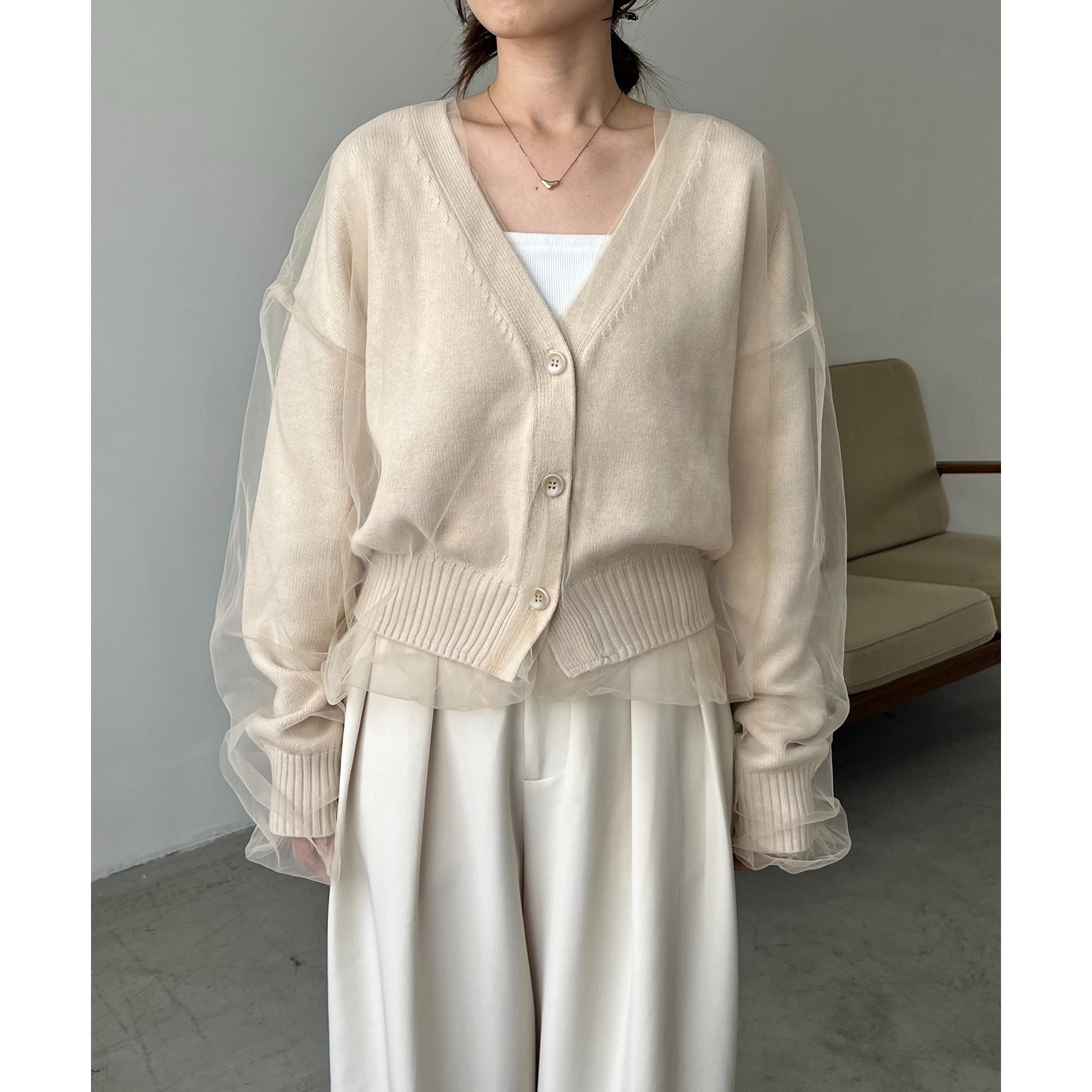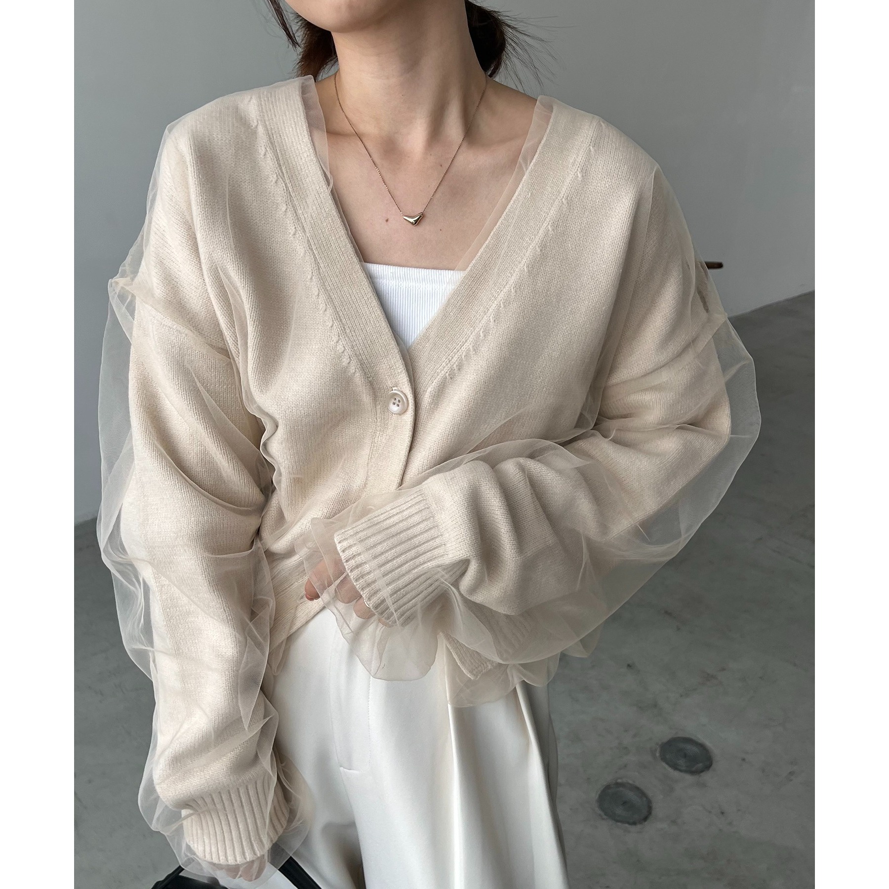 【1枚で着映え】チュールレイヤードカーディガン