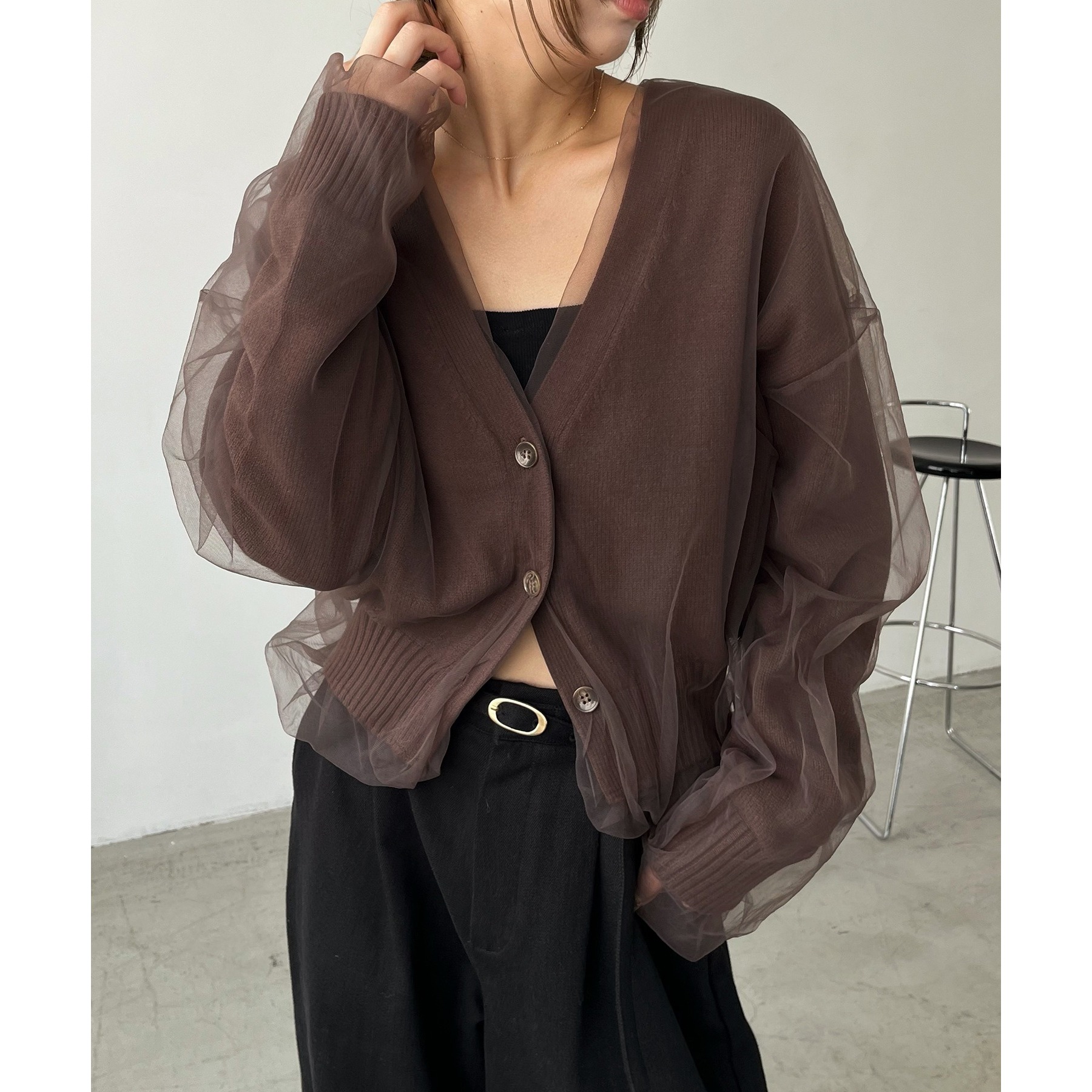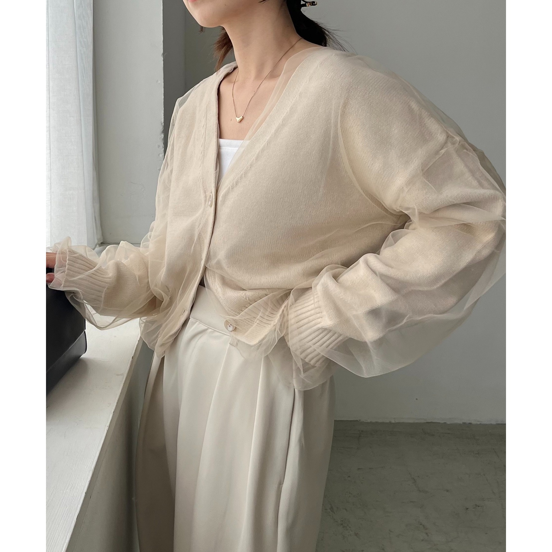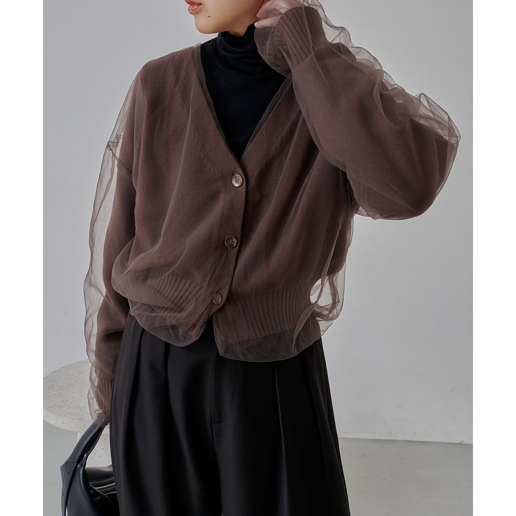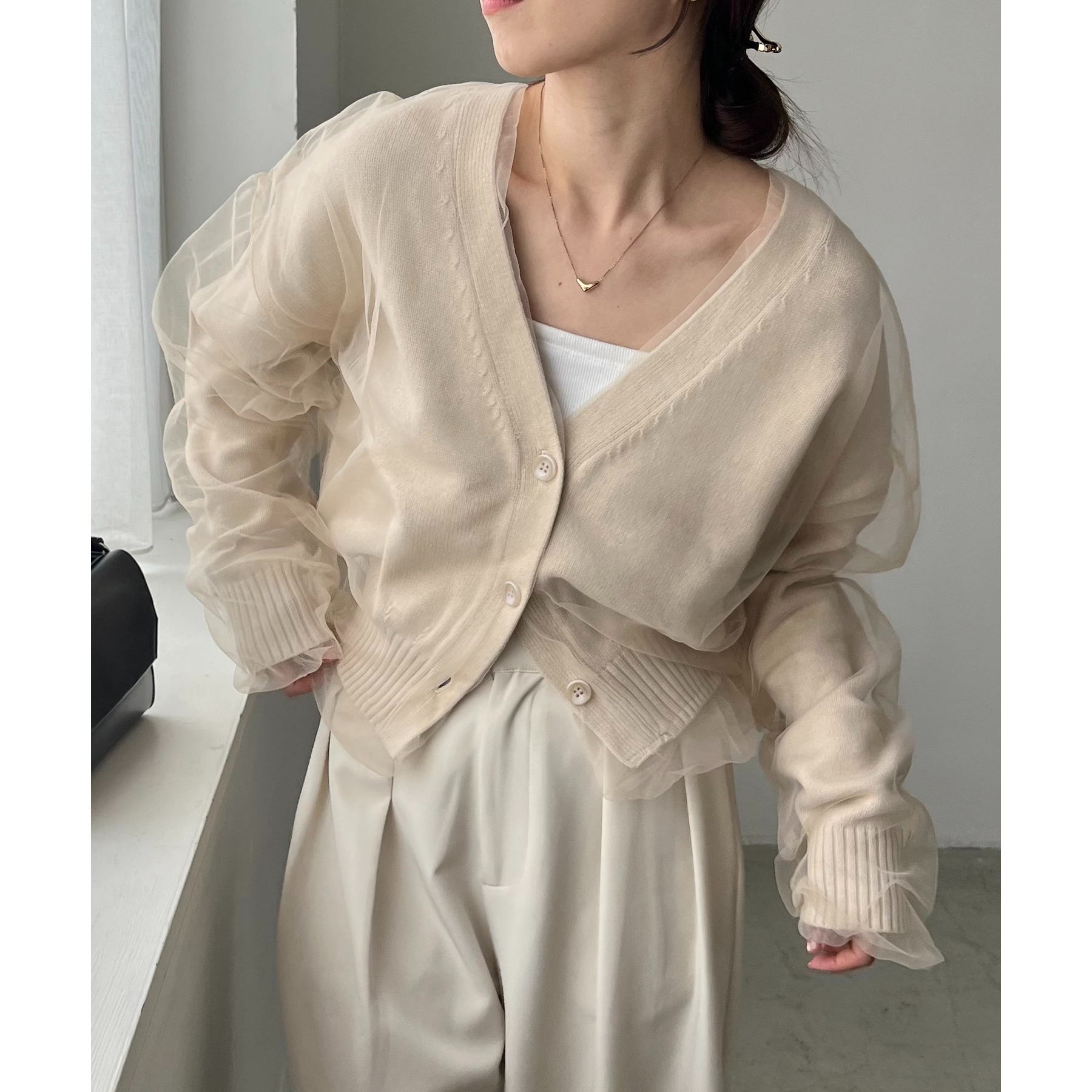 【1枚で着映え】チュールレイヤードカーディガン