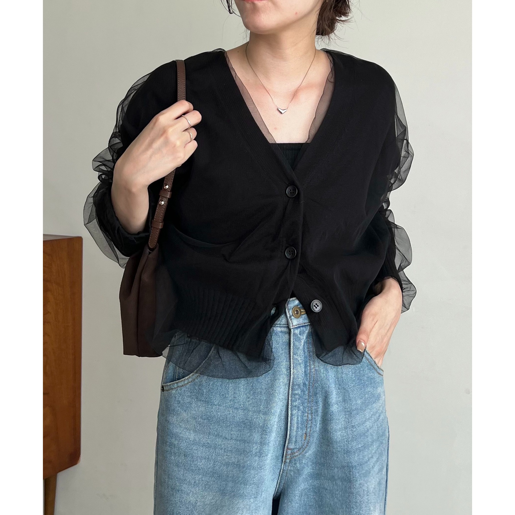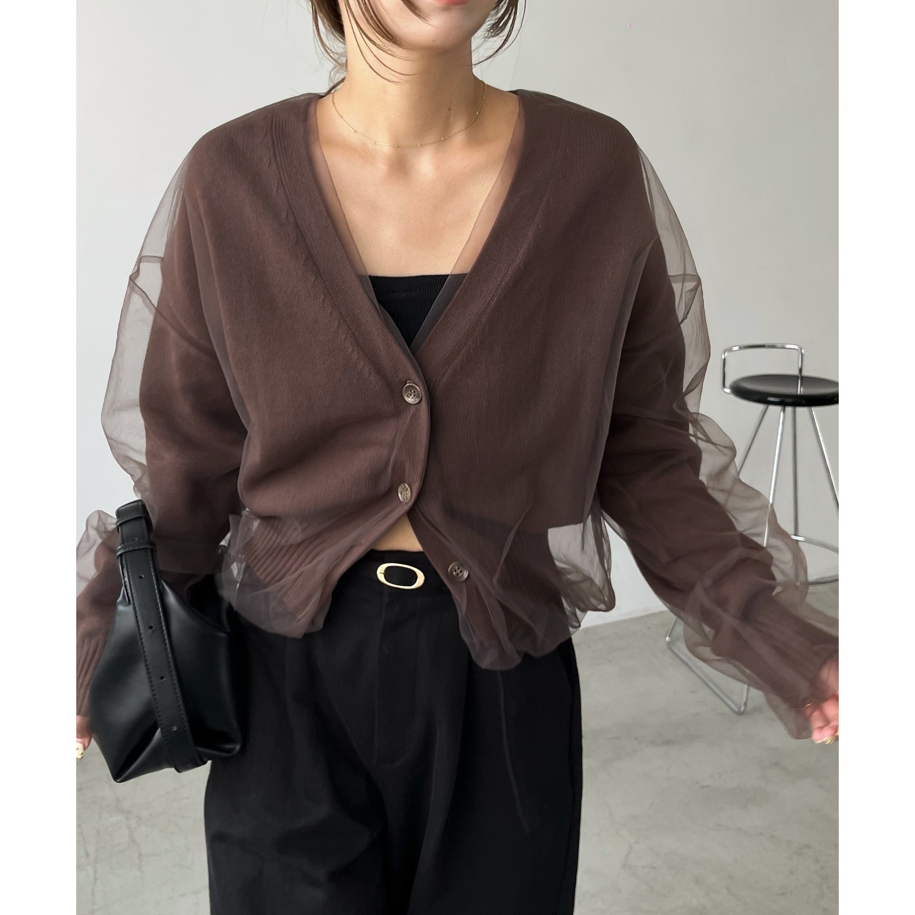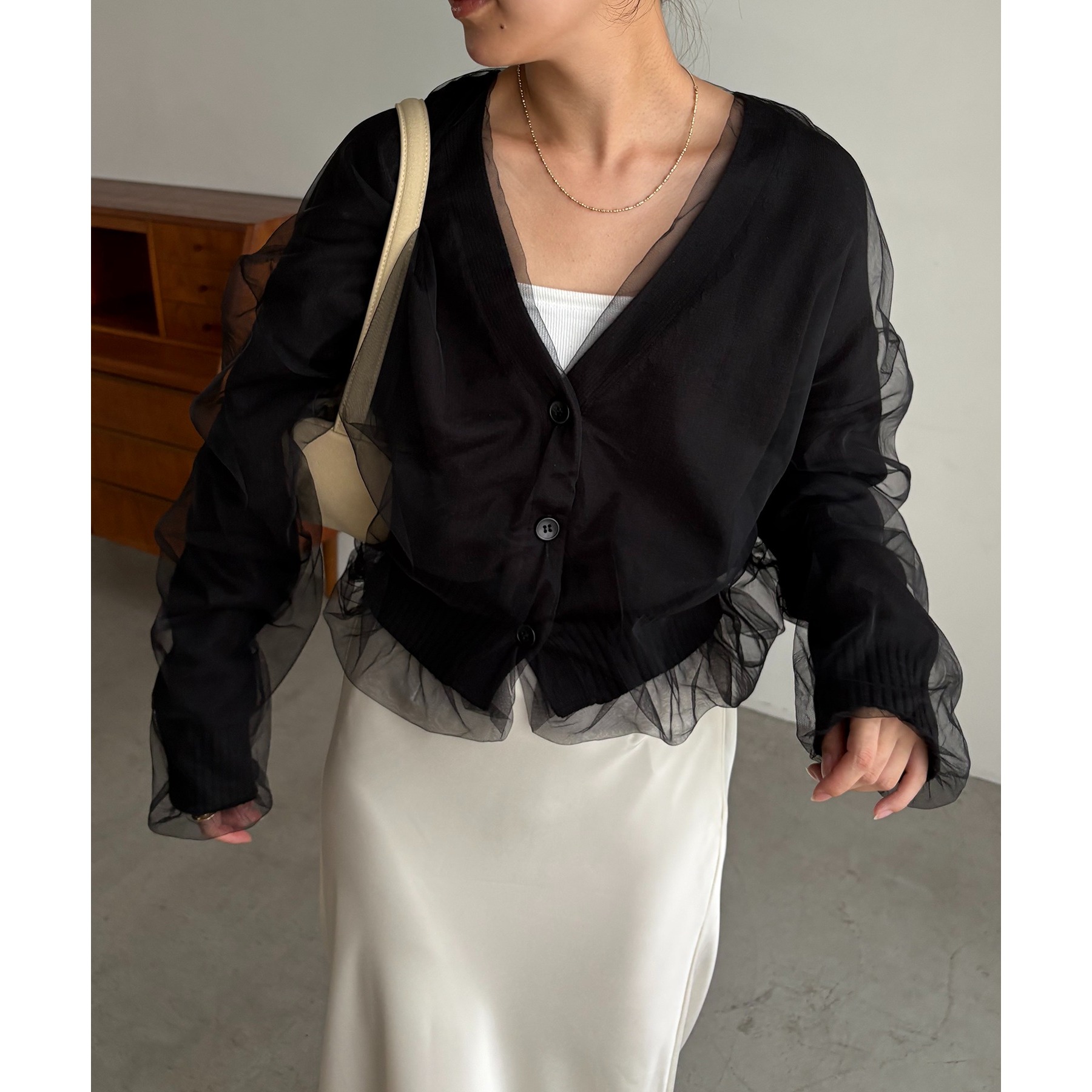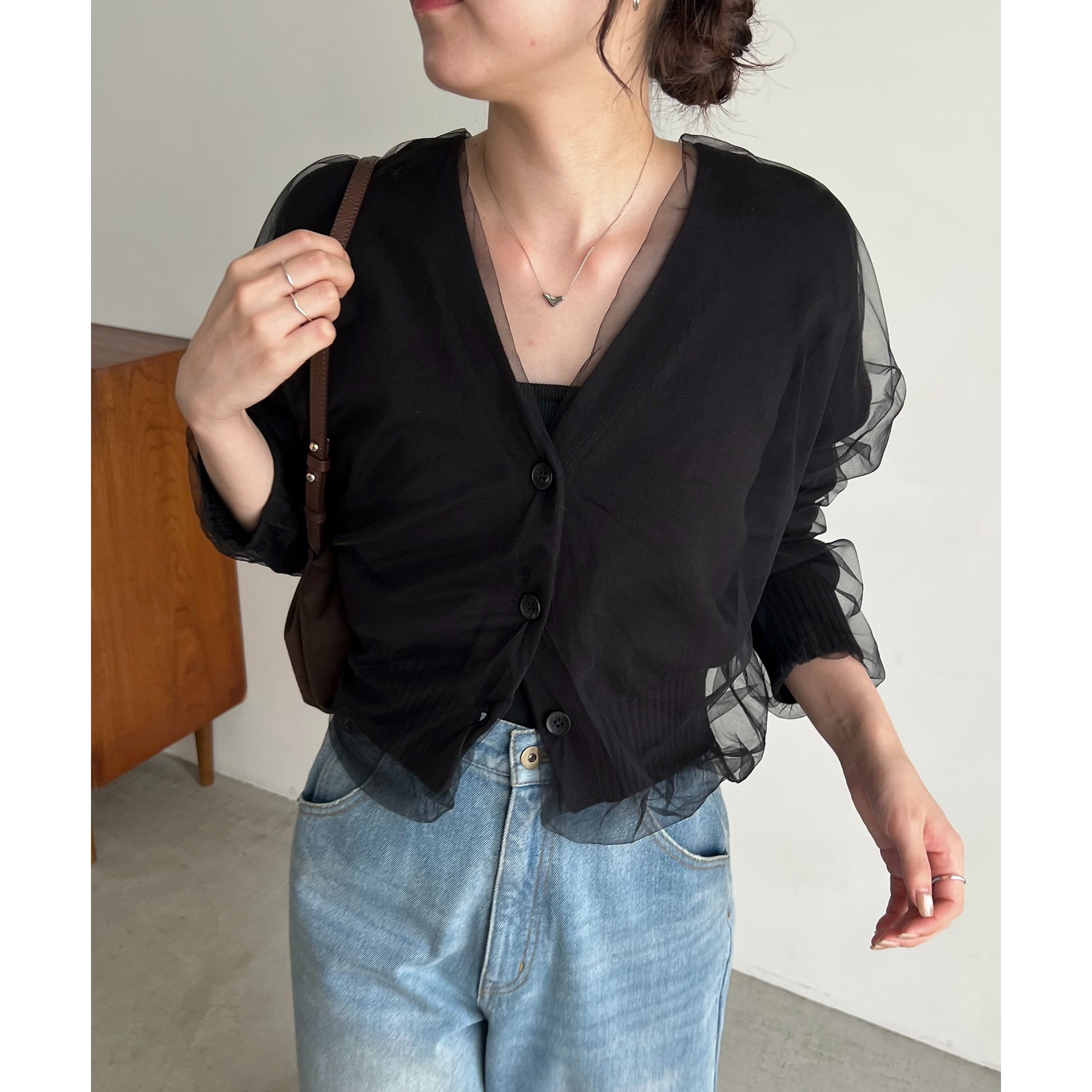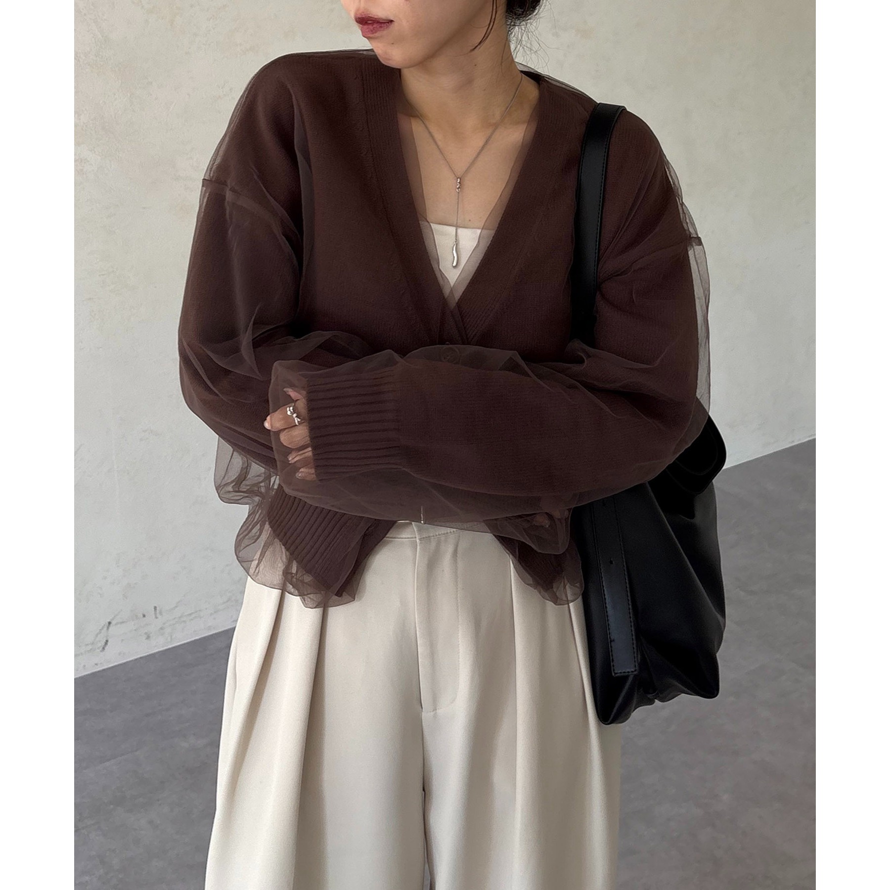 【1枚で着映え】チュールレイヤードカーディガン