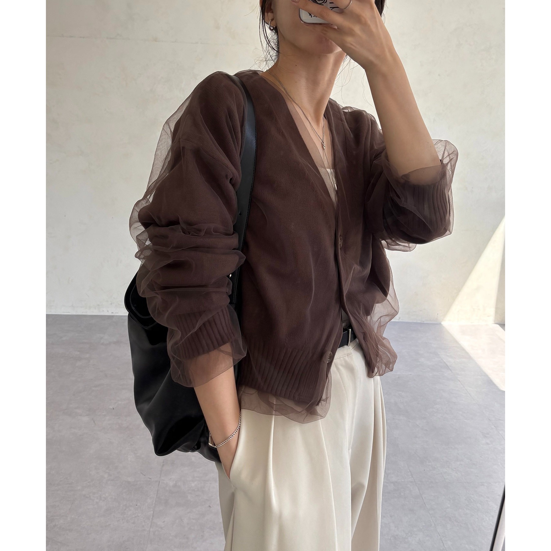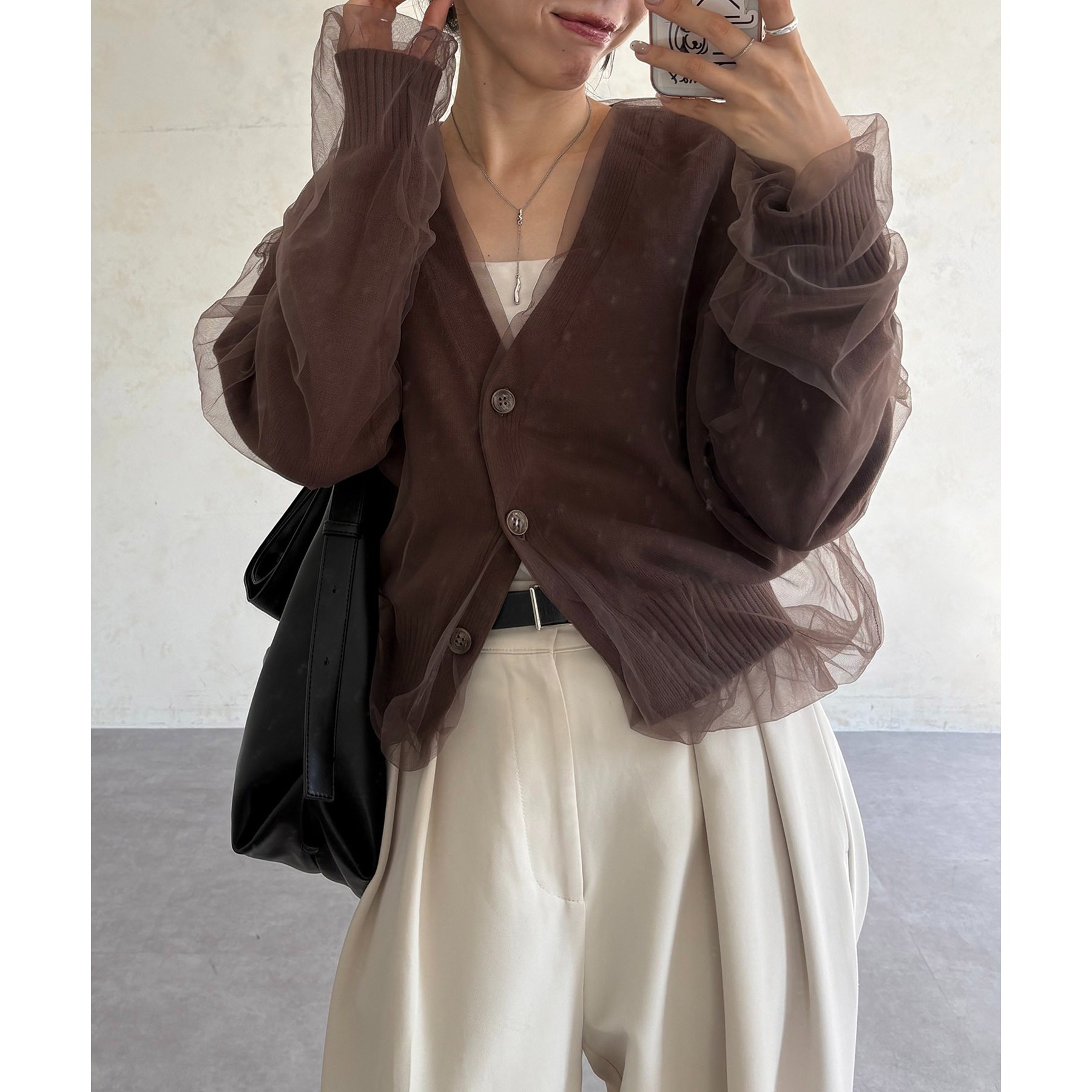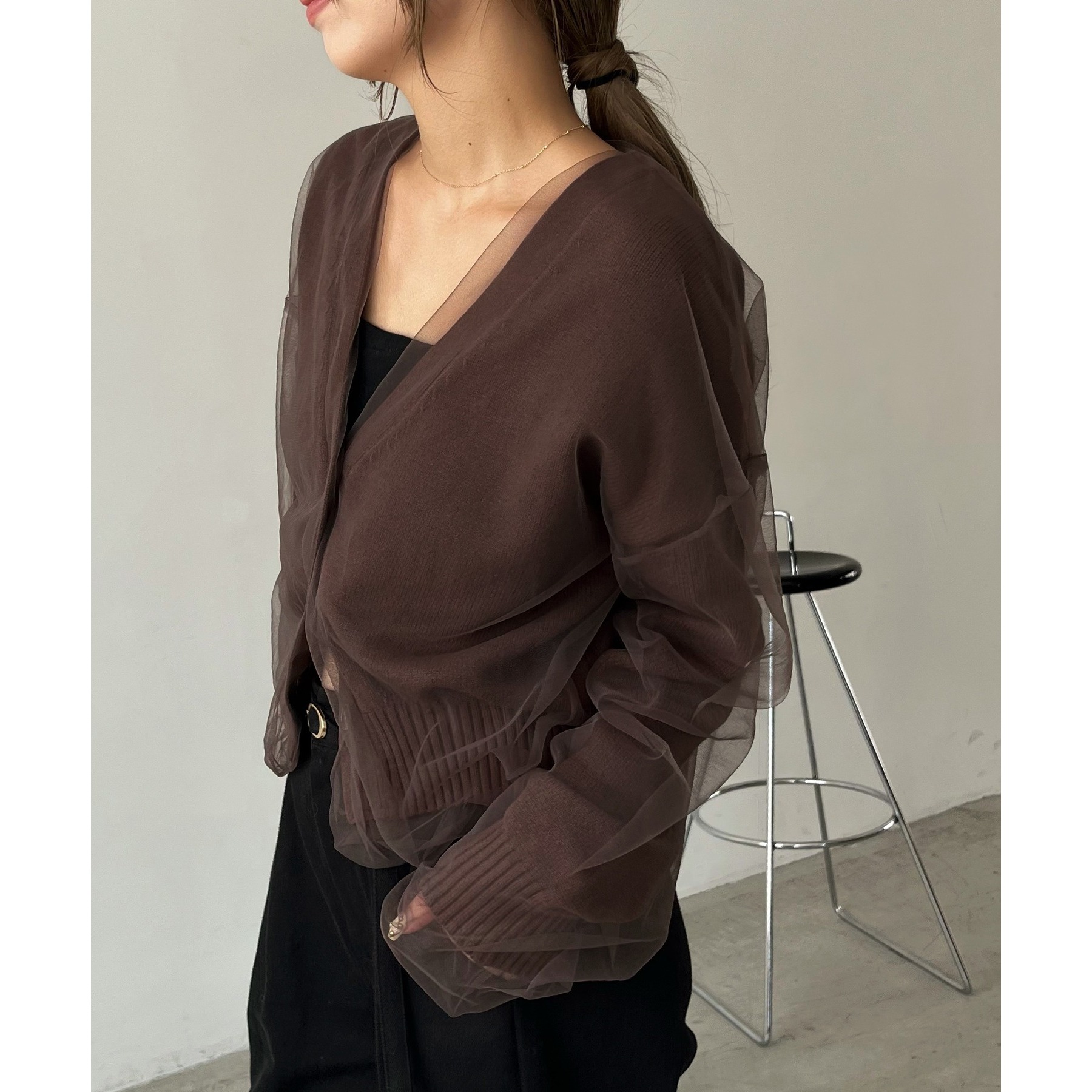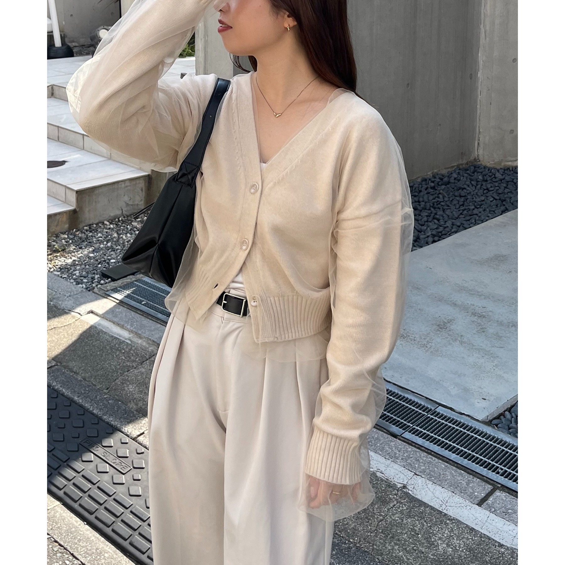 【1枚で着映え】チュールレイヤードカーディガン
