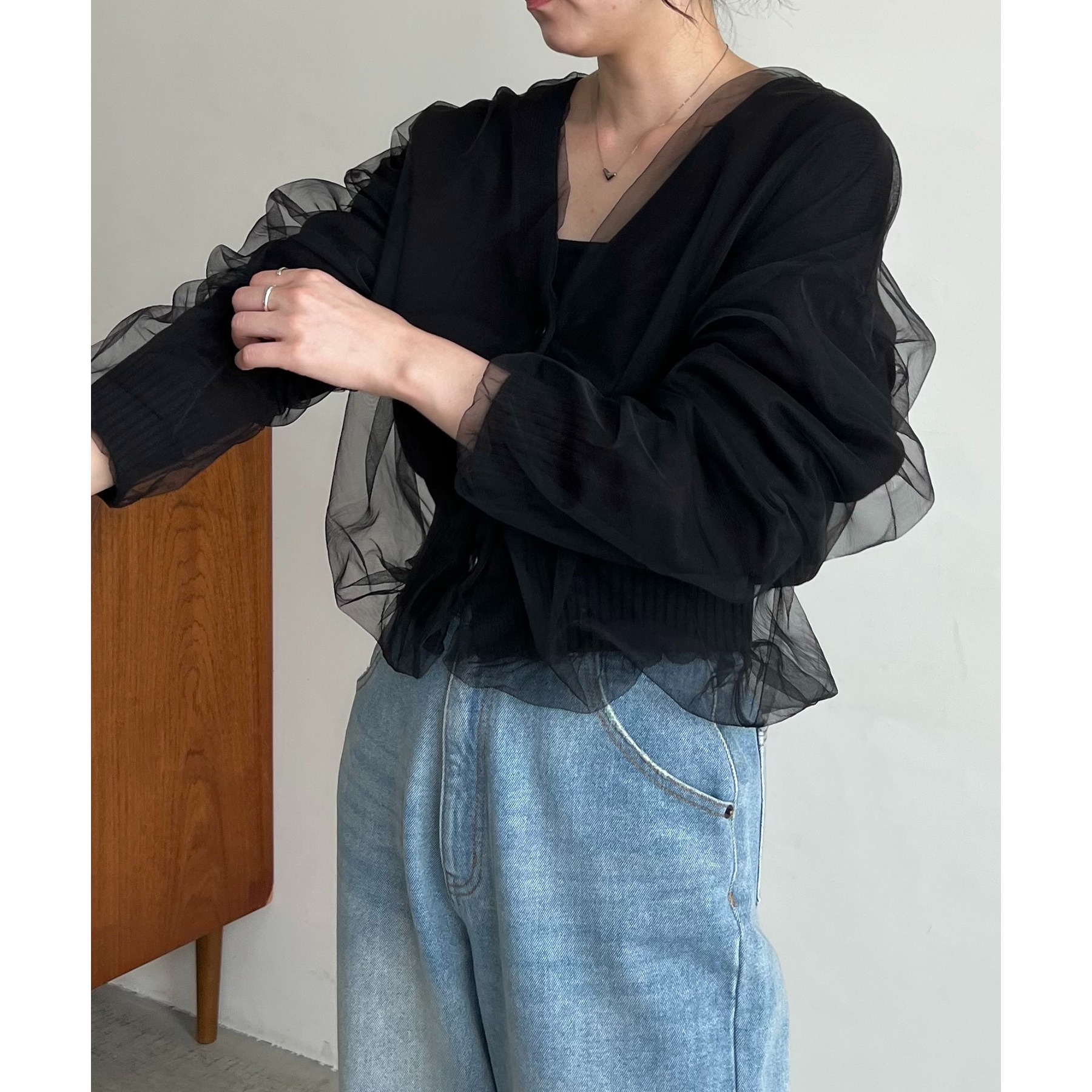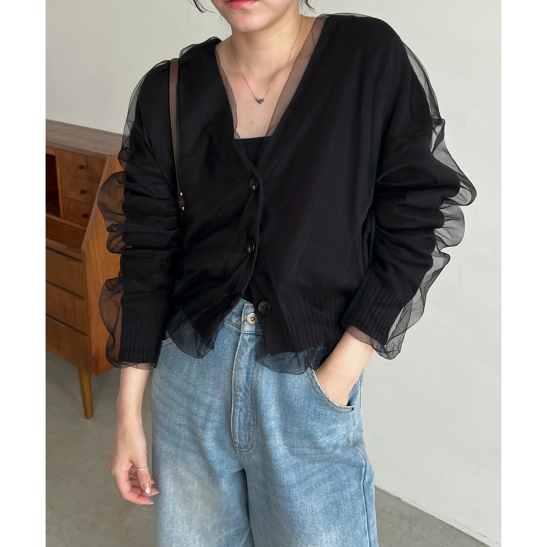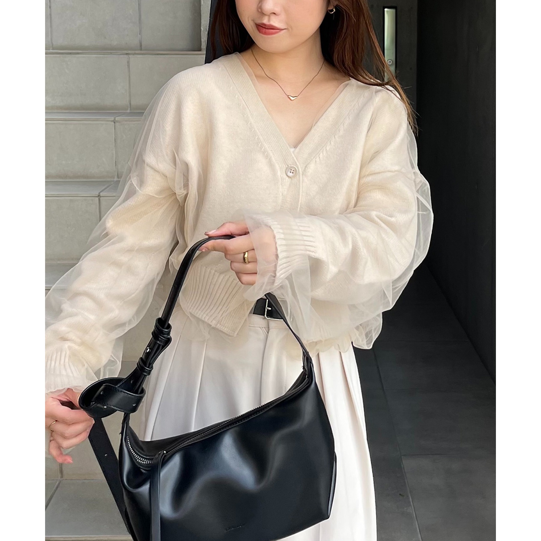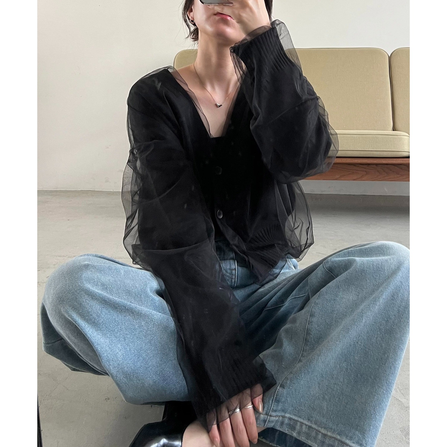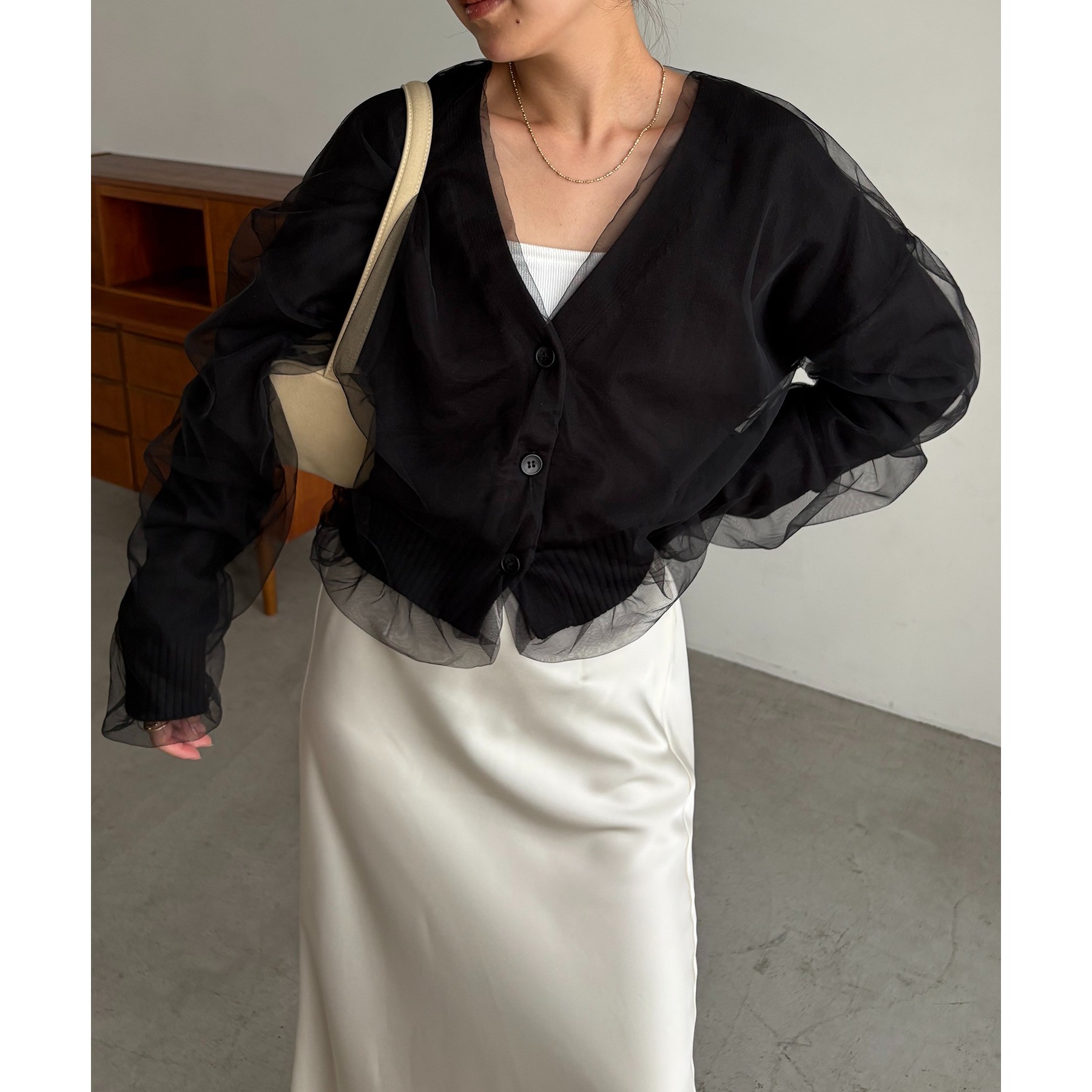 【1枚で着映え】チュールレイヤードカーディガン