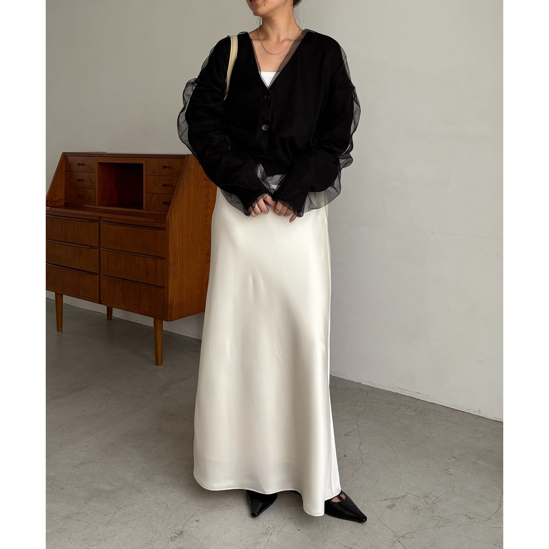・女性らしい落ち感のあるスカートに合わせても