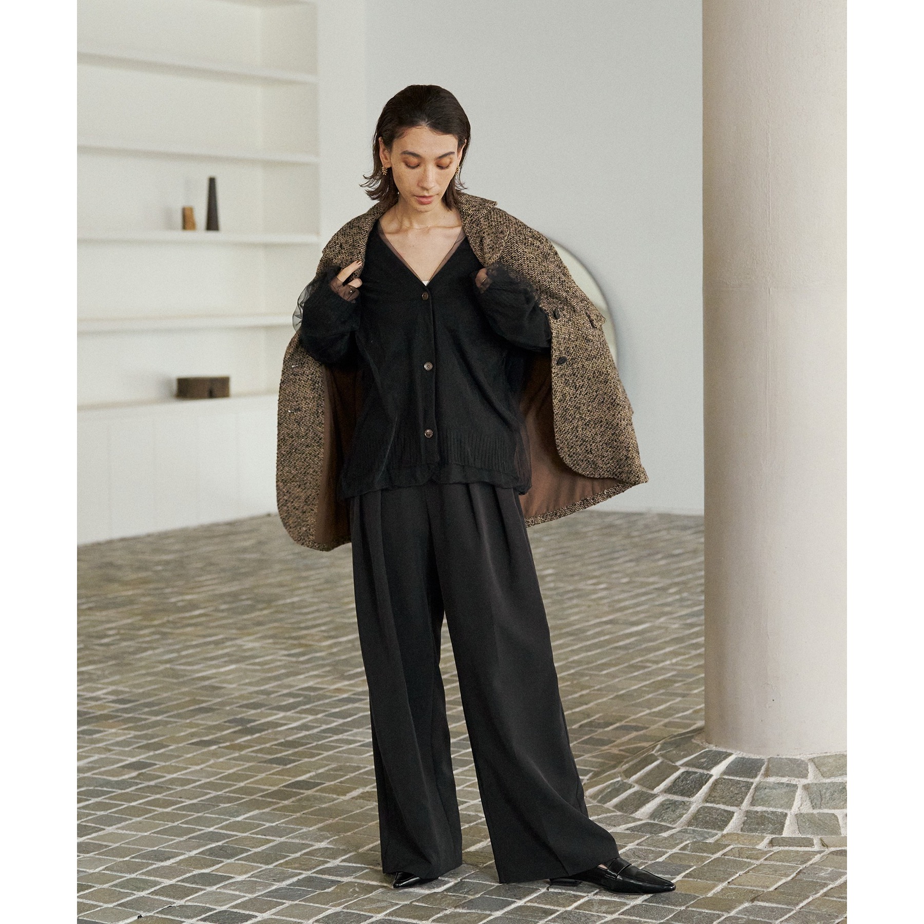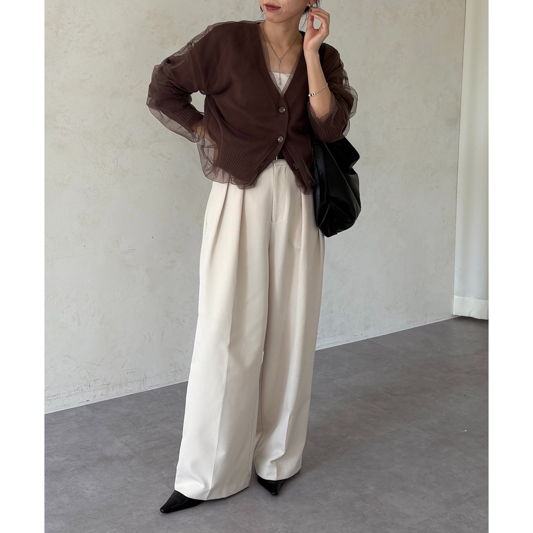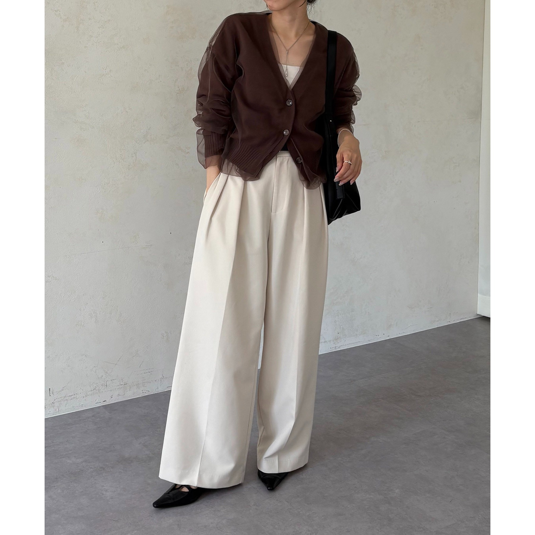・2タックワイドパンツ合わせでメリハリのあるスタイリングに