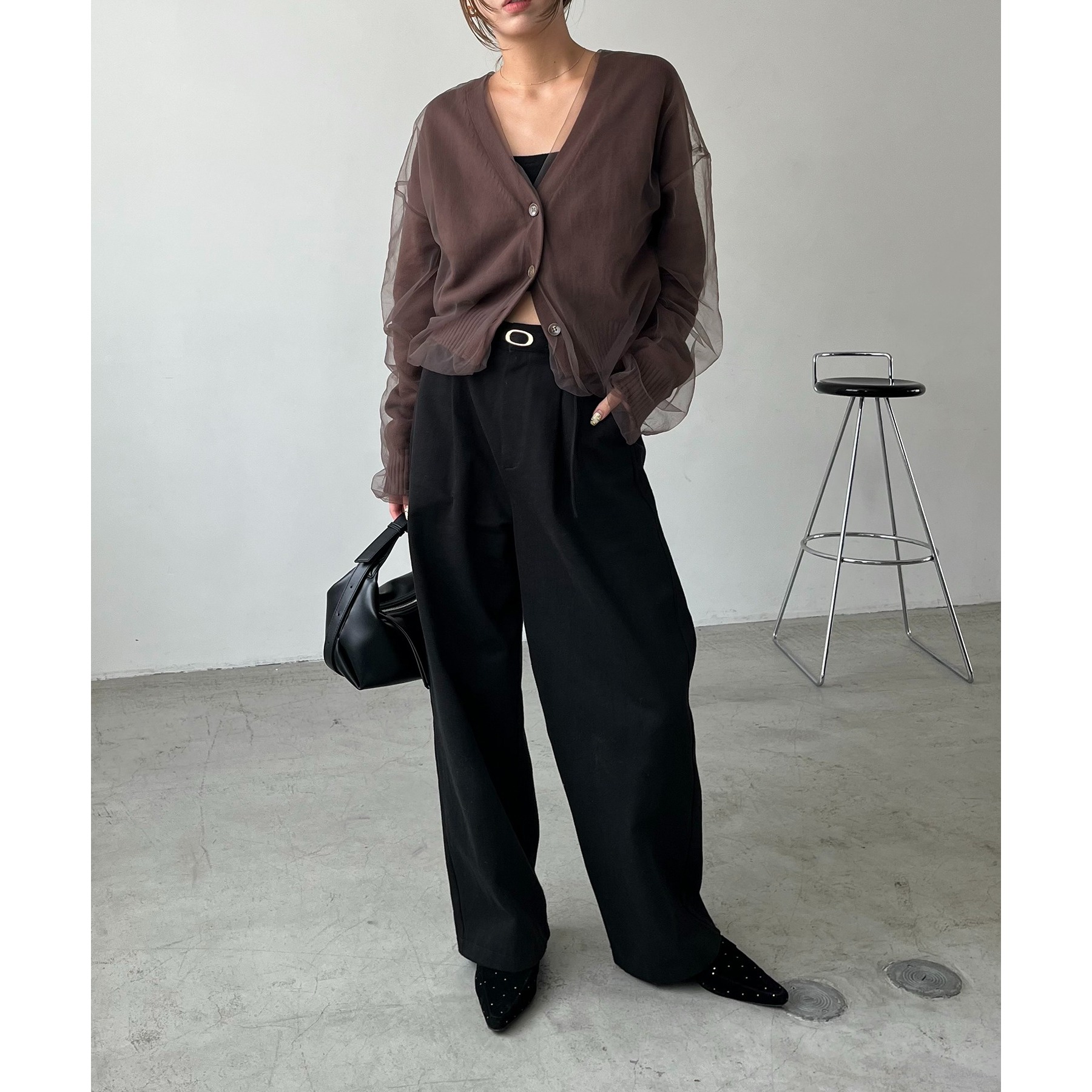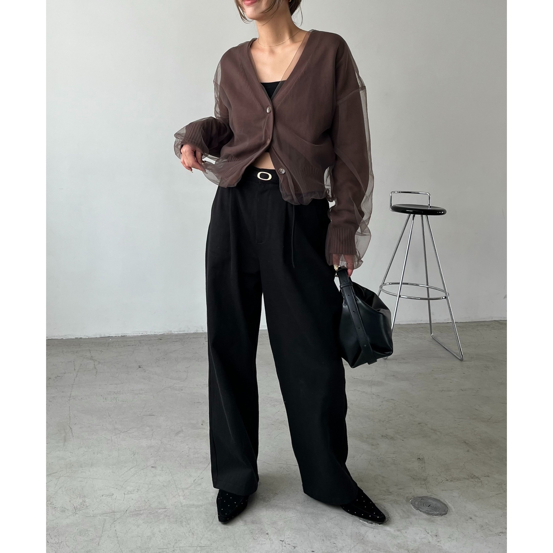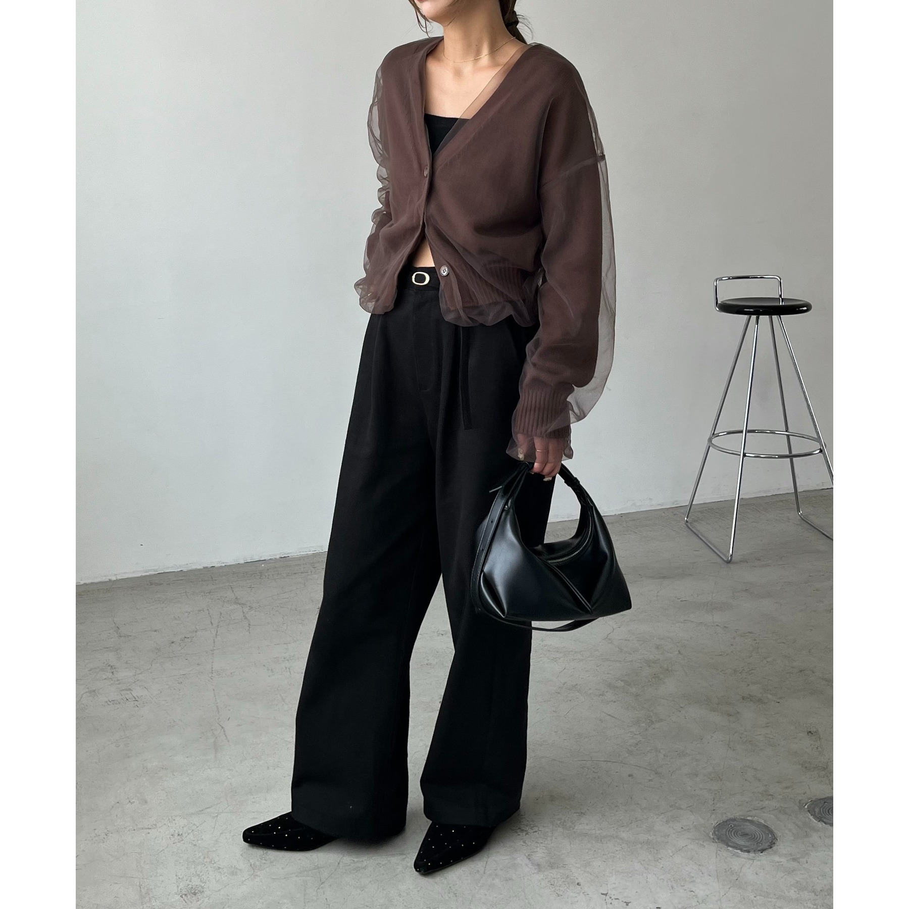 ・2タックワイドパンツ合わせでメリハリのあるスタイリングに