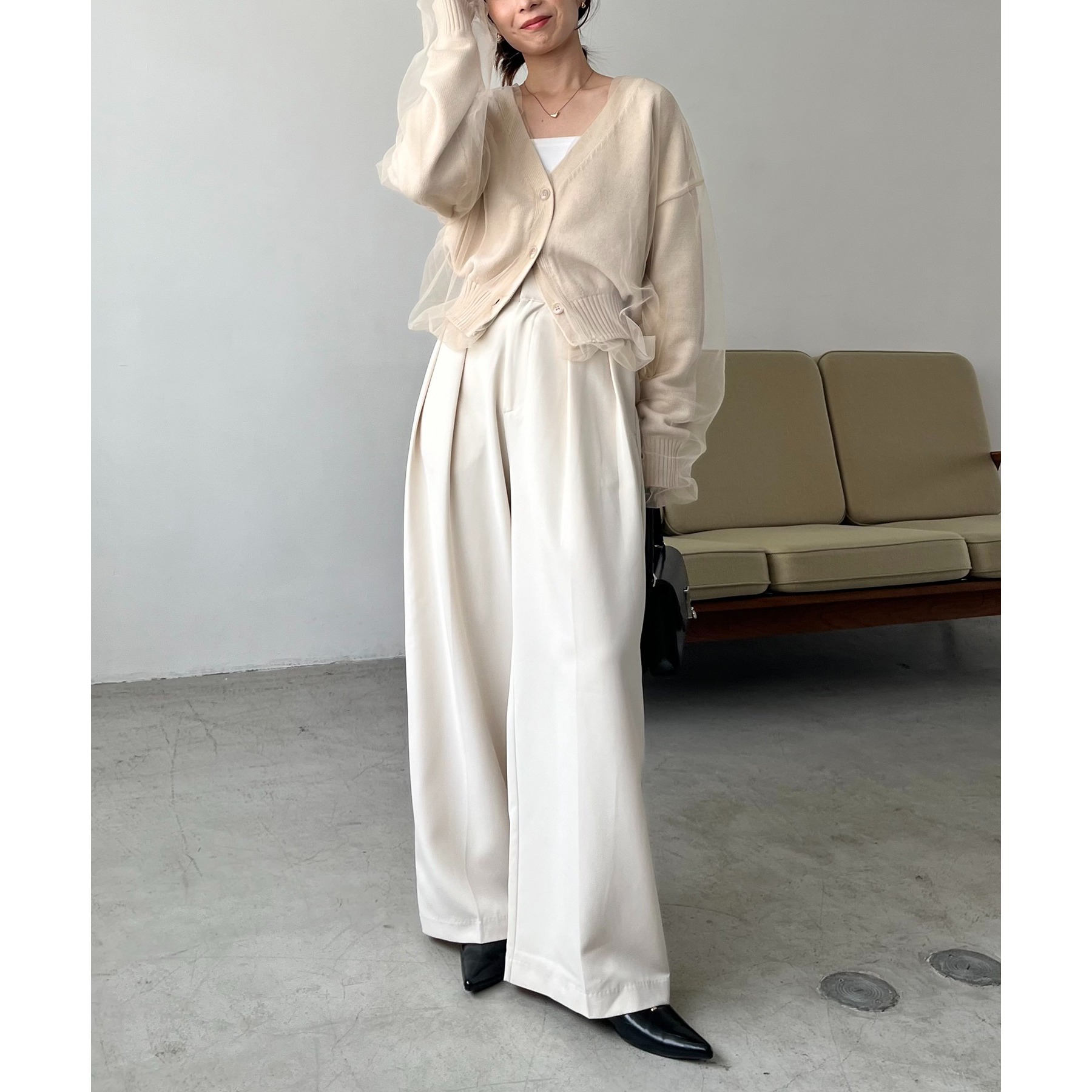 【ベージュ着用アイテム】2タックワイドパンツ