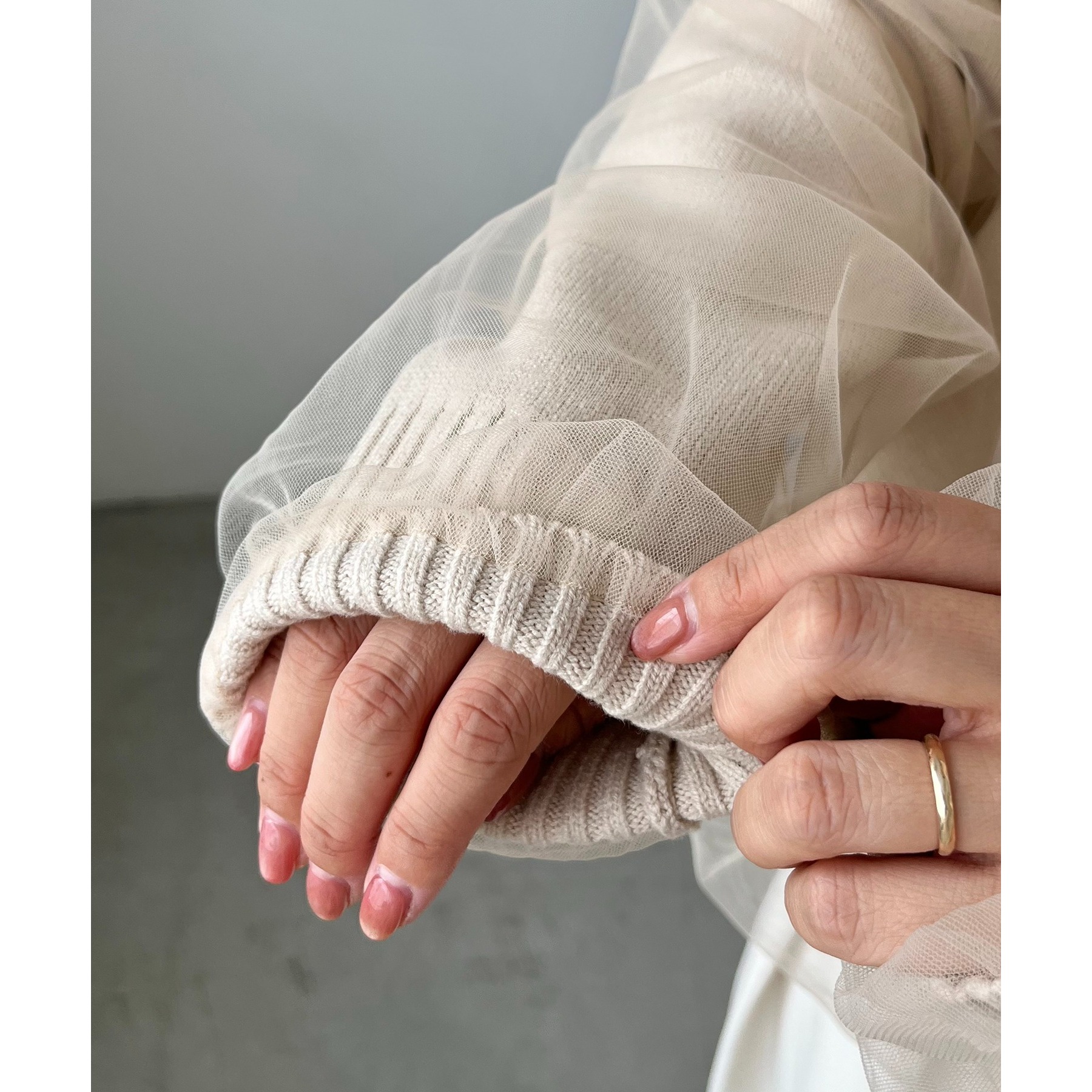 ・裾、袖口はリブになっており、チュールのボリュームがありつつもメリハリのあるシルエットに
