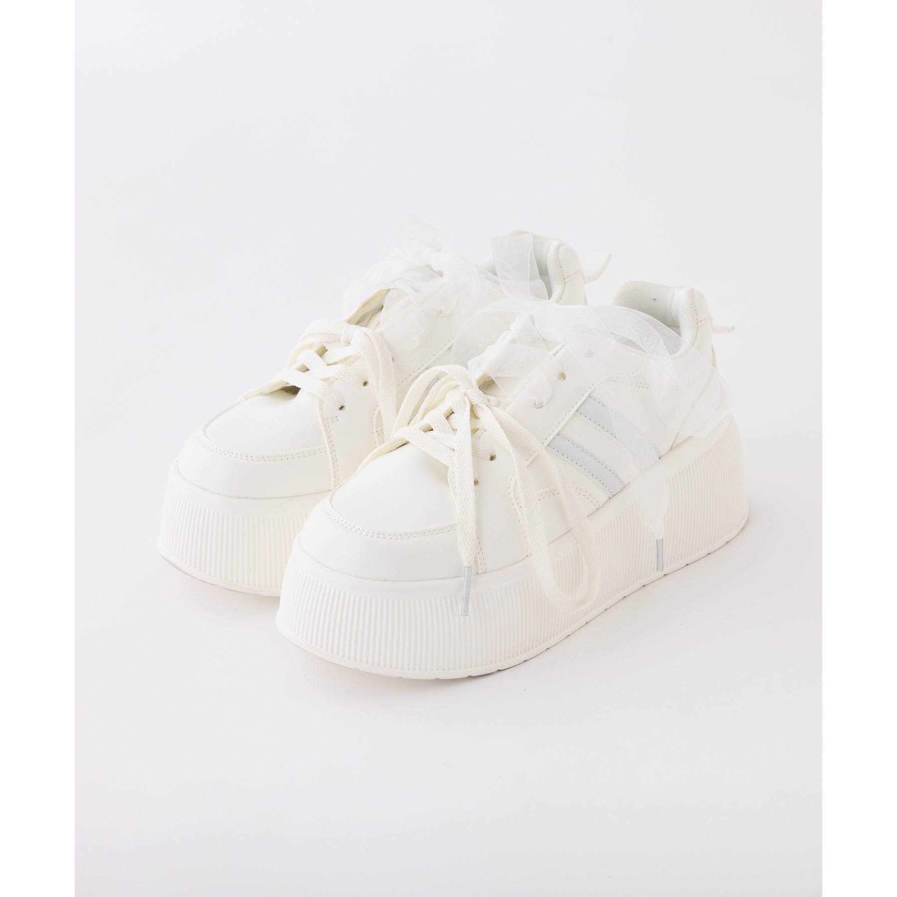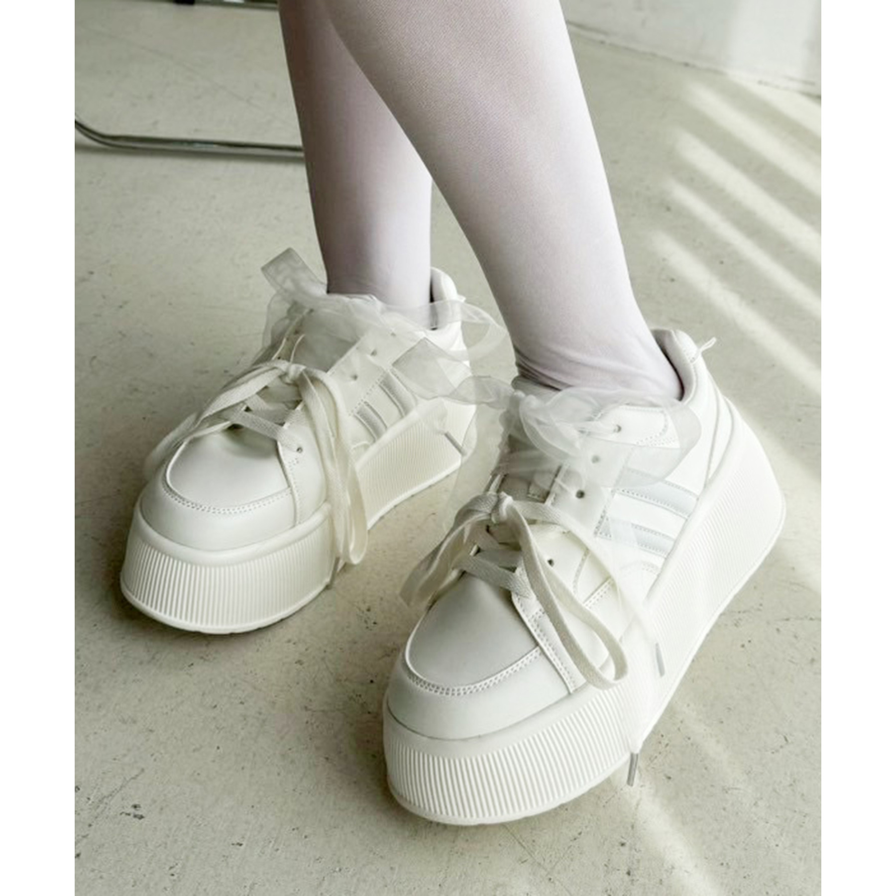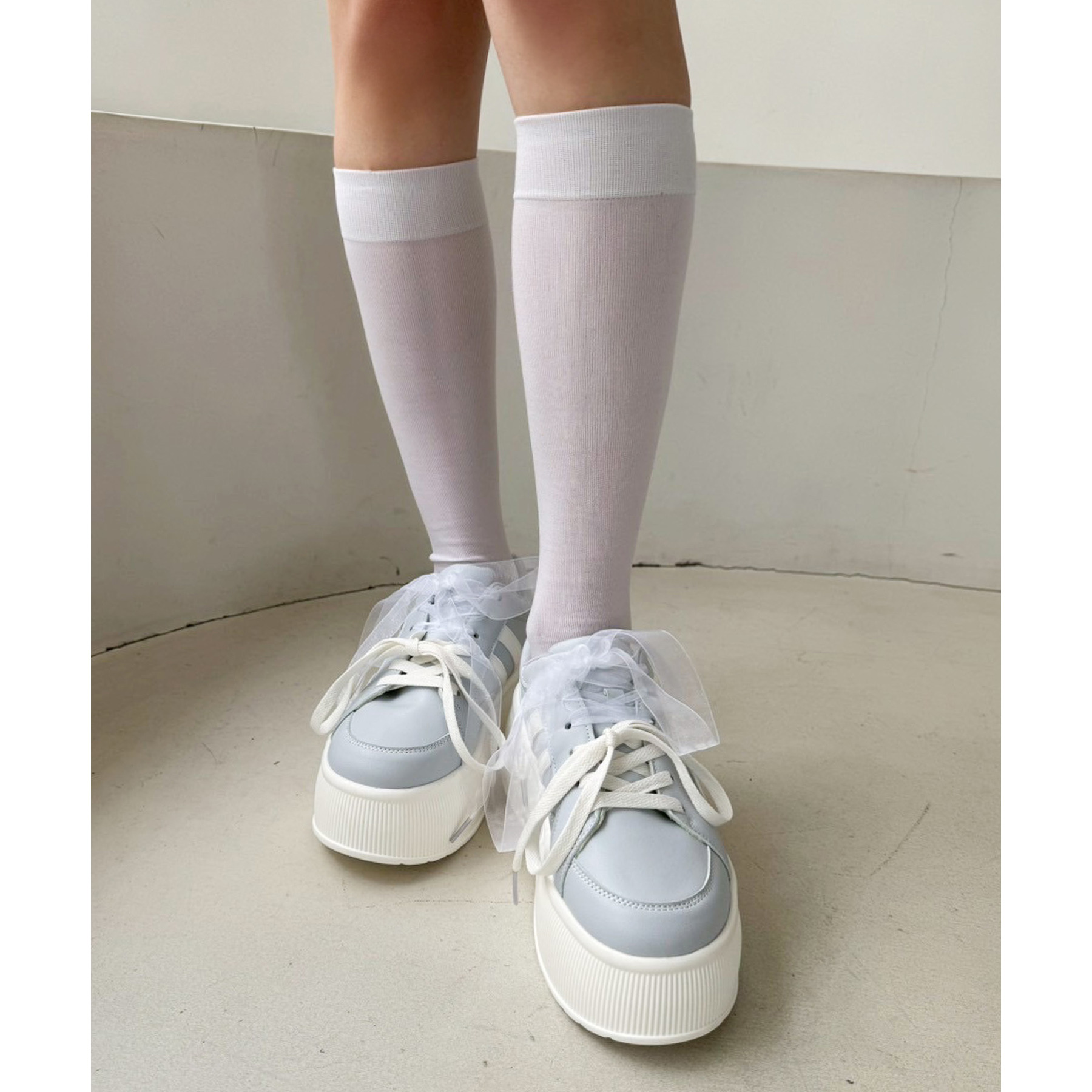 靴紐とリボンがセットになっているので気分によって付け方を変えられます。