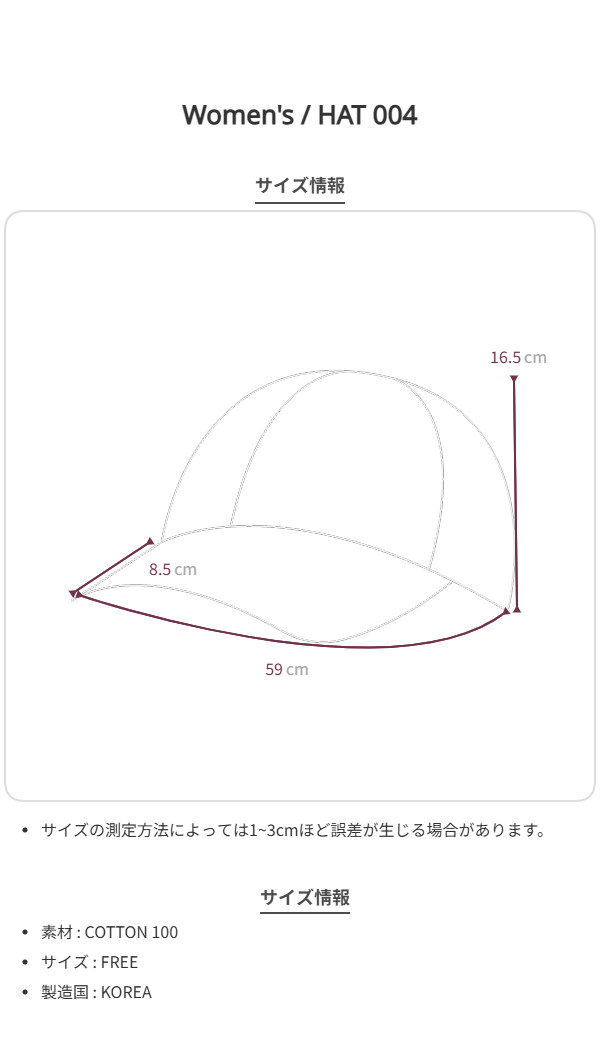-周囲59cm 深さ16.5cm つば幅8.5cm