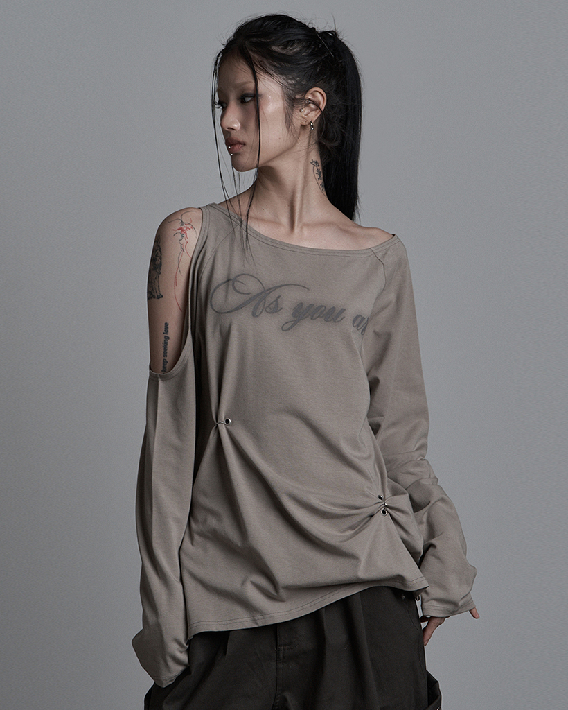 CUT-OUT PIERCING LONG SLEEVE BEIGE