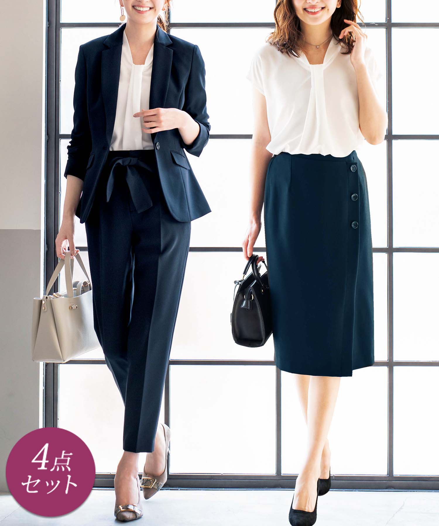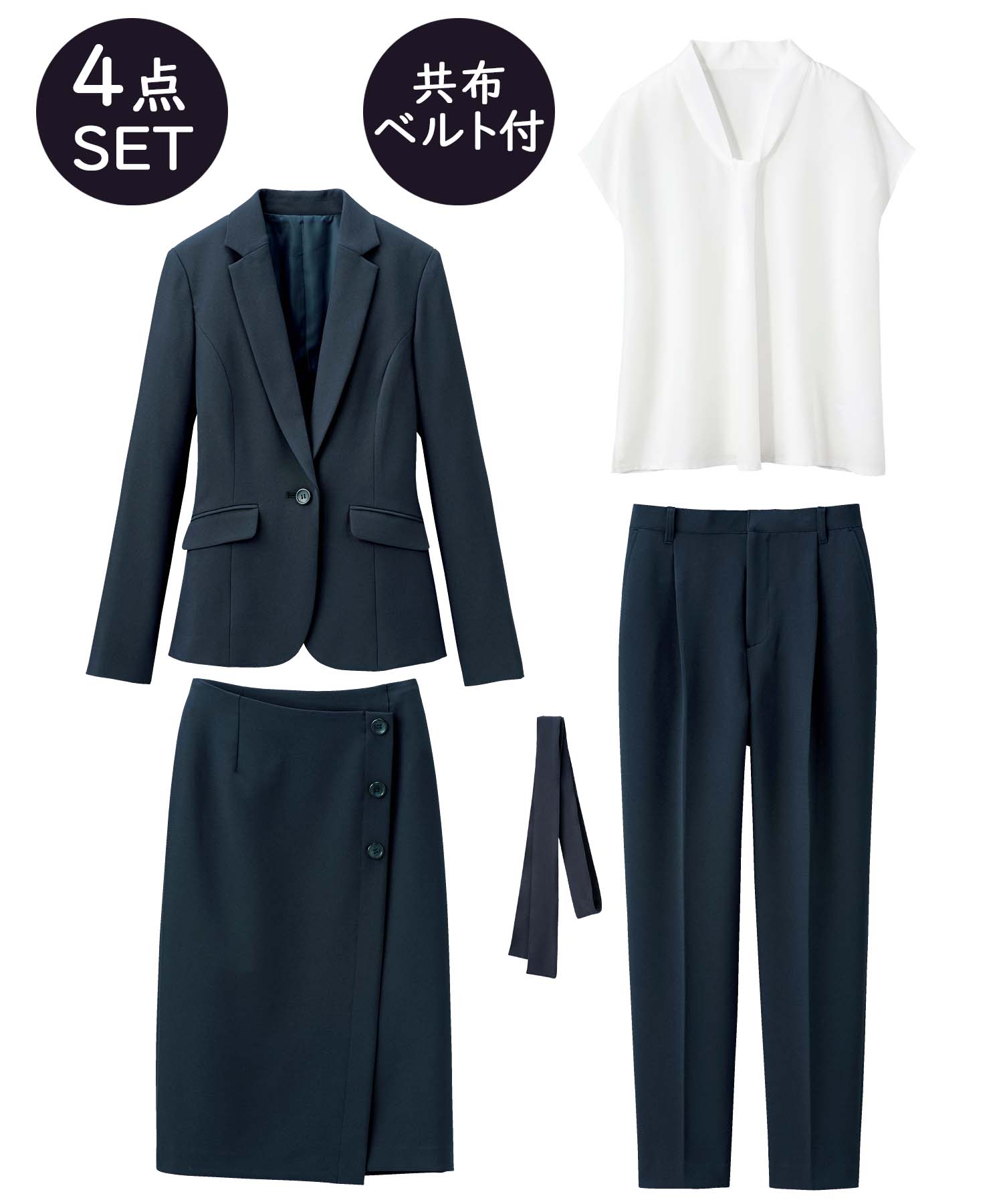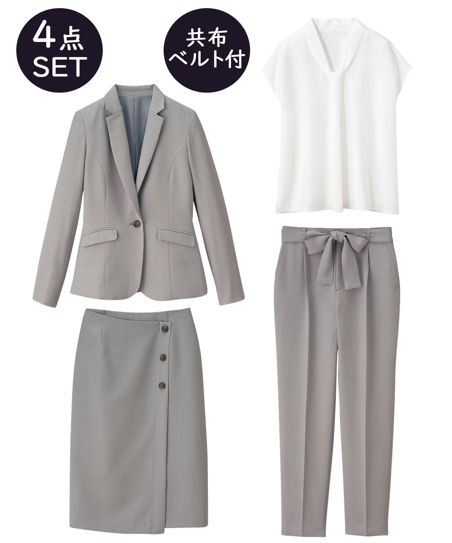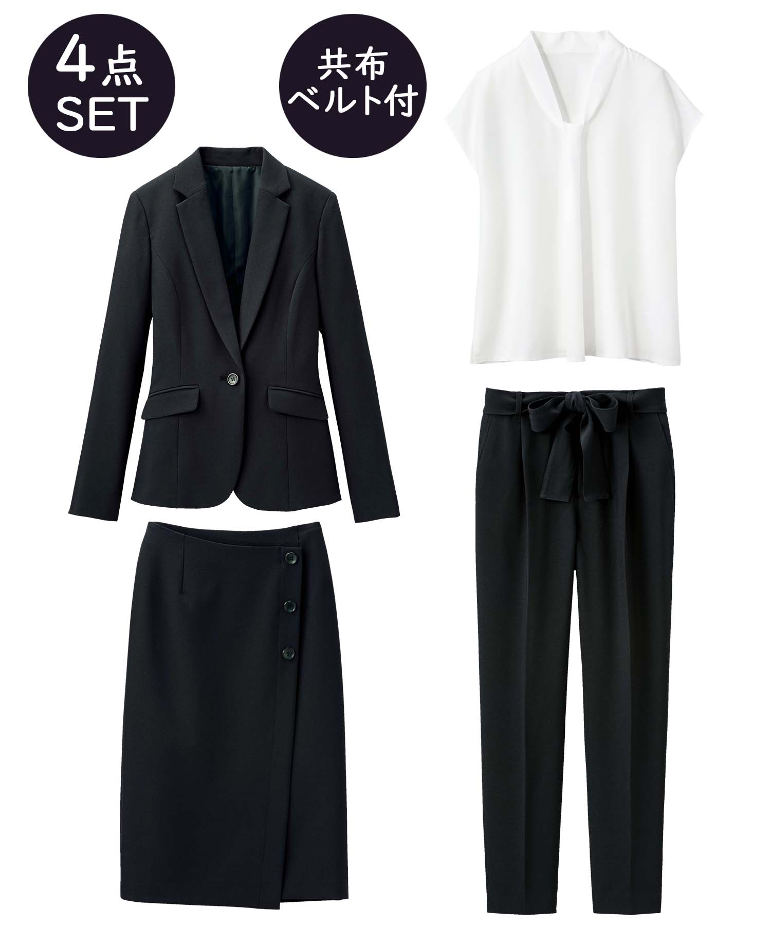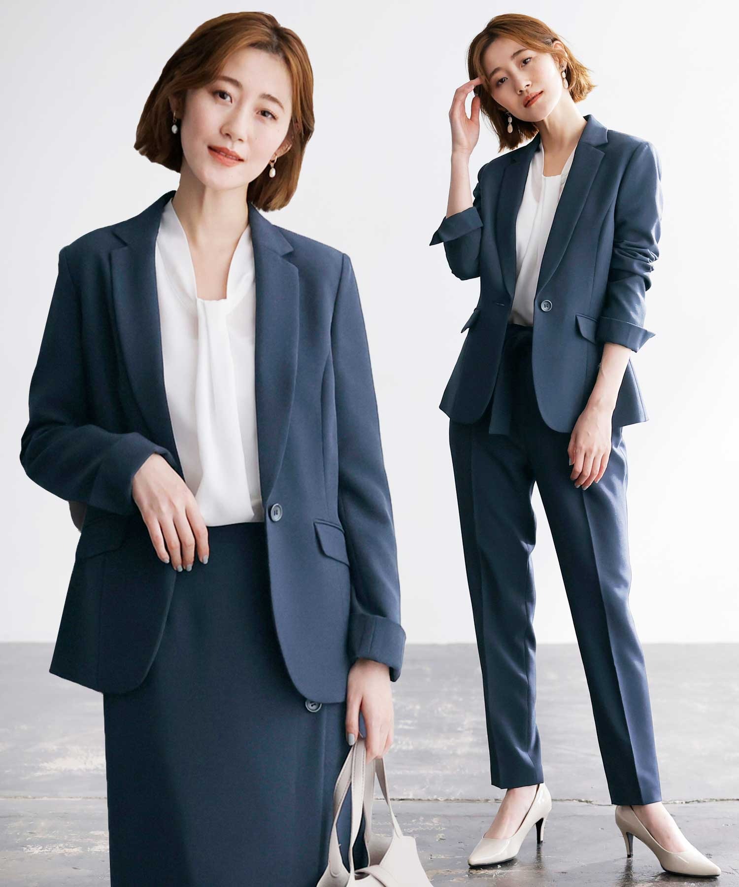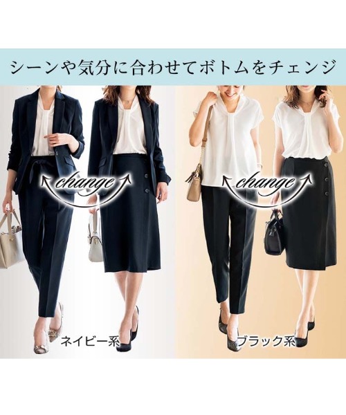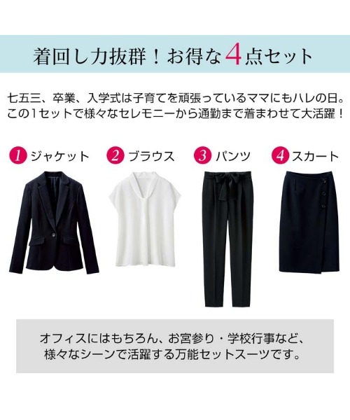 【ジャケット+2ボトム】洗えるストレッチ!ジャケット&ブラウス&パンツ&スカートセットアップスーツ