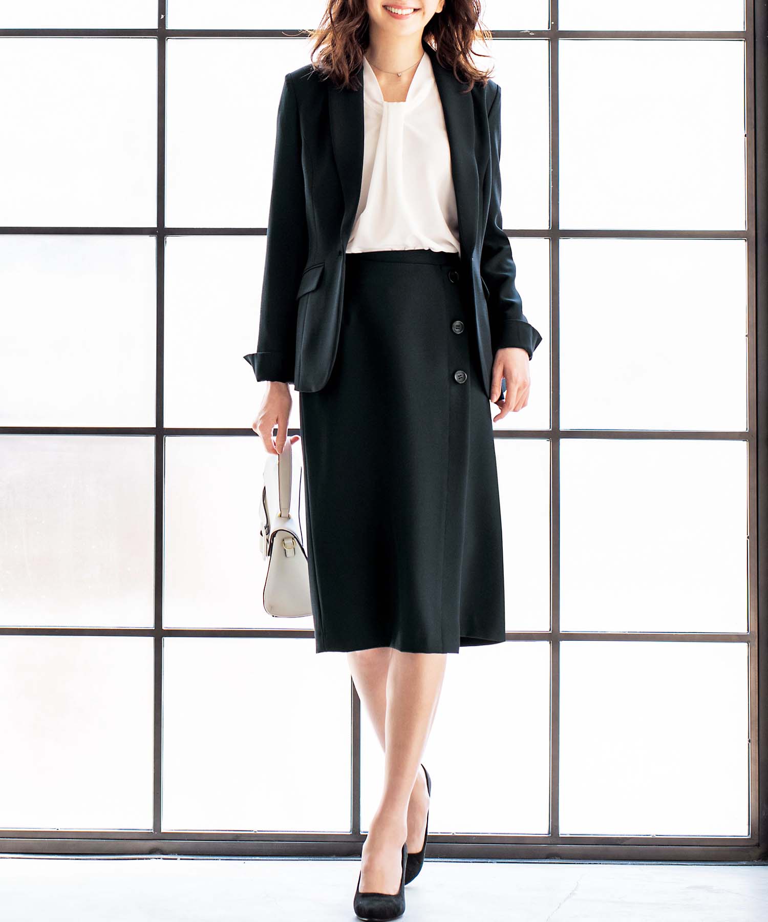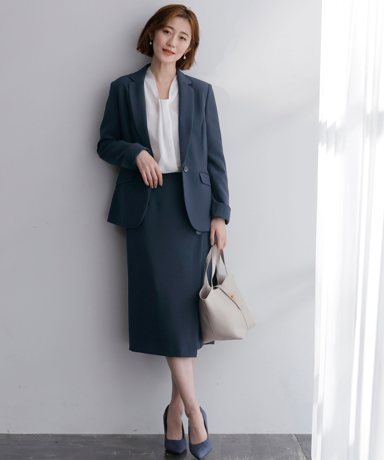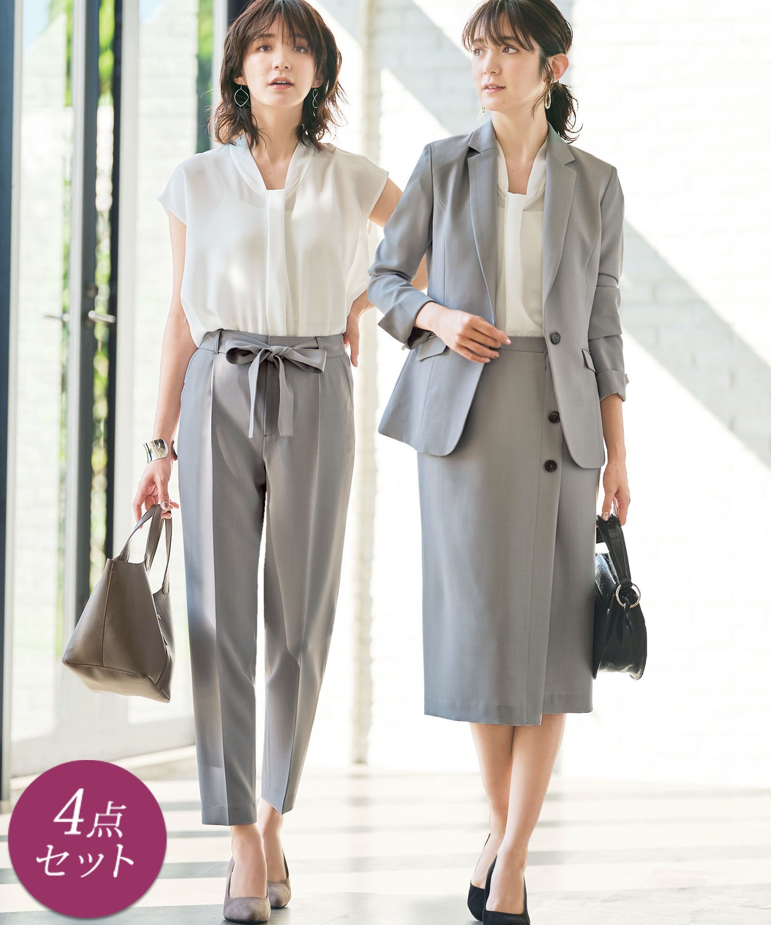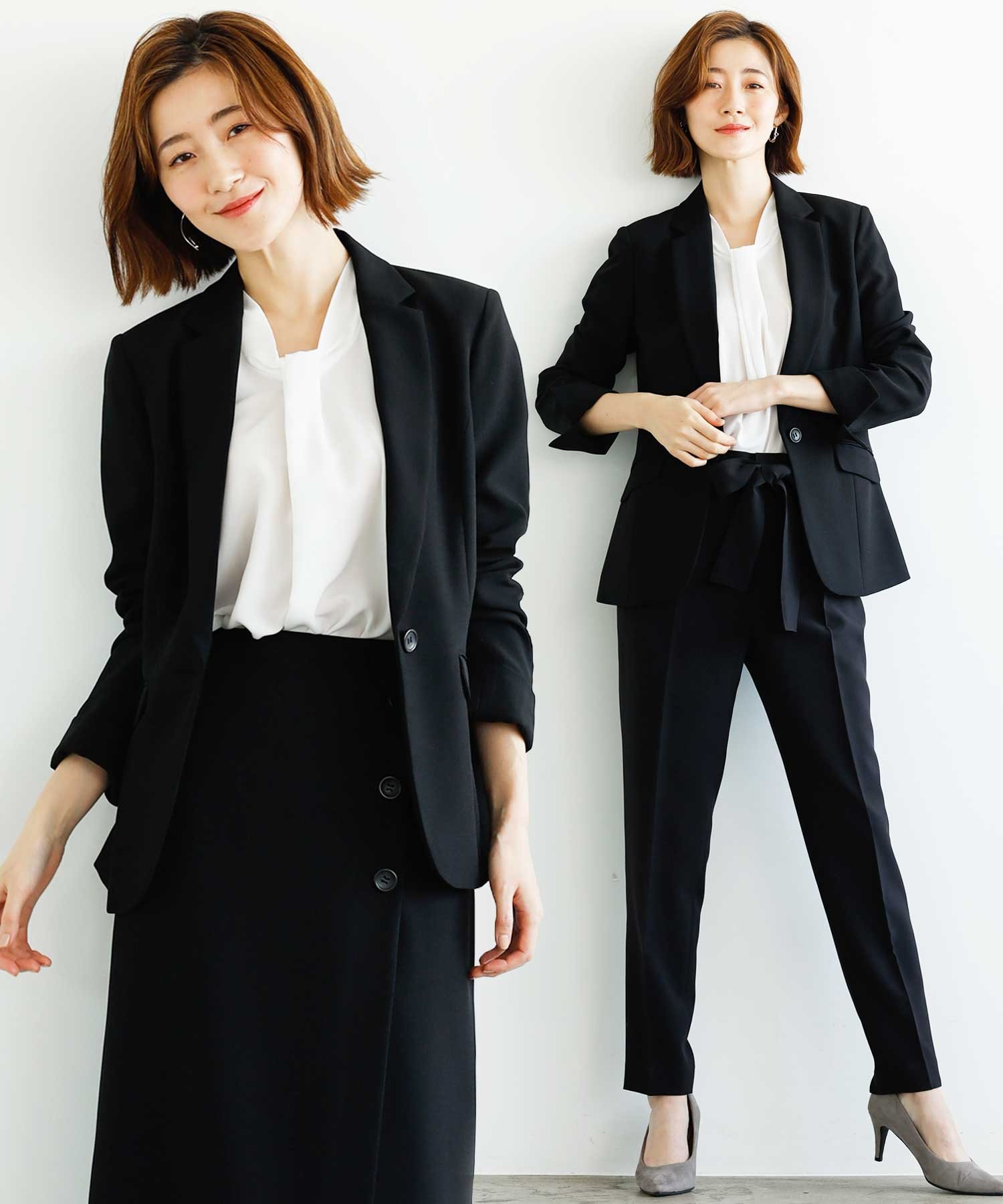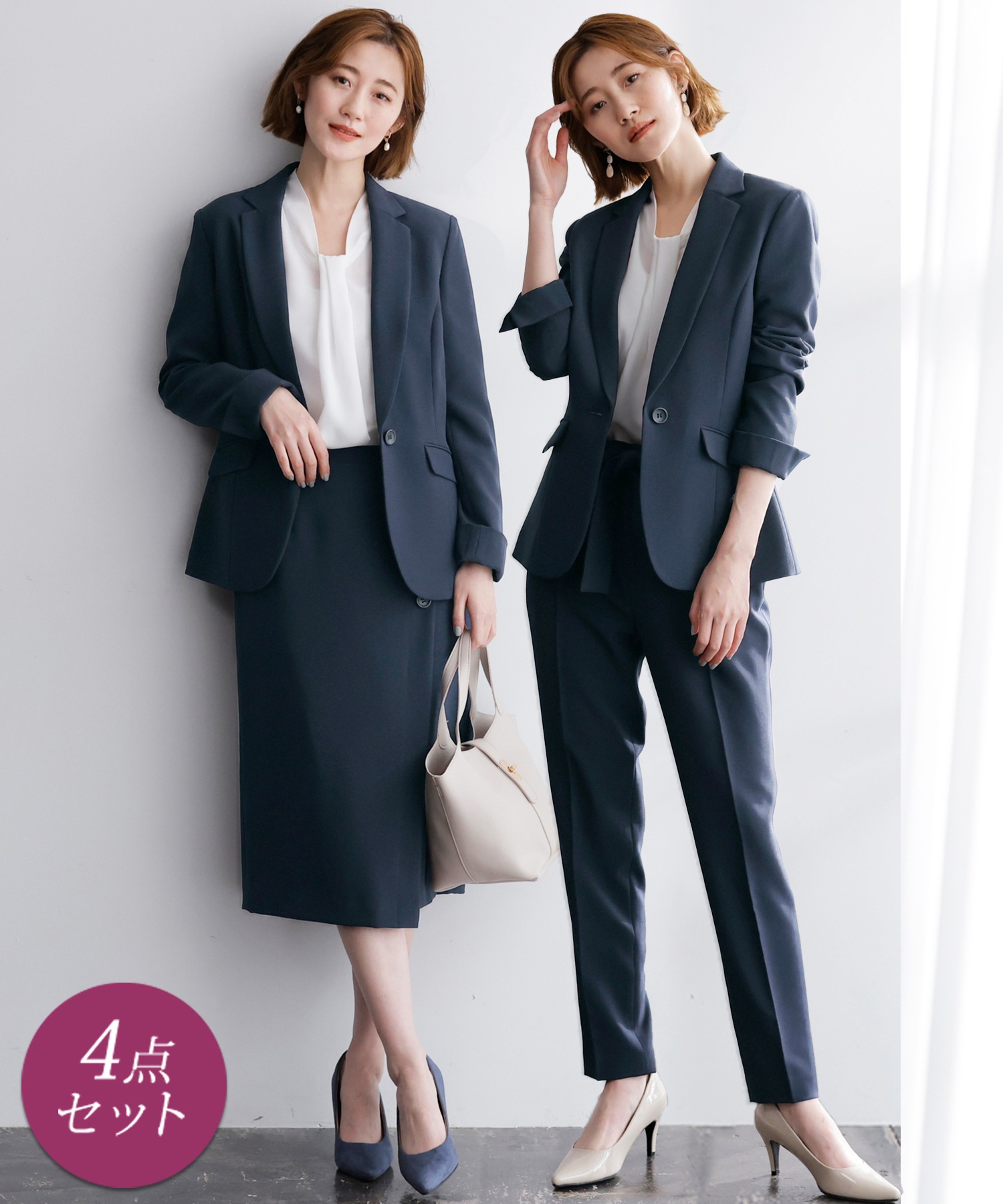 【ジャケット+2ボトム】洗えるストレッチ!ジャケット&ブラウス&パンツ&スカートセットアップスーツ