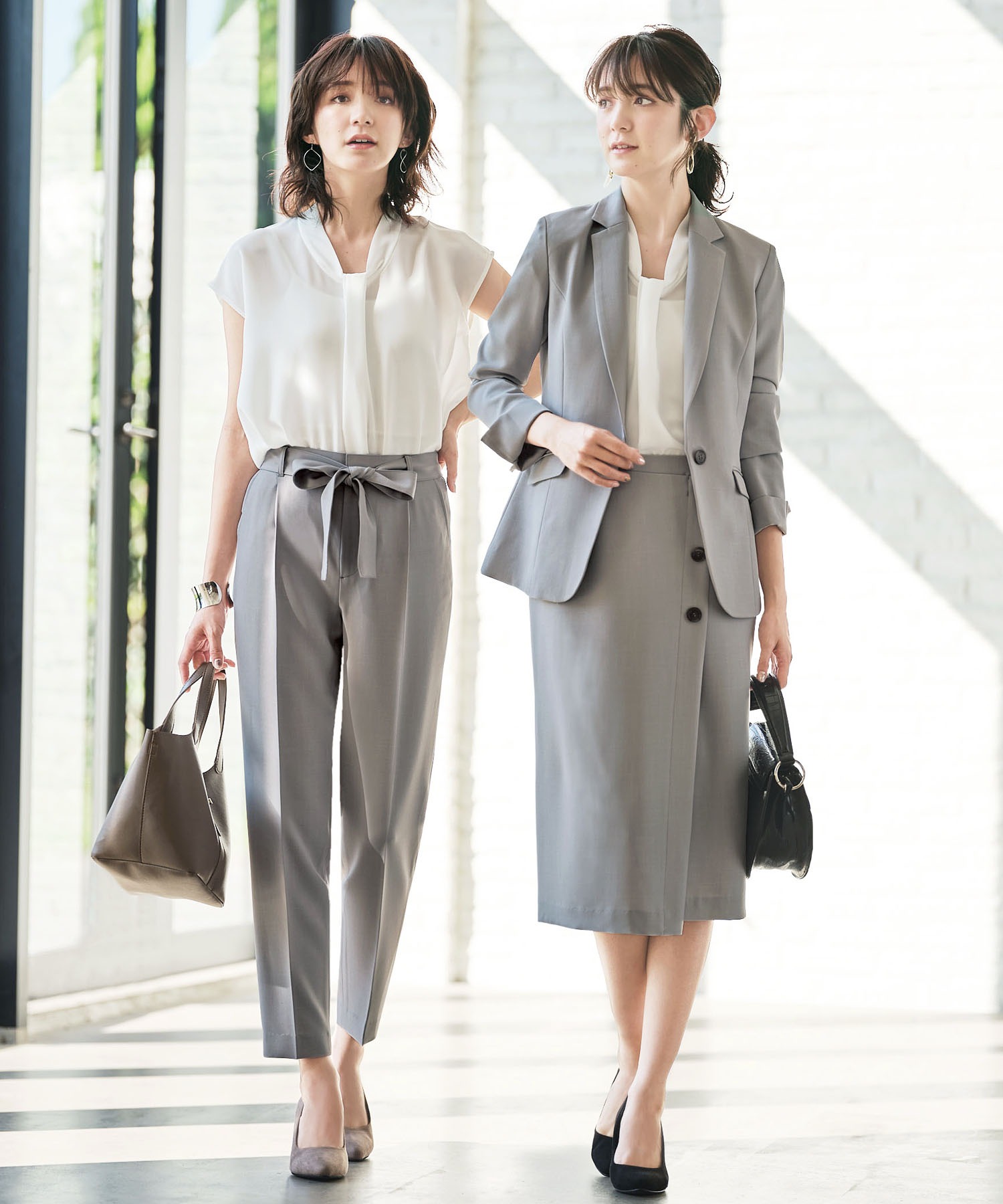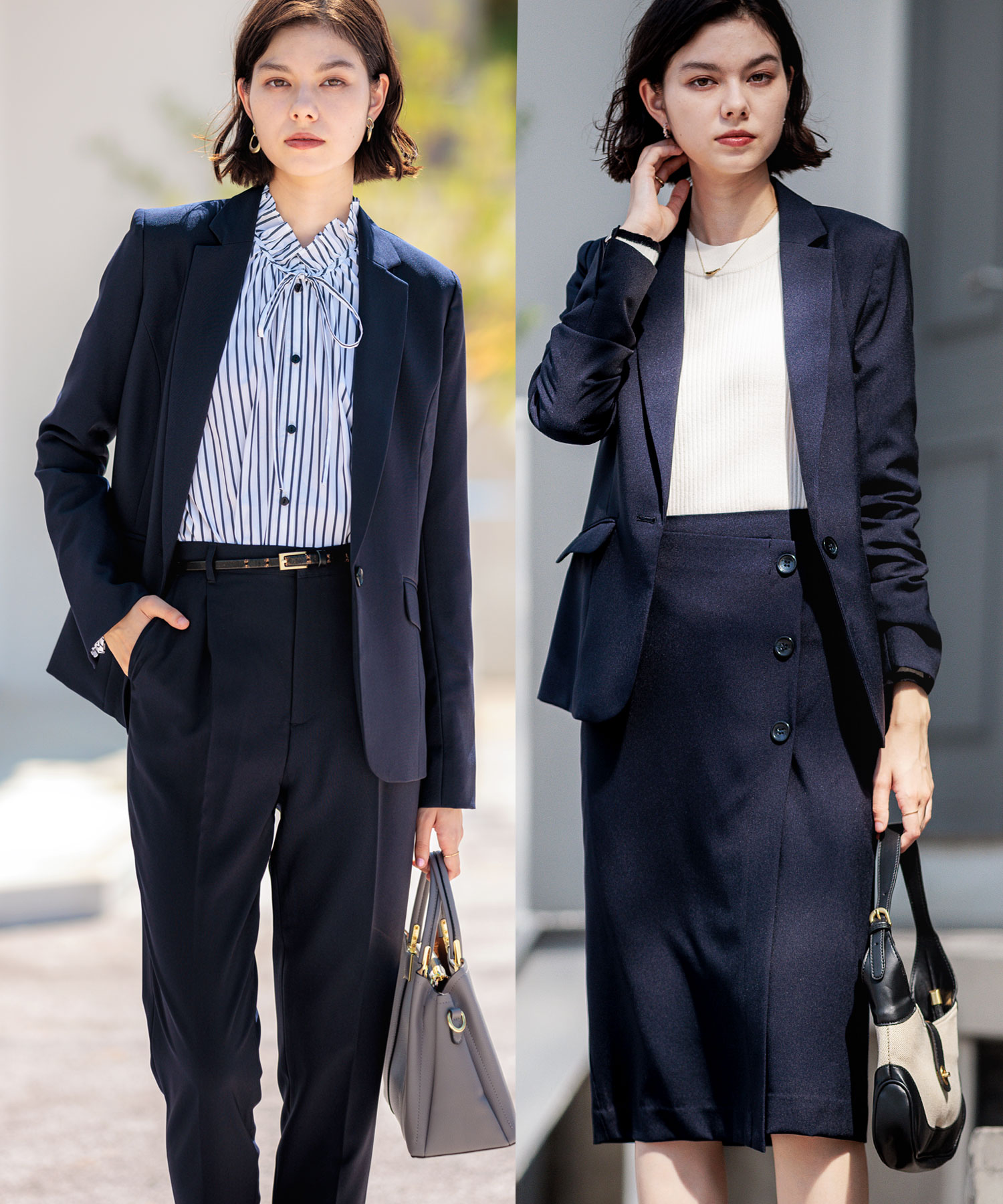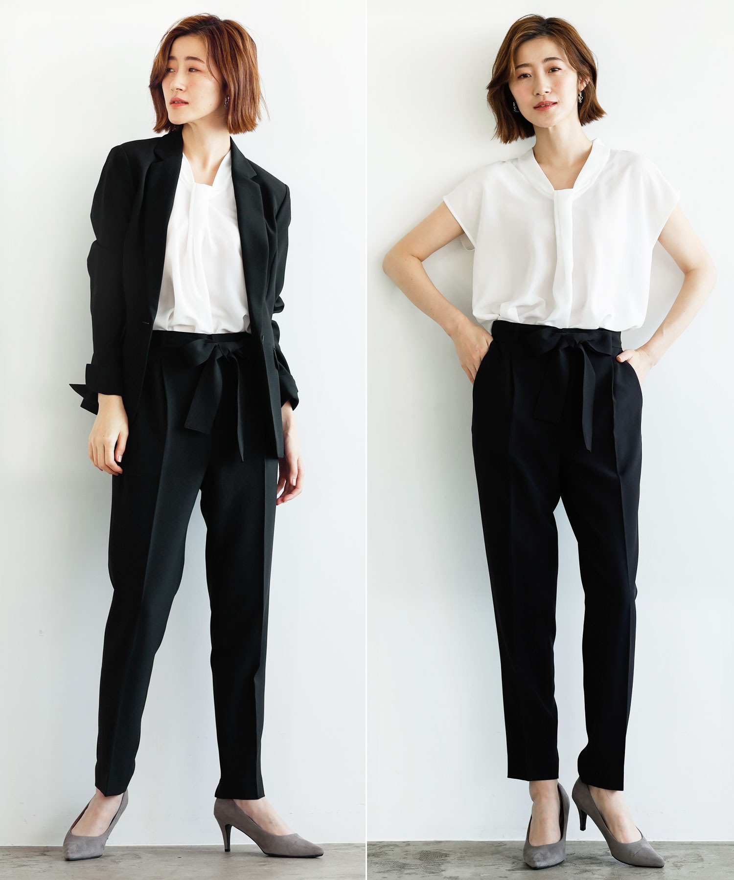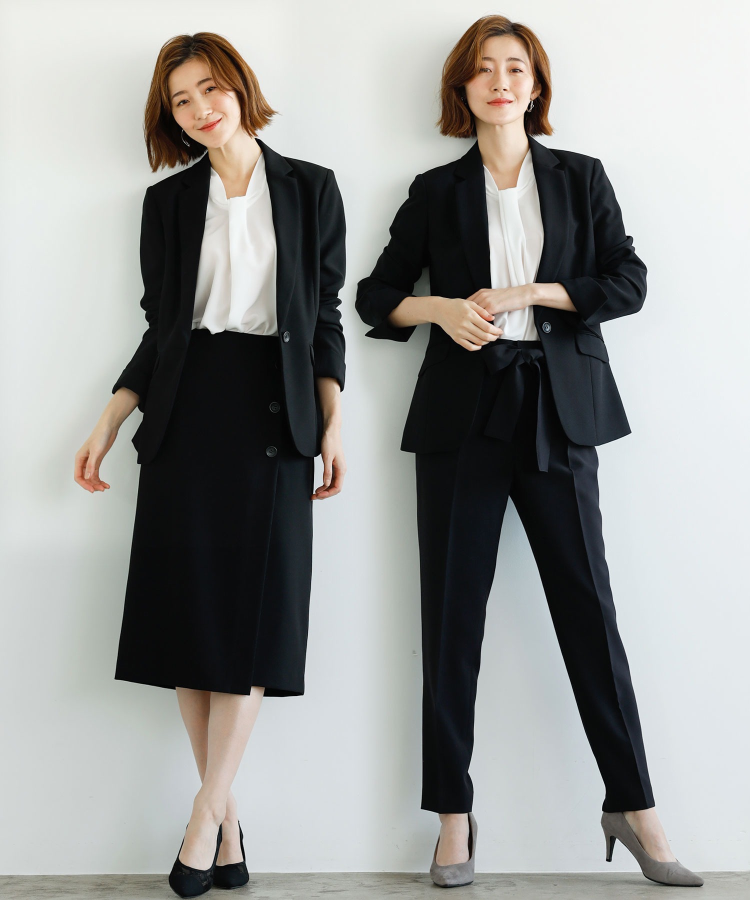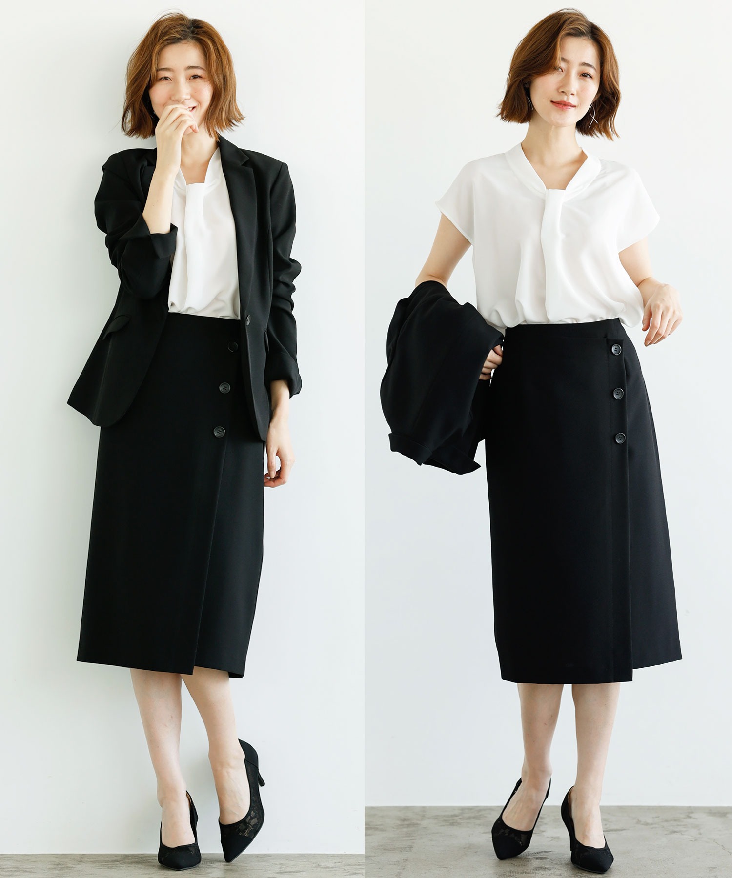 【ジャケット+2ボトム】洗えるストレッチ!ジャケット&ブラウス&パンツ&スカートセットアップスーツ