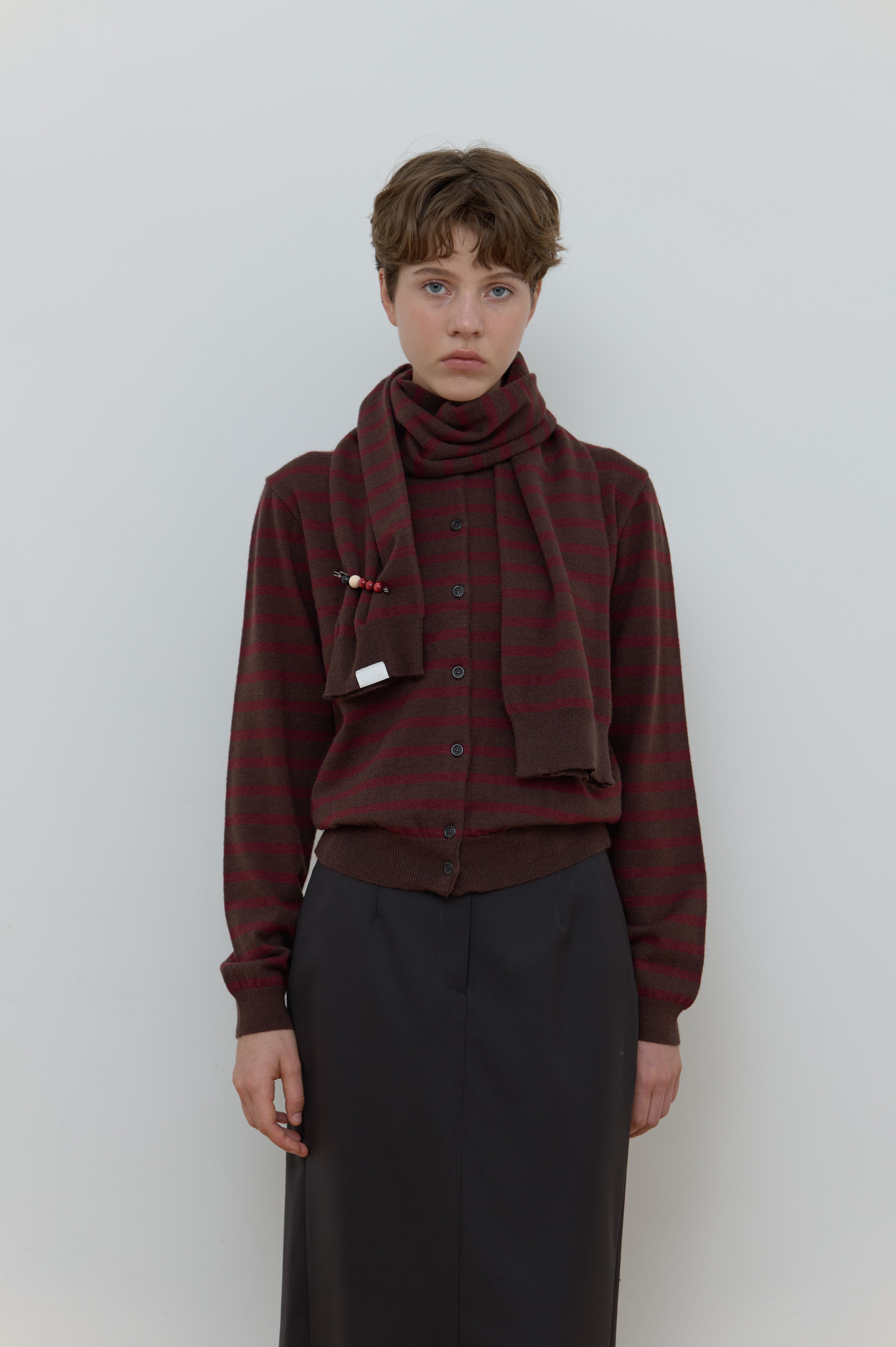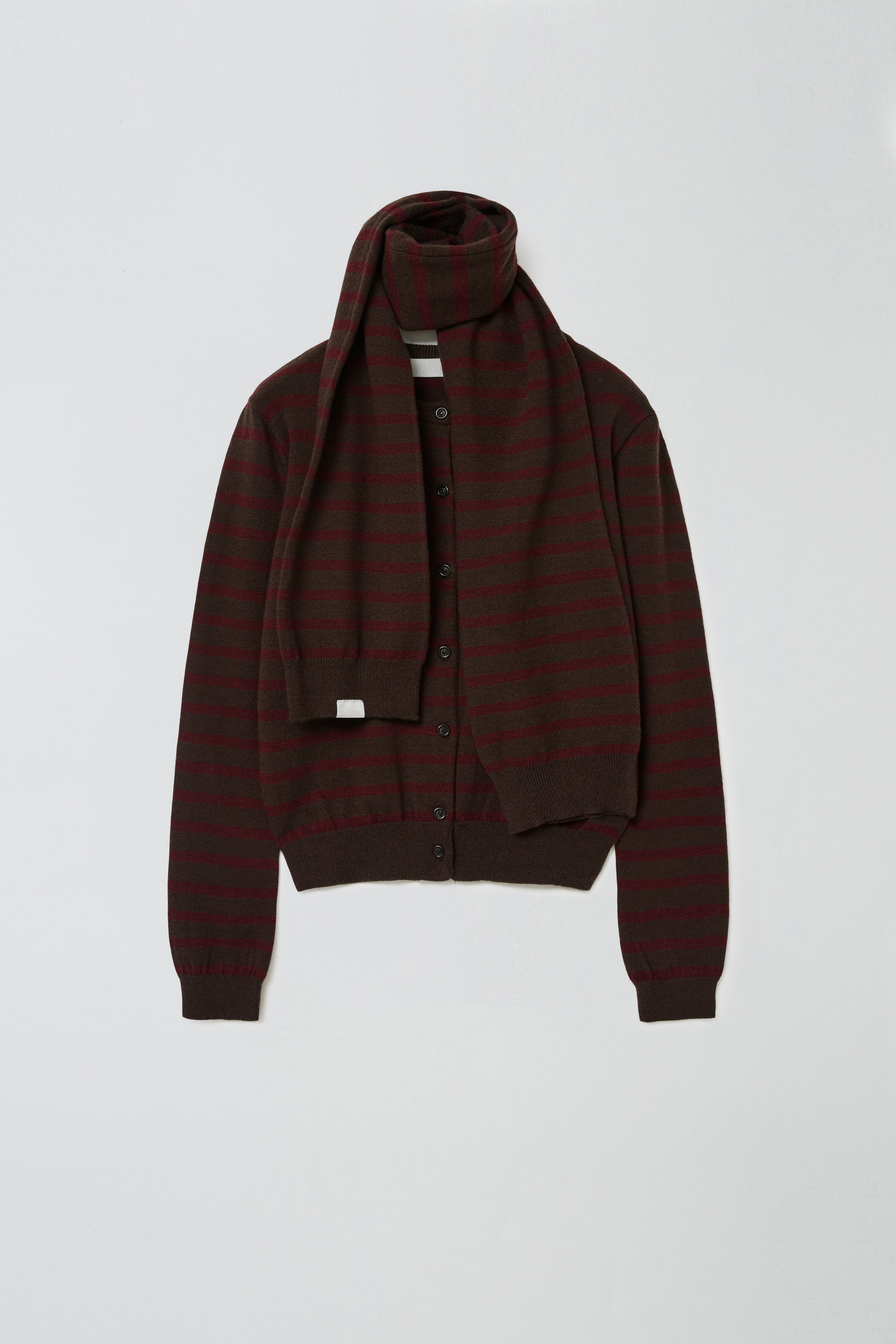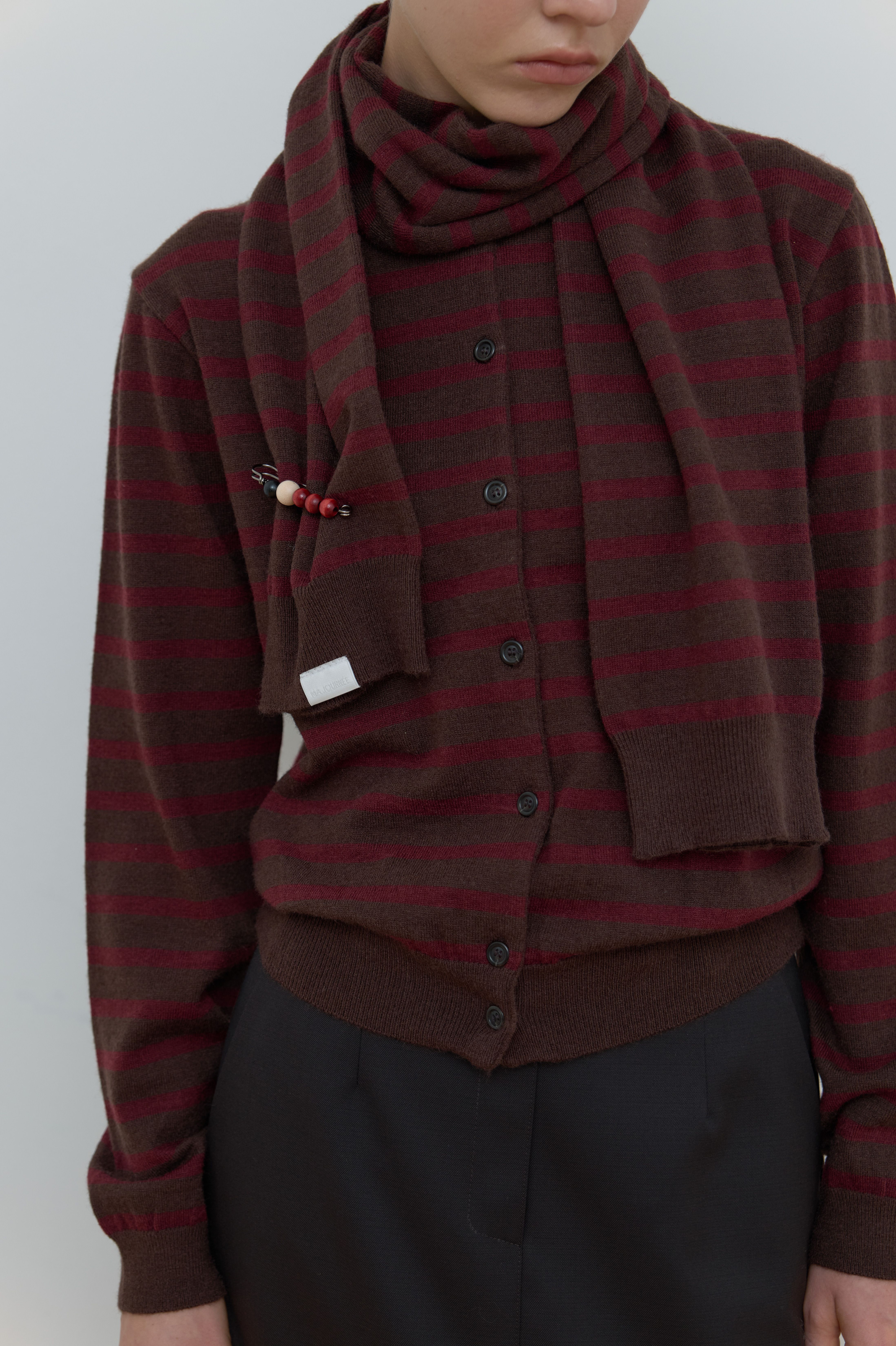 MUFFLER SET STRIPE CARDIGAN_BROWN/WINE