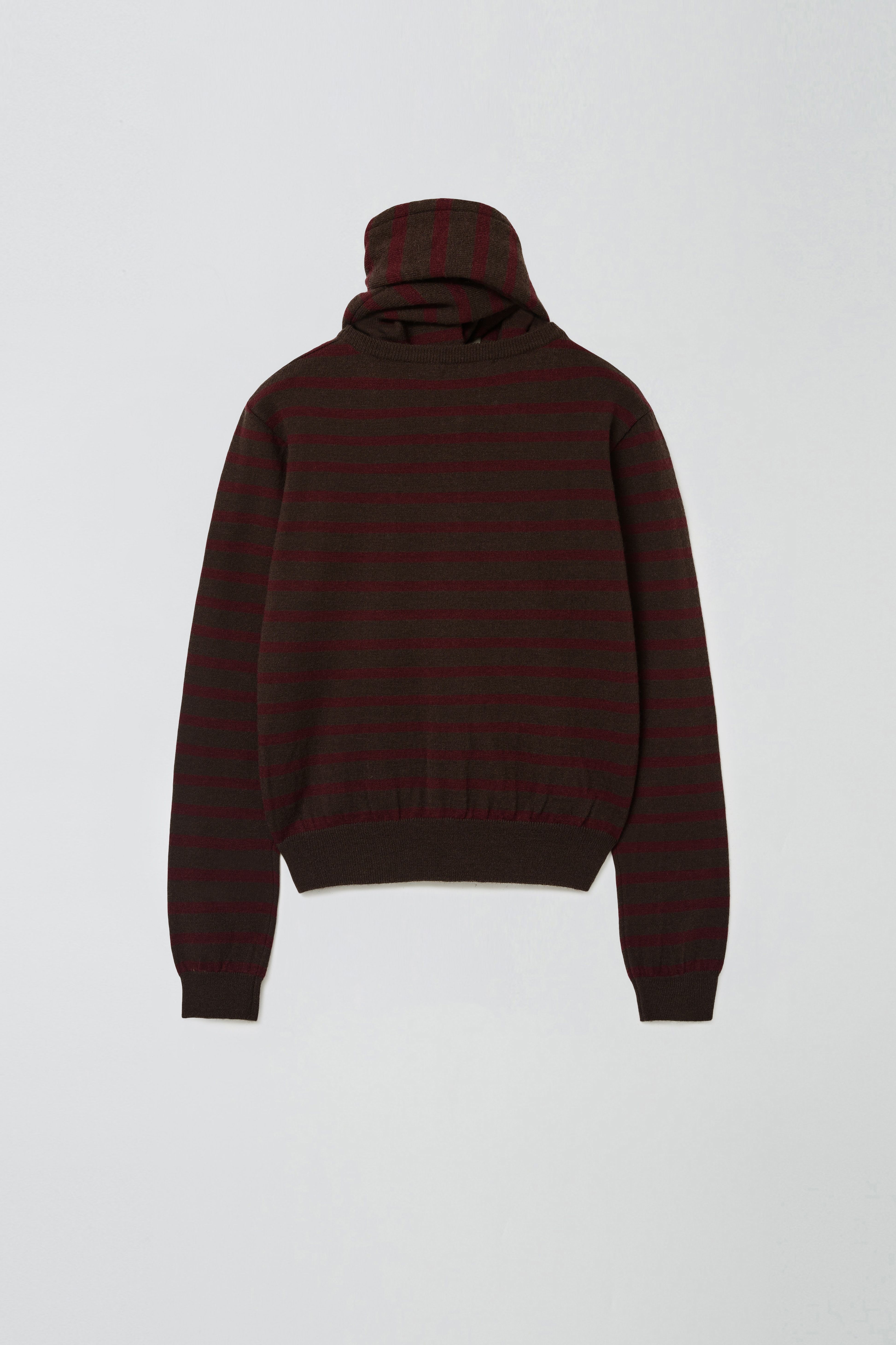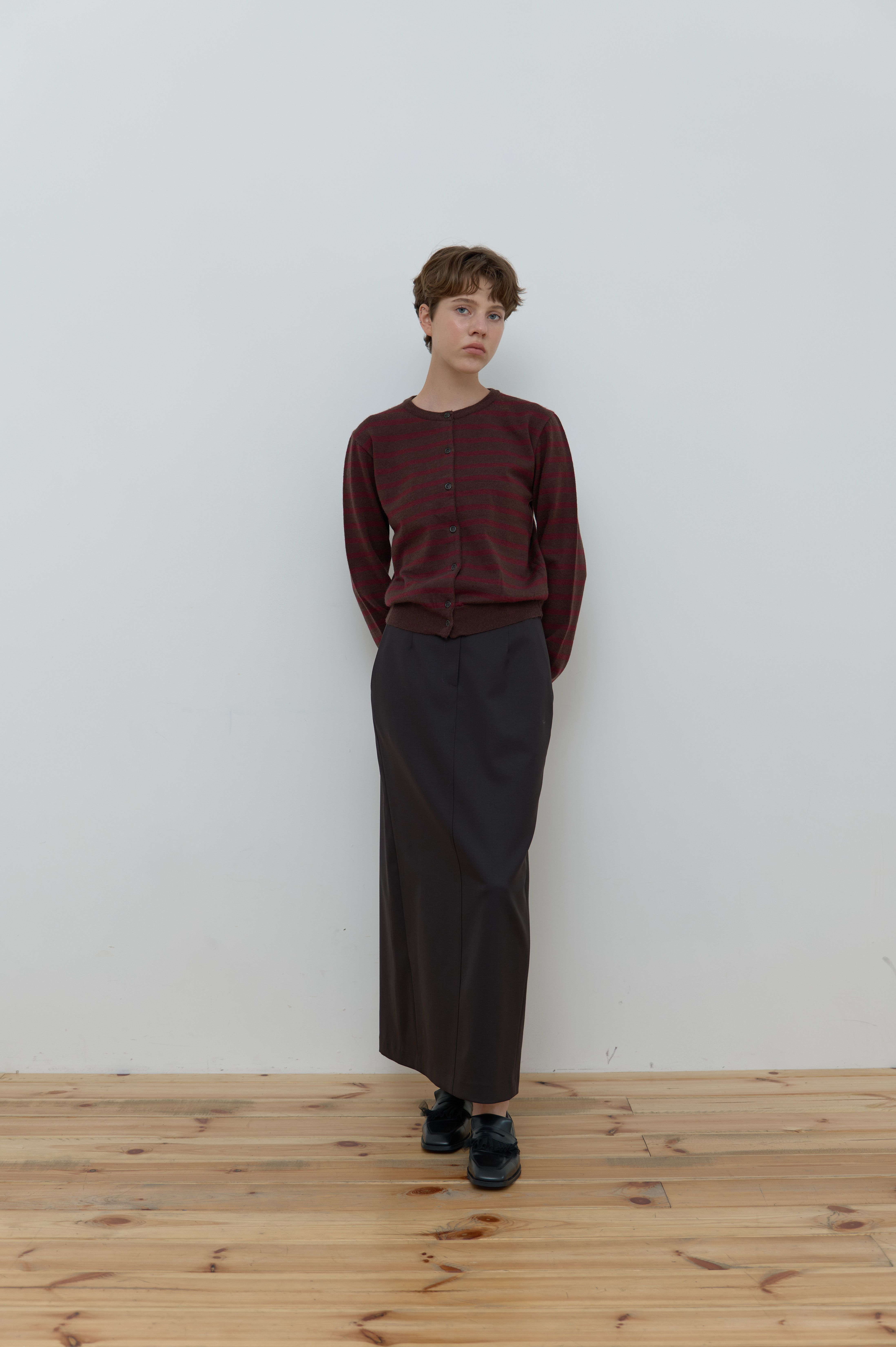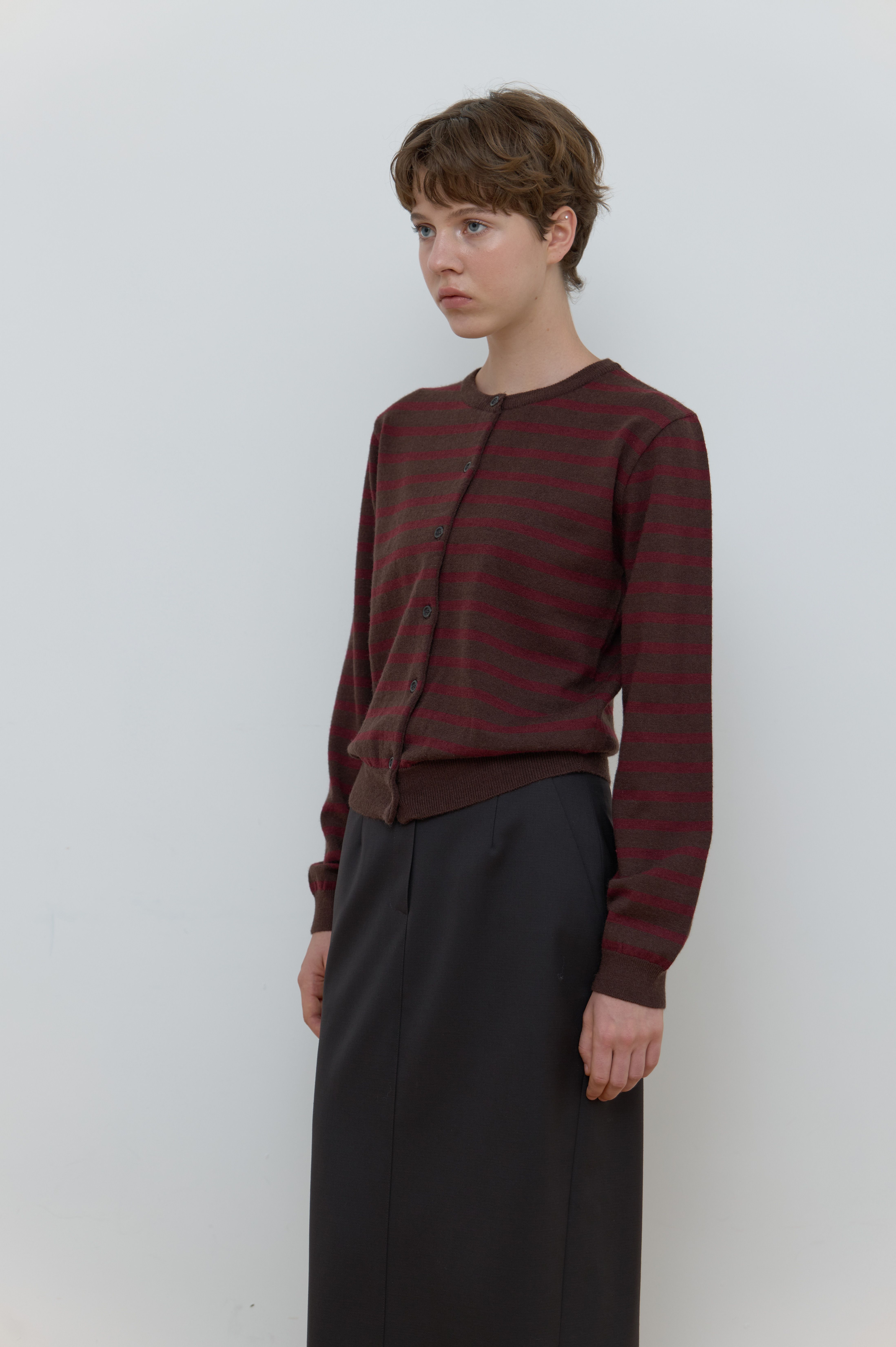 MUFFLER SET STRIPE CARDIGAN_BROWN/WINE