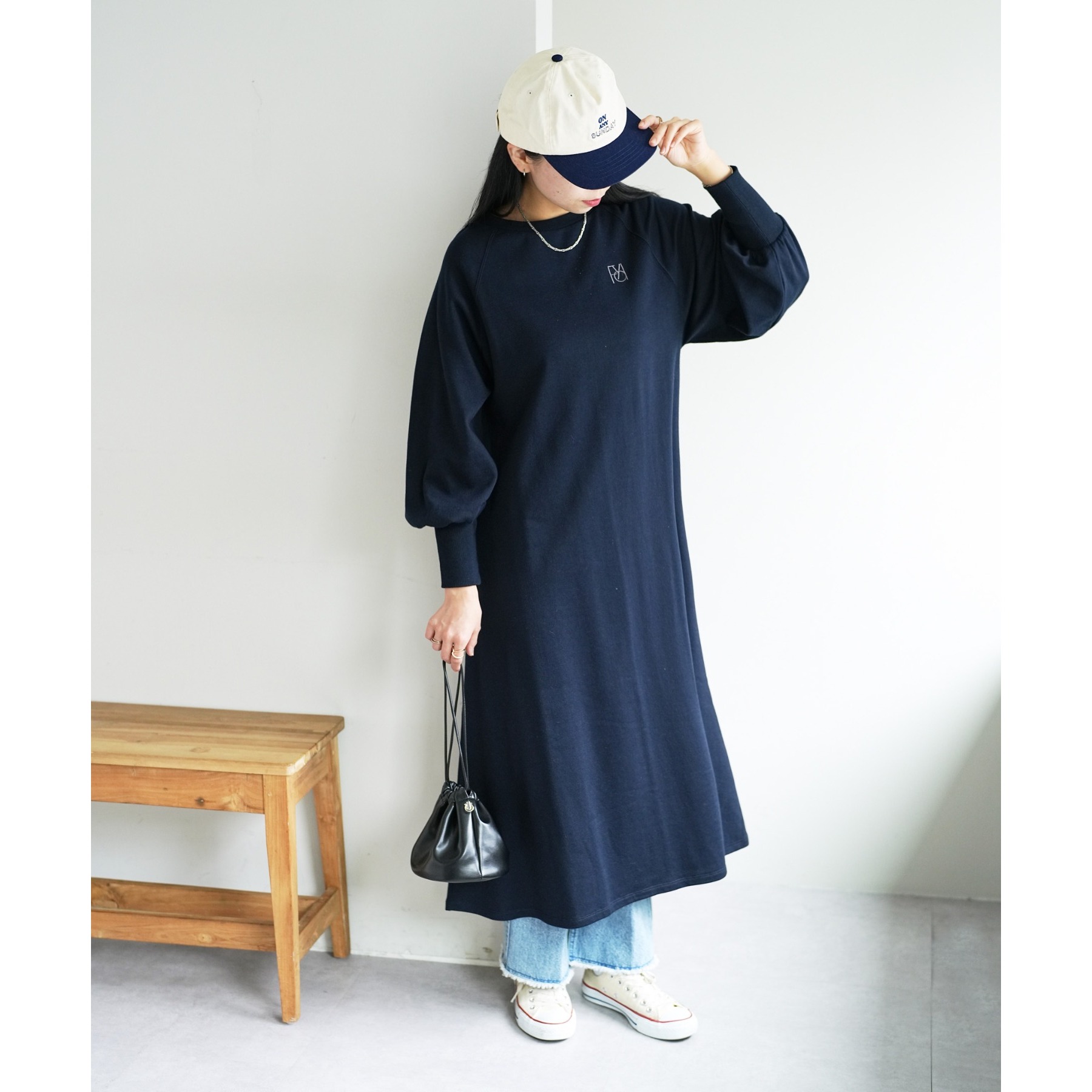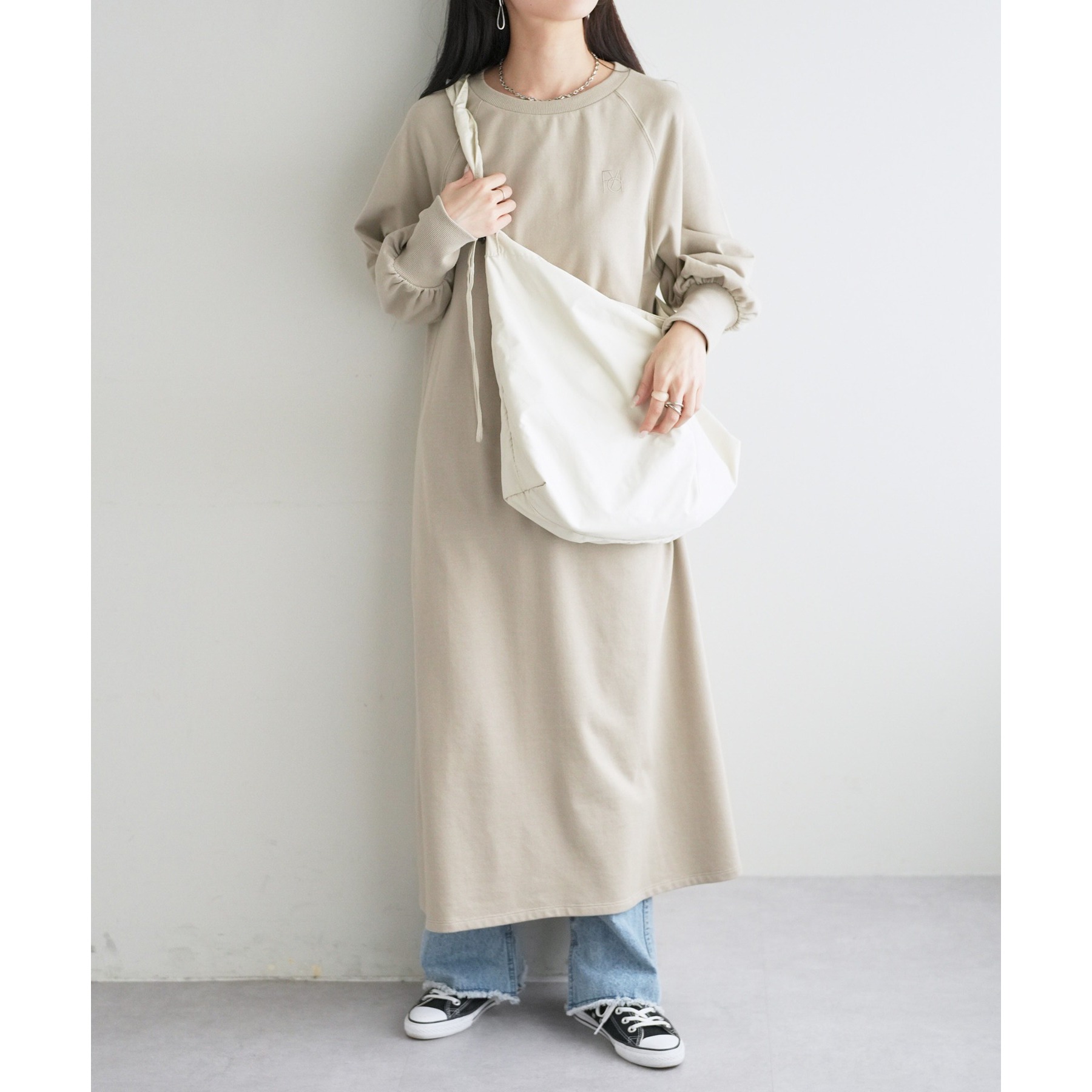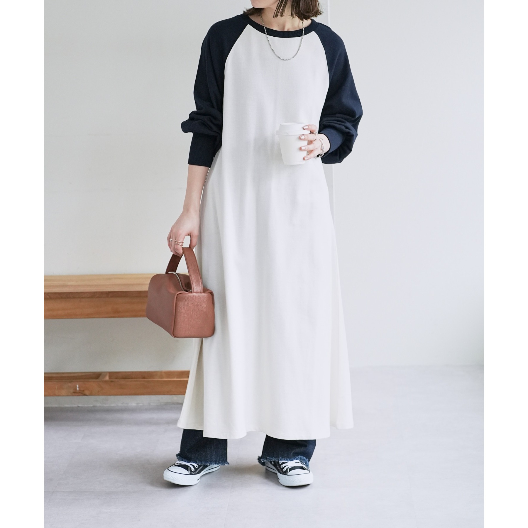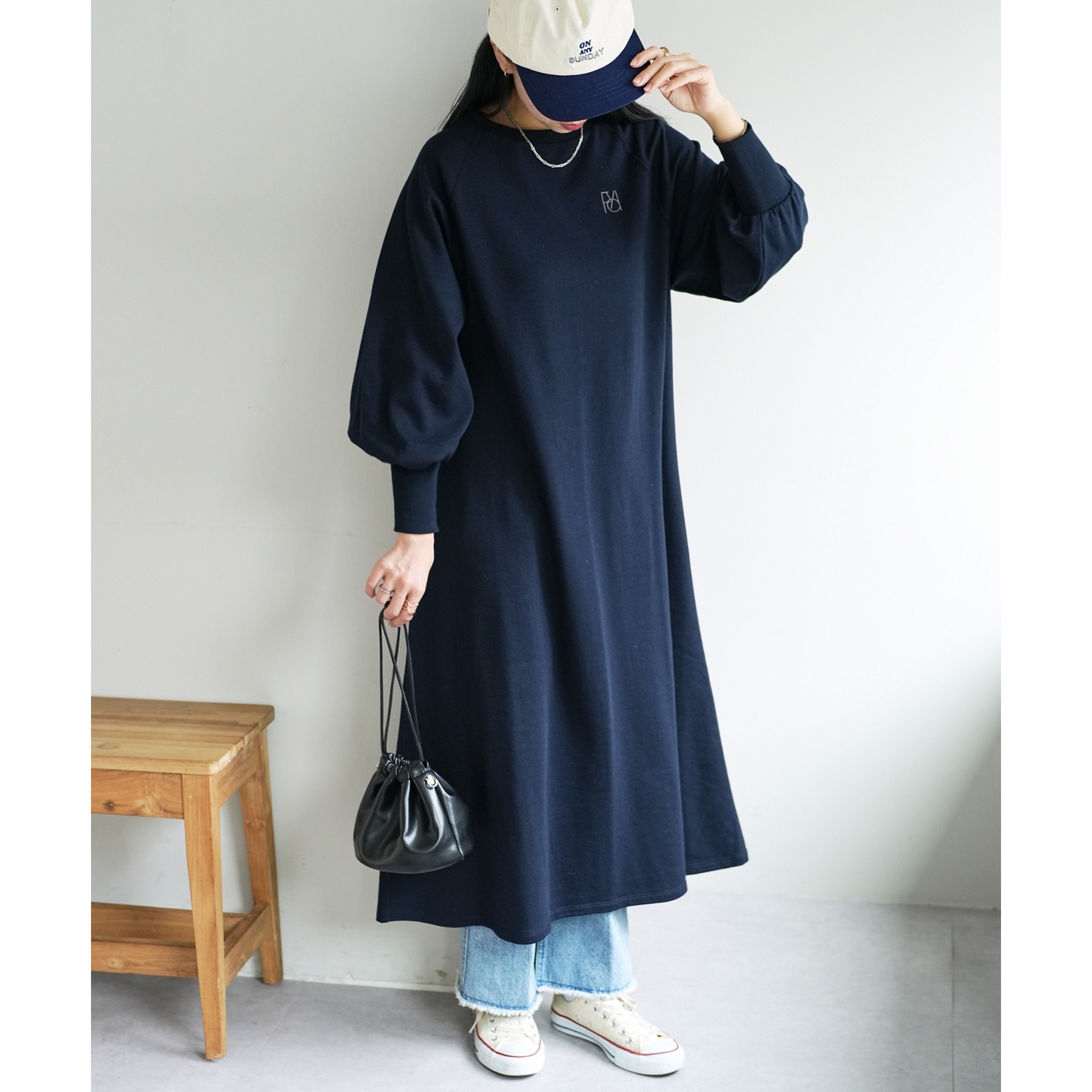 裾に向かって広がりがありながらも女性らしくメリハリがあるAラインのシルエット、肩のラインを拾いにくいラグランスリーブで仕上げたスウェットワンピース。ホワイト、ブラック、グレージュにはワンポイントになるロゴ刺繡を胸元に施した旬のデザイン、アイボリー×ブラックは配色デザインに。薄すぎず厚すぎないロングシーズンに着用ができる柔らかなスウェット生地なので、デイリーのお出かけにはもちろんのこと、おうち時間にも重宝します◎