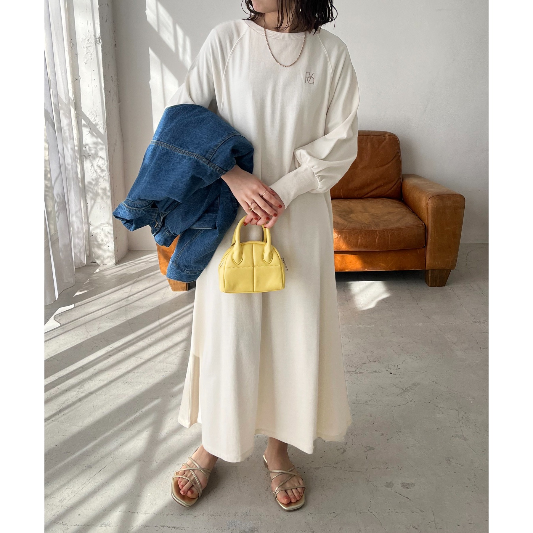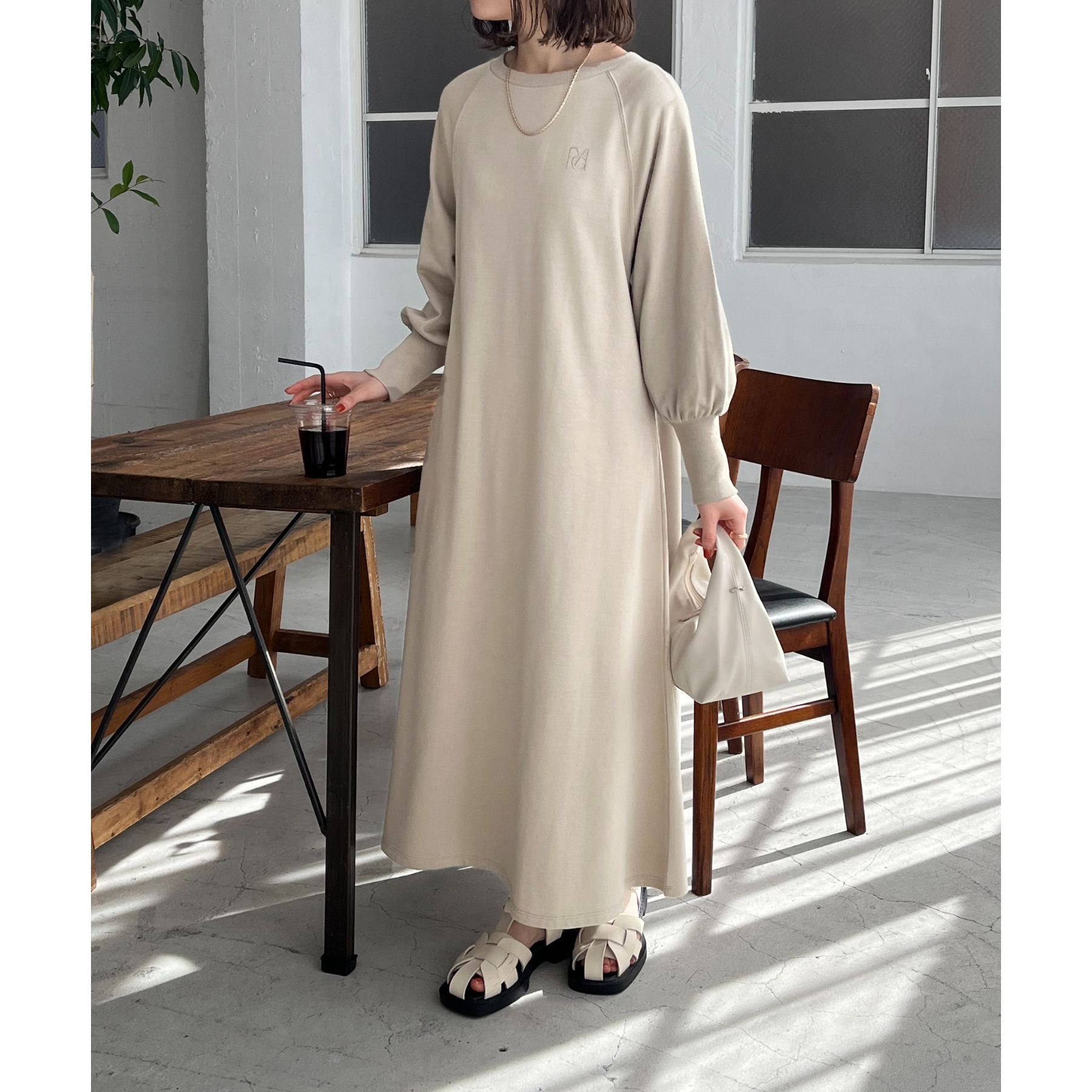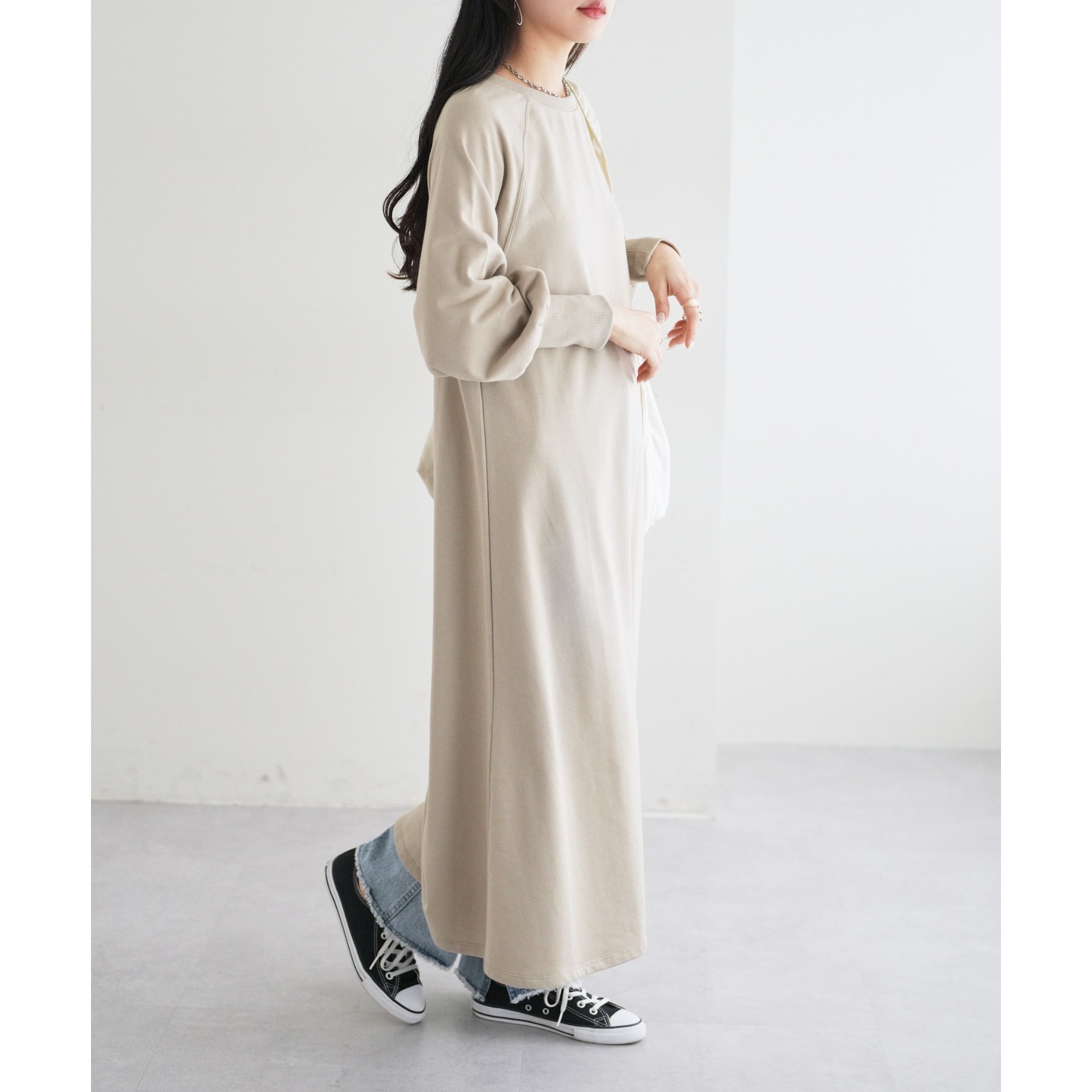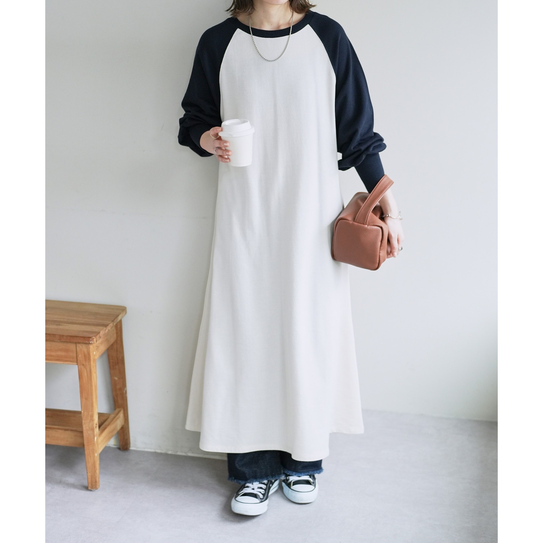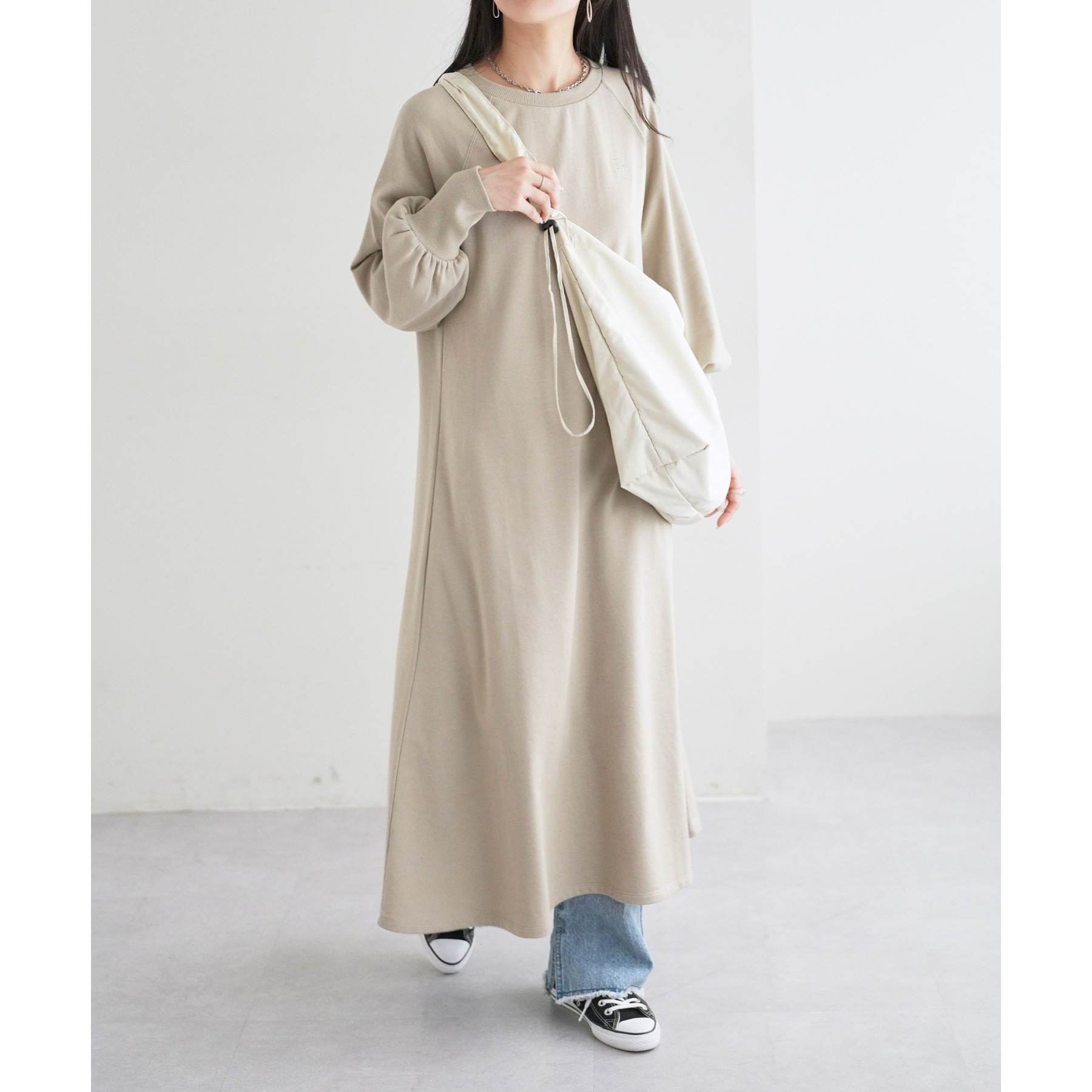 裾に向かって広がりがありながらも女性らしくメリハリがあるAラインのシルエット、肩のラインを拾いにくいラグランスリーブで仕上げたスウェットワンピース。ホワイト、ブラック、グレージュにはワンポイントになるロゴ刺繡を胸元に施した旬のデザイン、アイボリー×ブラックは配色デザインに。薄すぎず厚すぎないロングシーズンに着用ができる柔らかなスウェット生地なので、デイリーのお出かけにはもちろんのこと、おうち時間にも重宝します◎