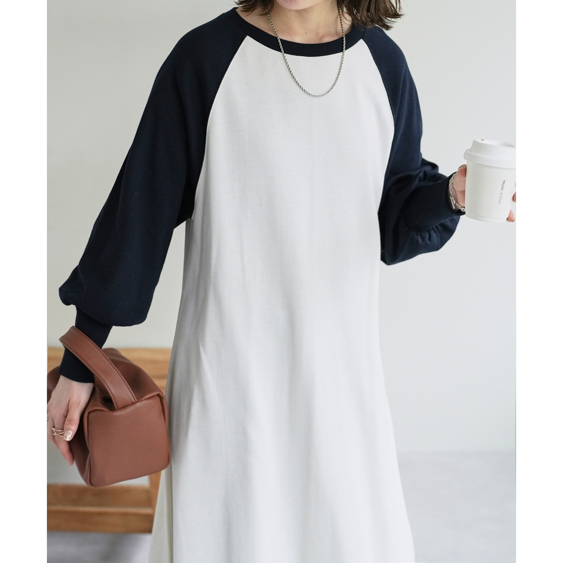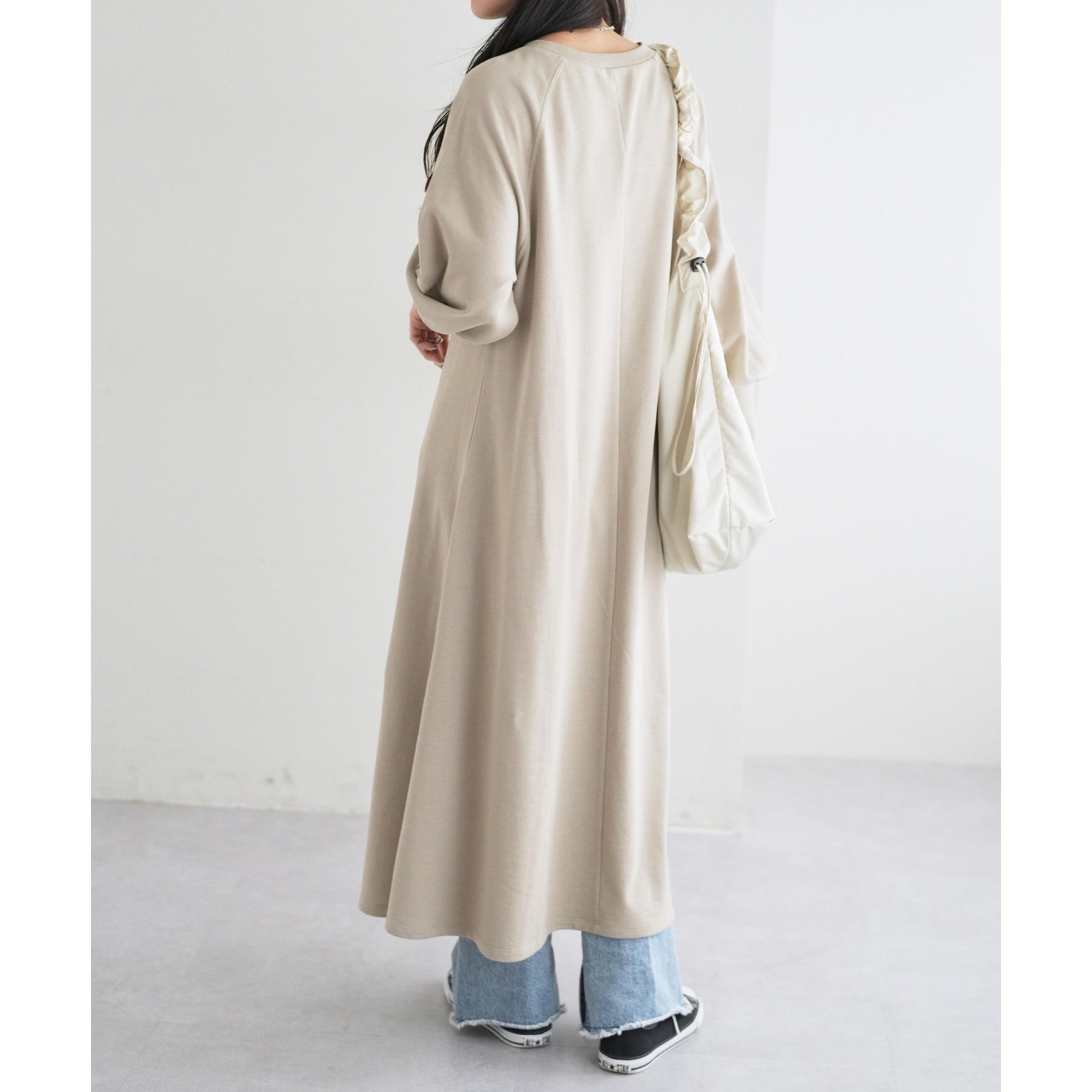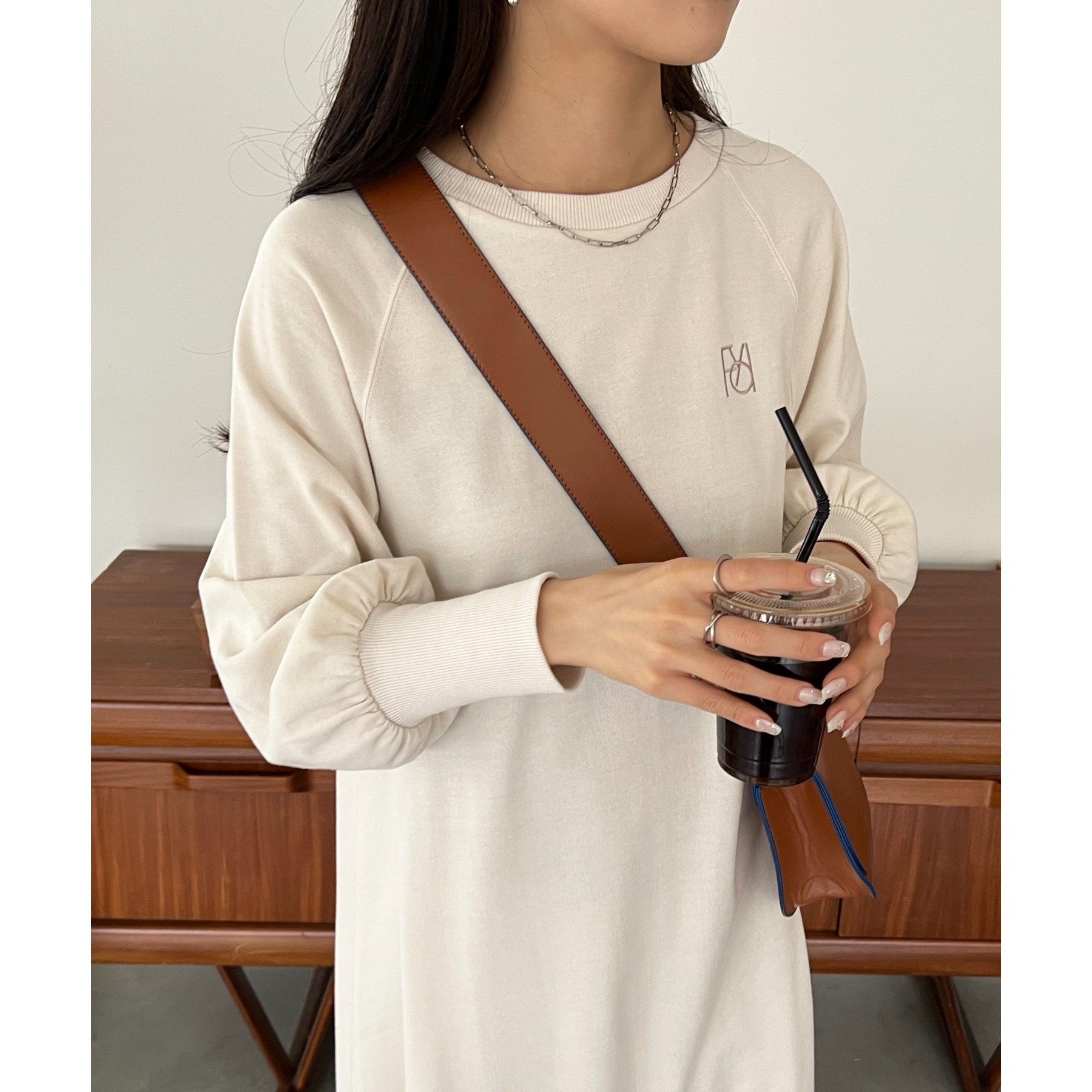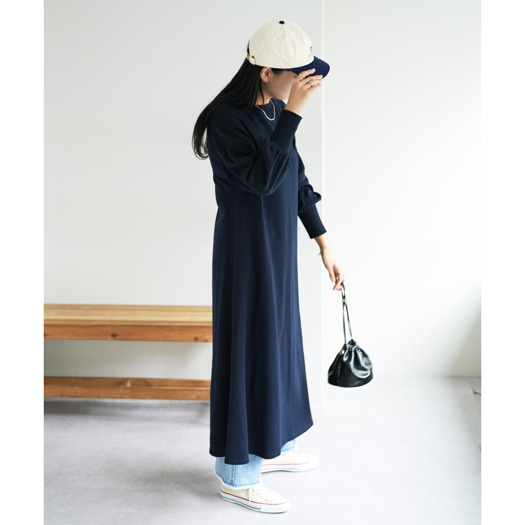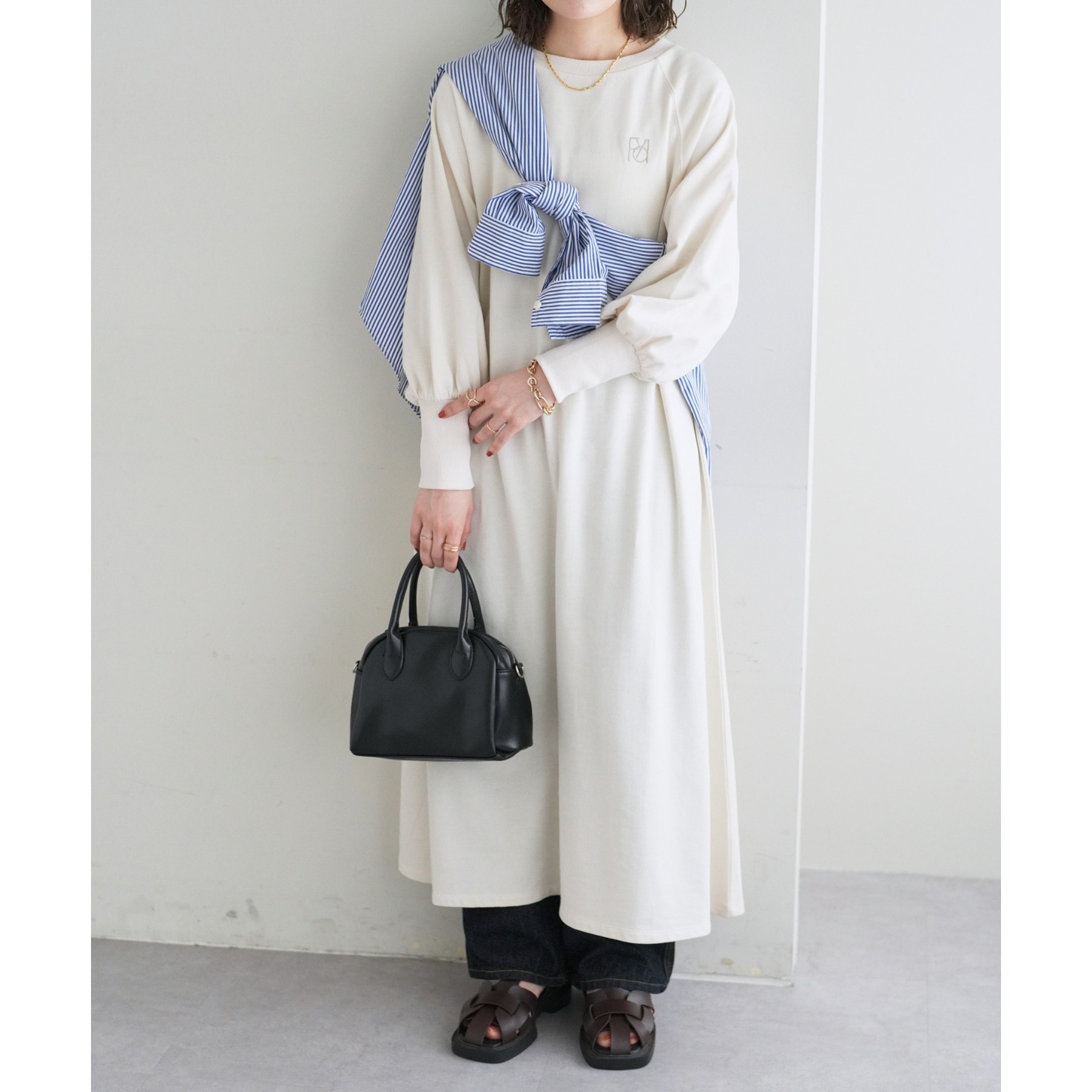 裾に向かって広がりがありながらも女性らしくメリハリがあるAラインのシルエット、肩のラインを拾いにくいラグランスリーブで仕上げたスウェットワンピース。ホワイト、ブラック、グレージュにはワンポイントになるロゴ刺繡を胸元に施した旬のデザイン、アイボリー×ブラックは配色デザインに。薄すぎず厚すぎないロングシーズンに着用ができる柔らかなスウェット生地なので、デイリーのお出かけにはもちろんのこと、おうち時間にも重宝します◎
