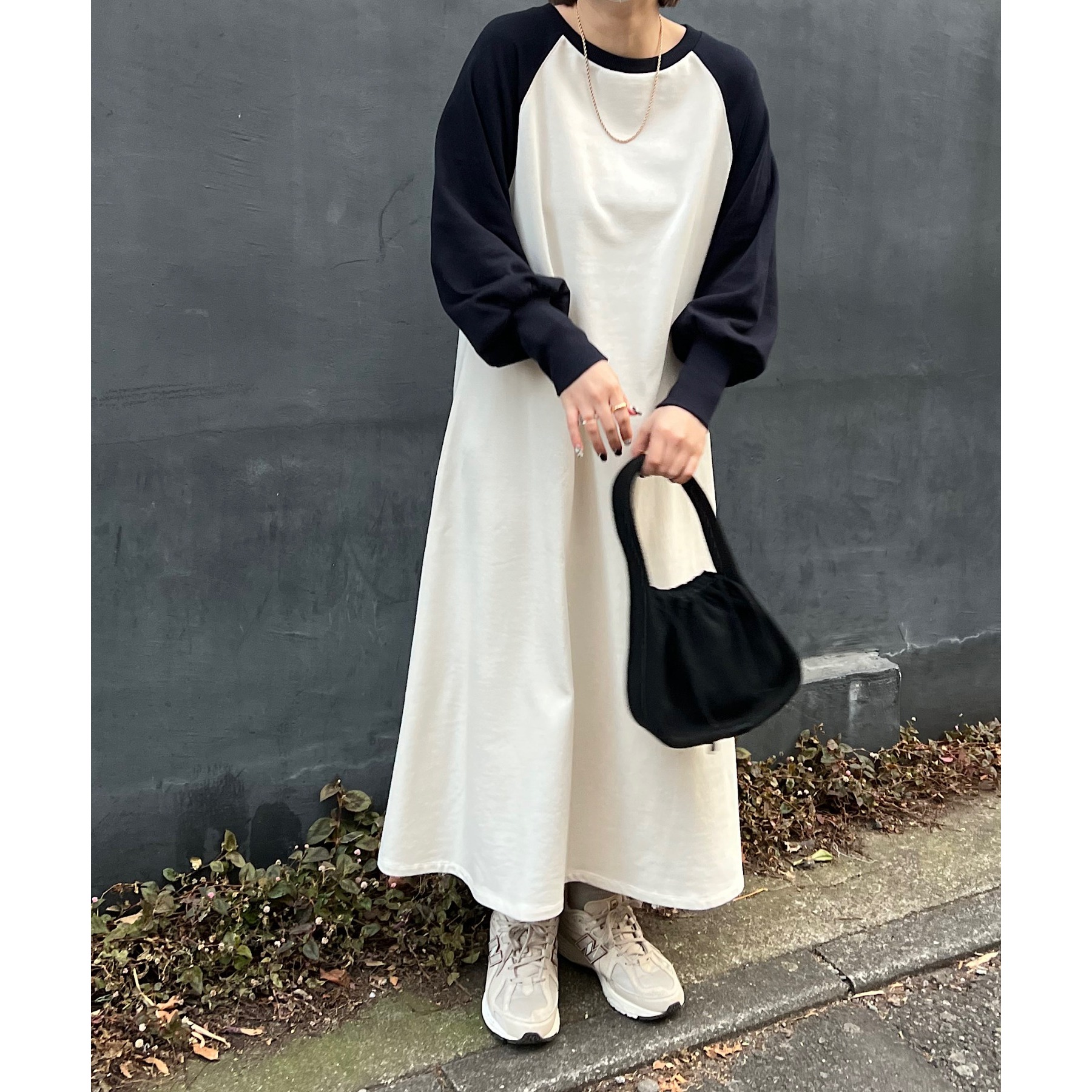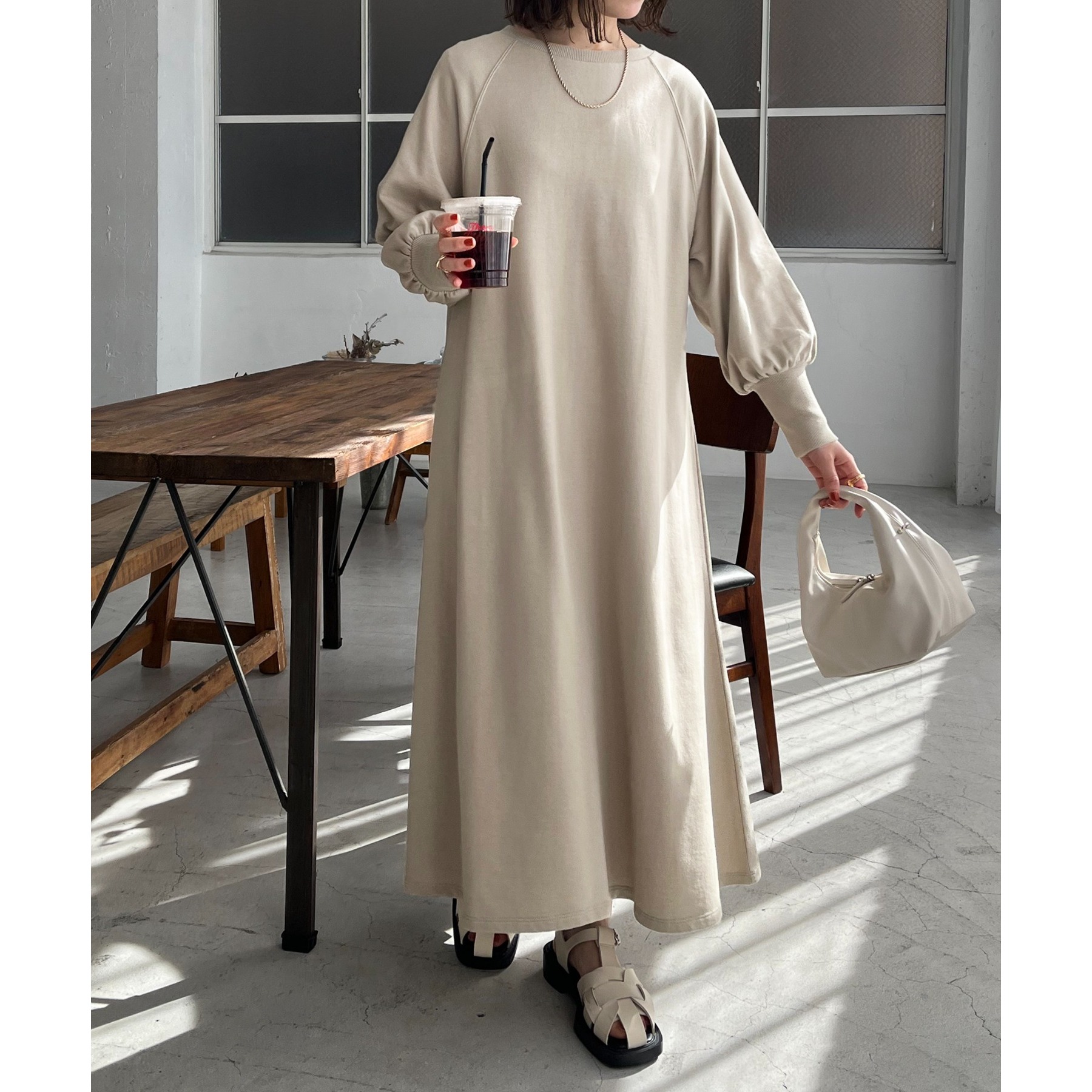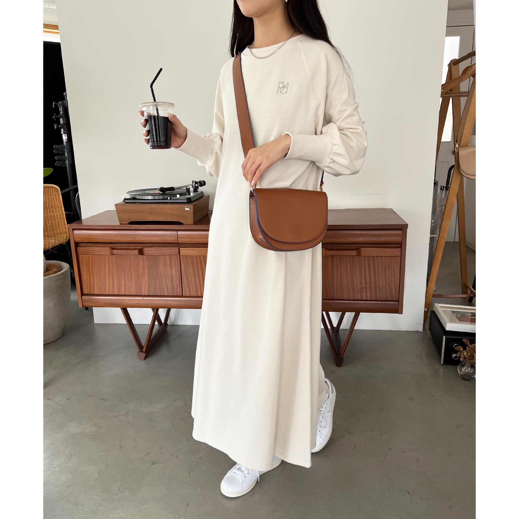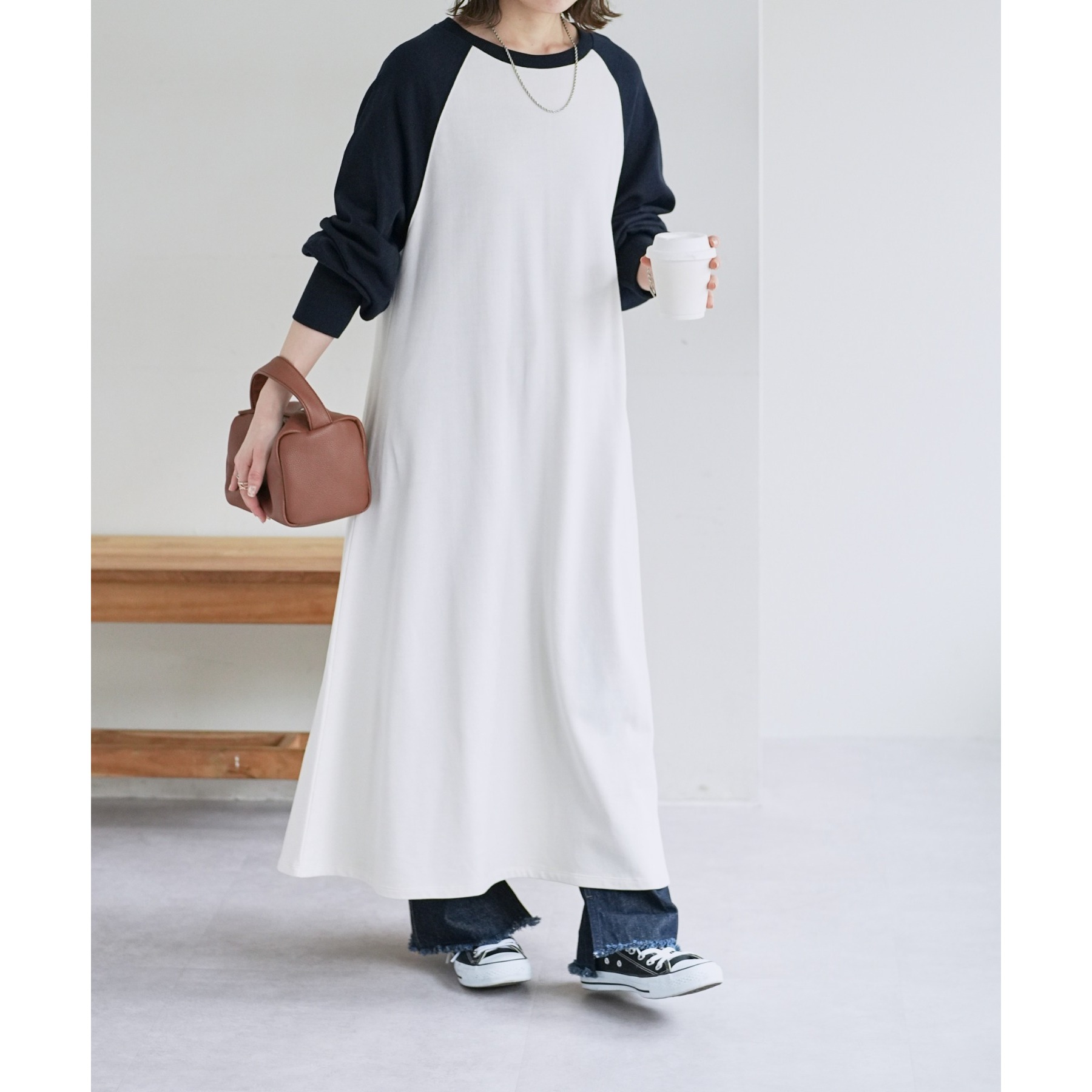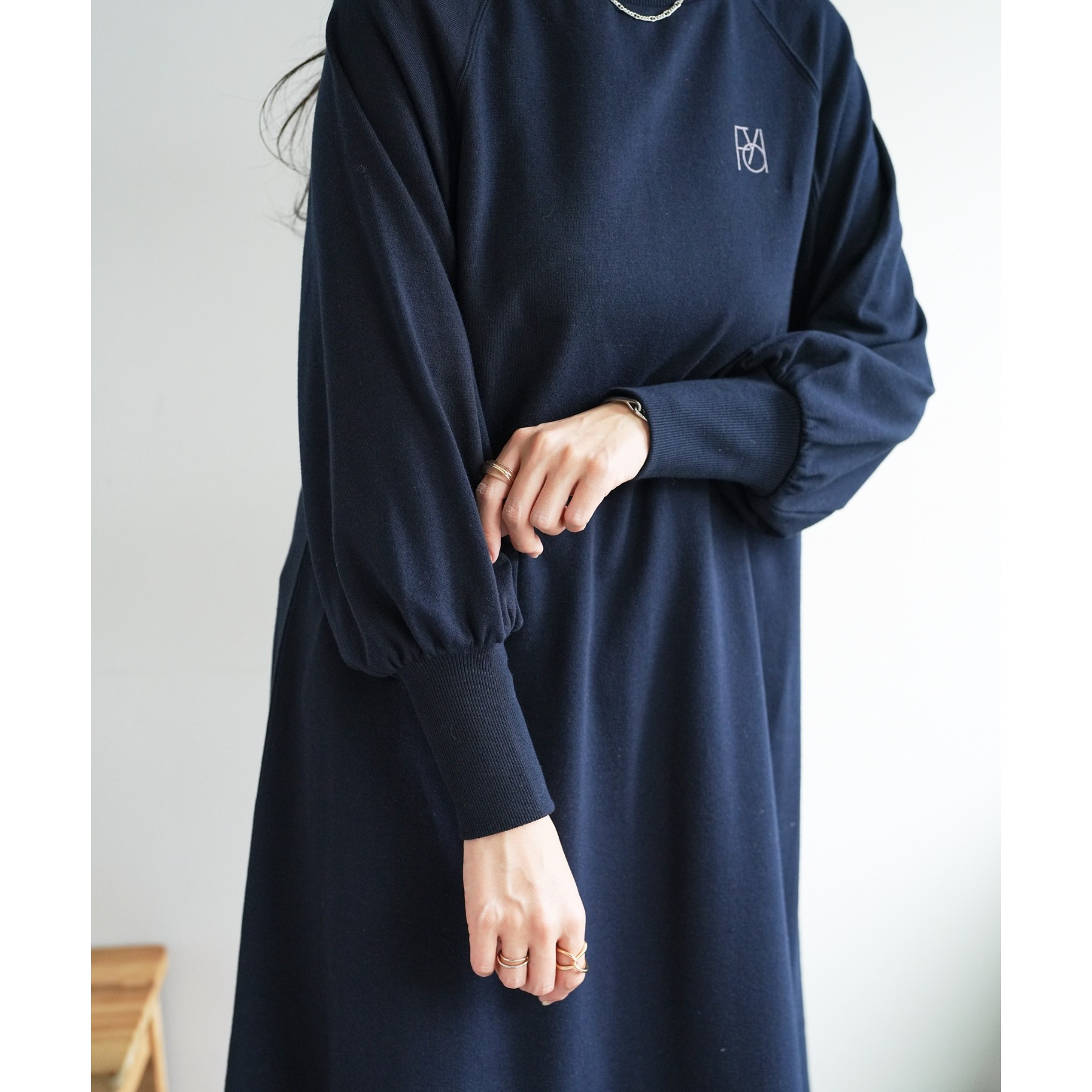 裾に向かって広がりがありながらも女性らしくメリハリがあるAラインのシルエット、肩のラインを拾いにくいラグランスリーブで仕上げたスウェットワンピース。ホワイト、ブラック、グレージュにはワンポイントになるロゴ刺繡を胸元に施した旬のデザイン、アイボリー×ブラックは配色デザインに。薄すぎず厚すぎないロングシーズンに着用ができる柔らかなスウェット生地なので、デイリーのお出かけにはもちろんのこと、おうち時間にも重宝します◎