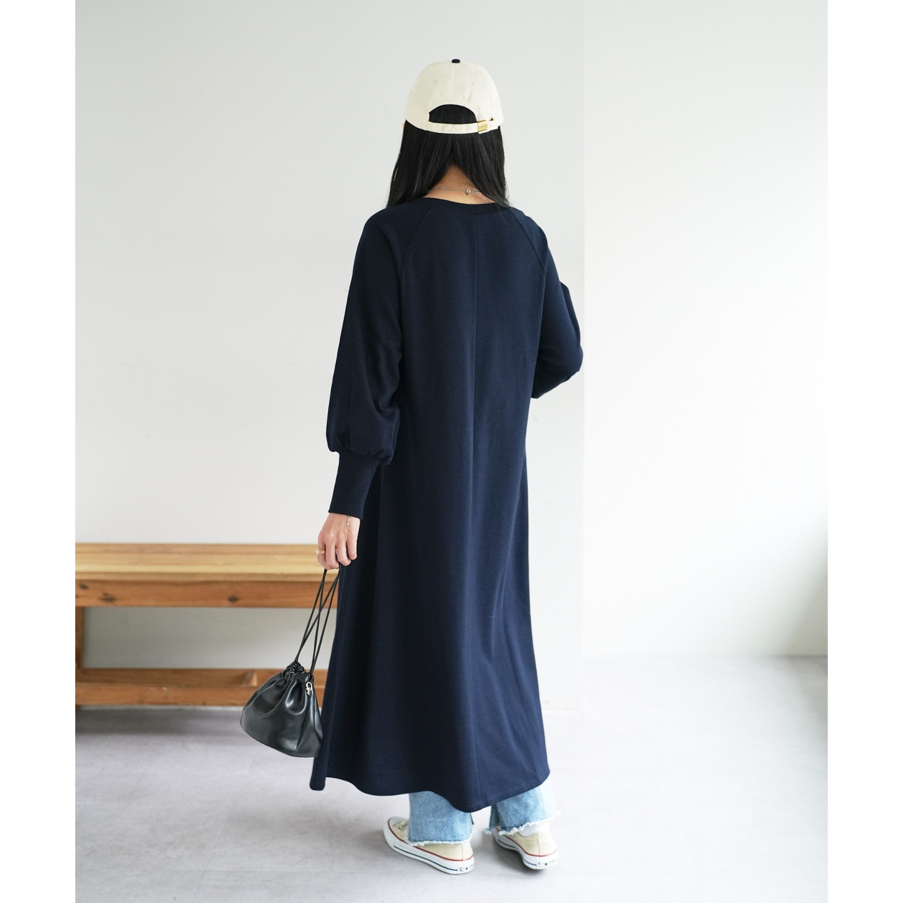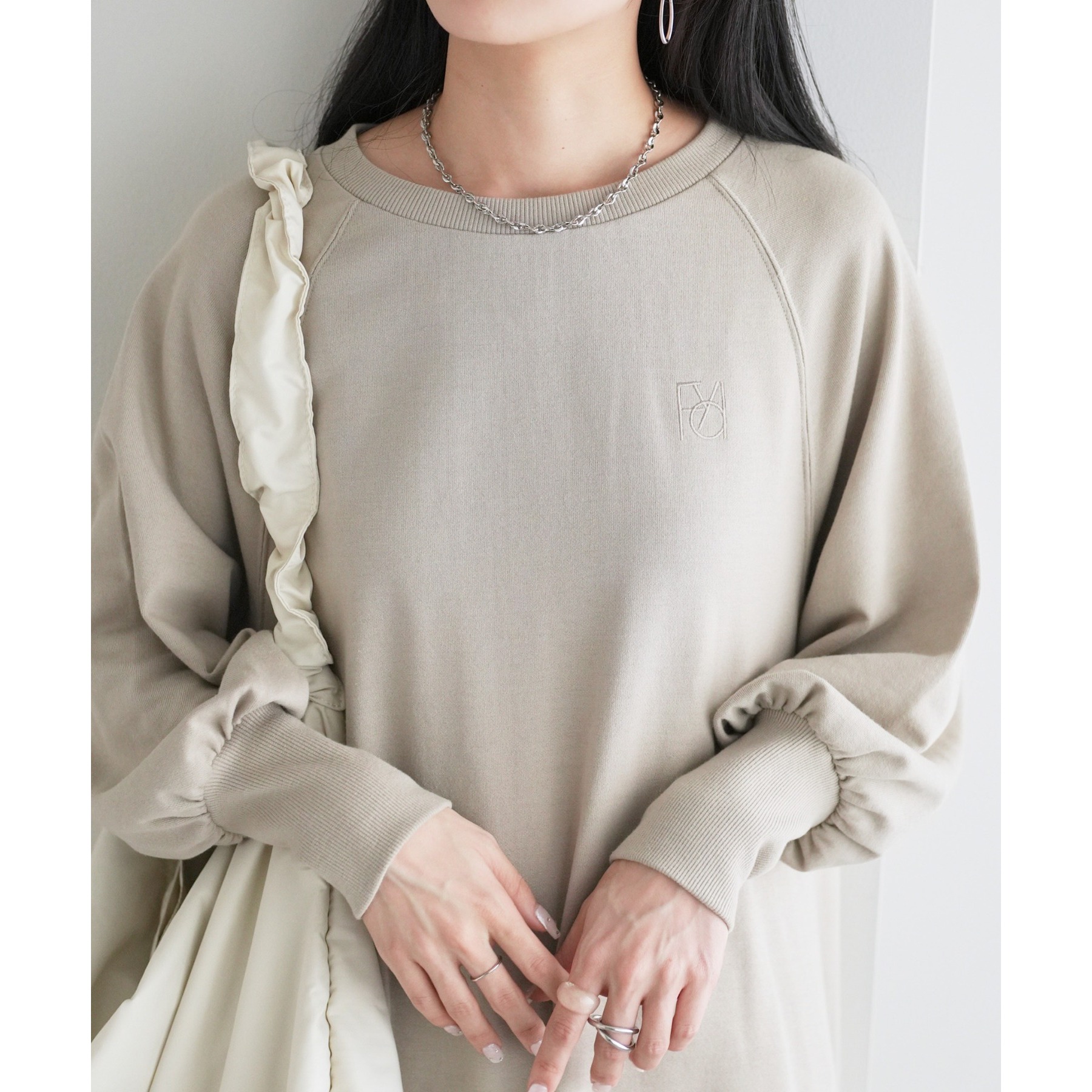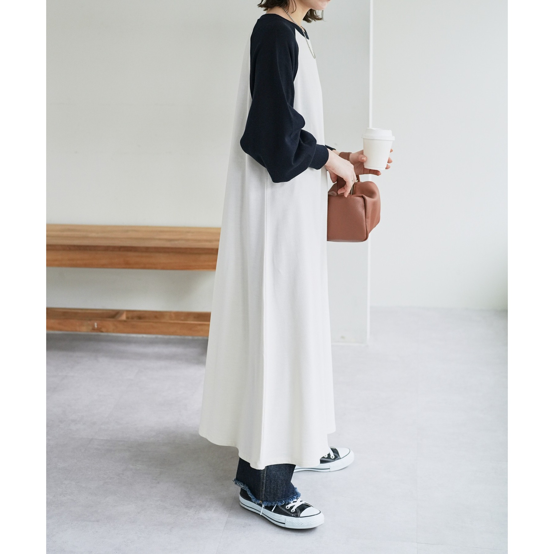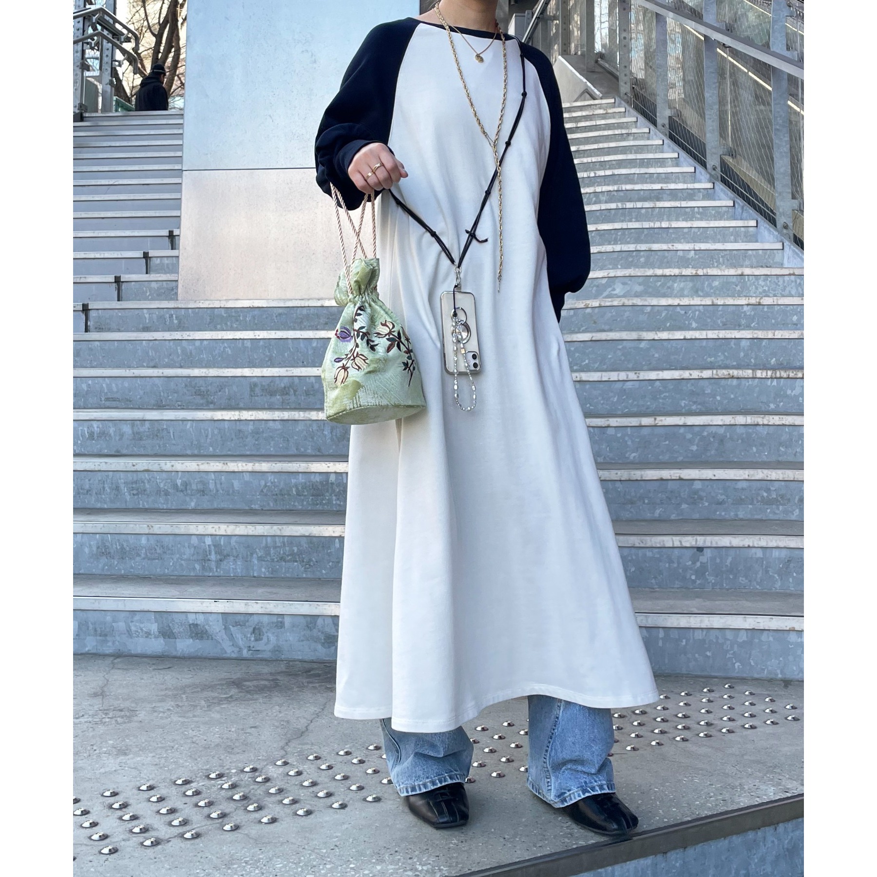 裾に向かって広がりがありながらも女性らしくメリハリがあるAラインのシルエット、肩のラインを拾いにくいラグランスリーブで仕上げたスウェットワンピース。ホワイト、ブラック、グレージュにはワンポイントになるロゴ刺繡を胸元に施した旬のデザイン、アイボリー×ブラックは配色デザインに。薄すぎず厚すぎないロングシーズンに着用ができる柔らかなスウェット生地なので、デイリーのお出かけにはもちろんのこと、おうち時間にも重宝します◎