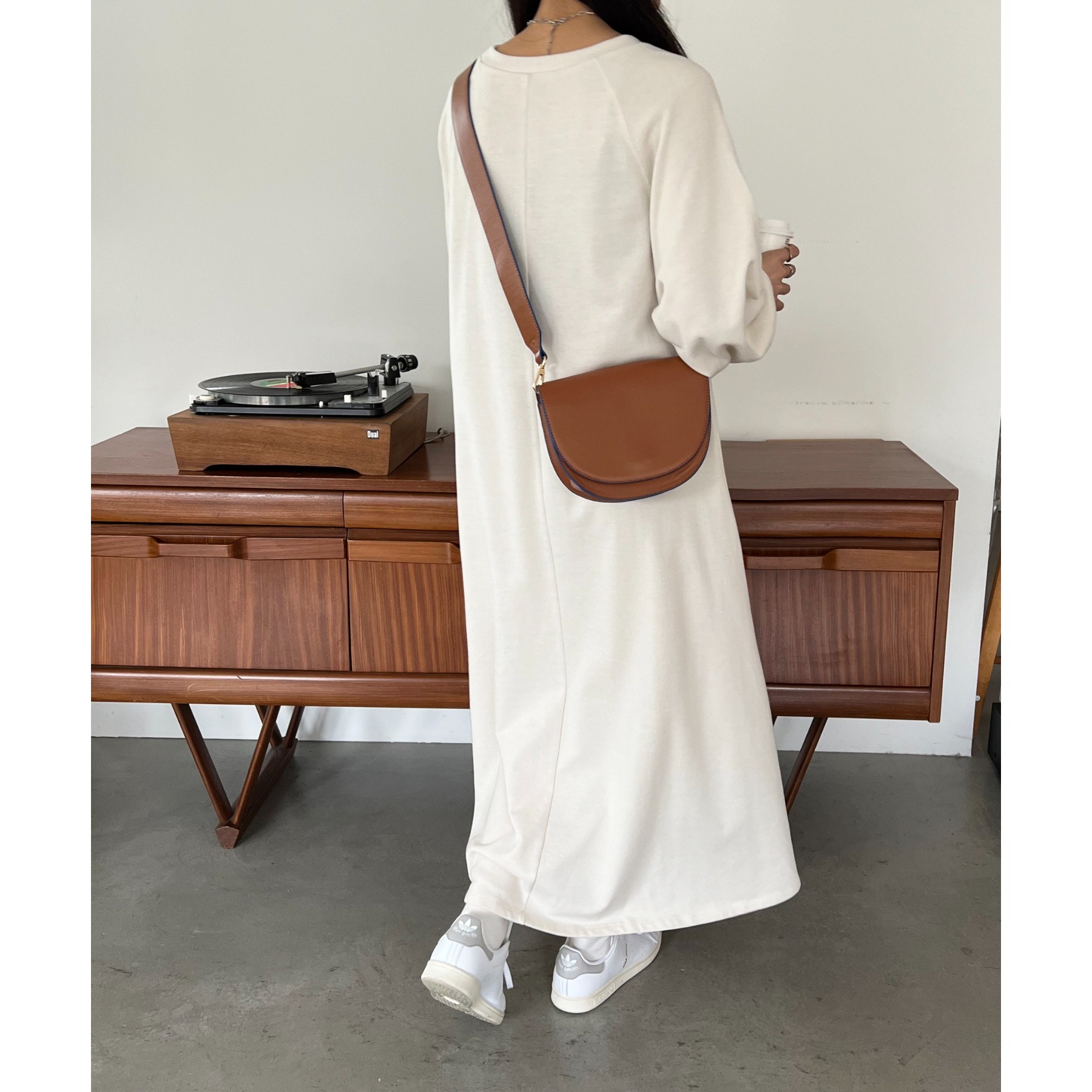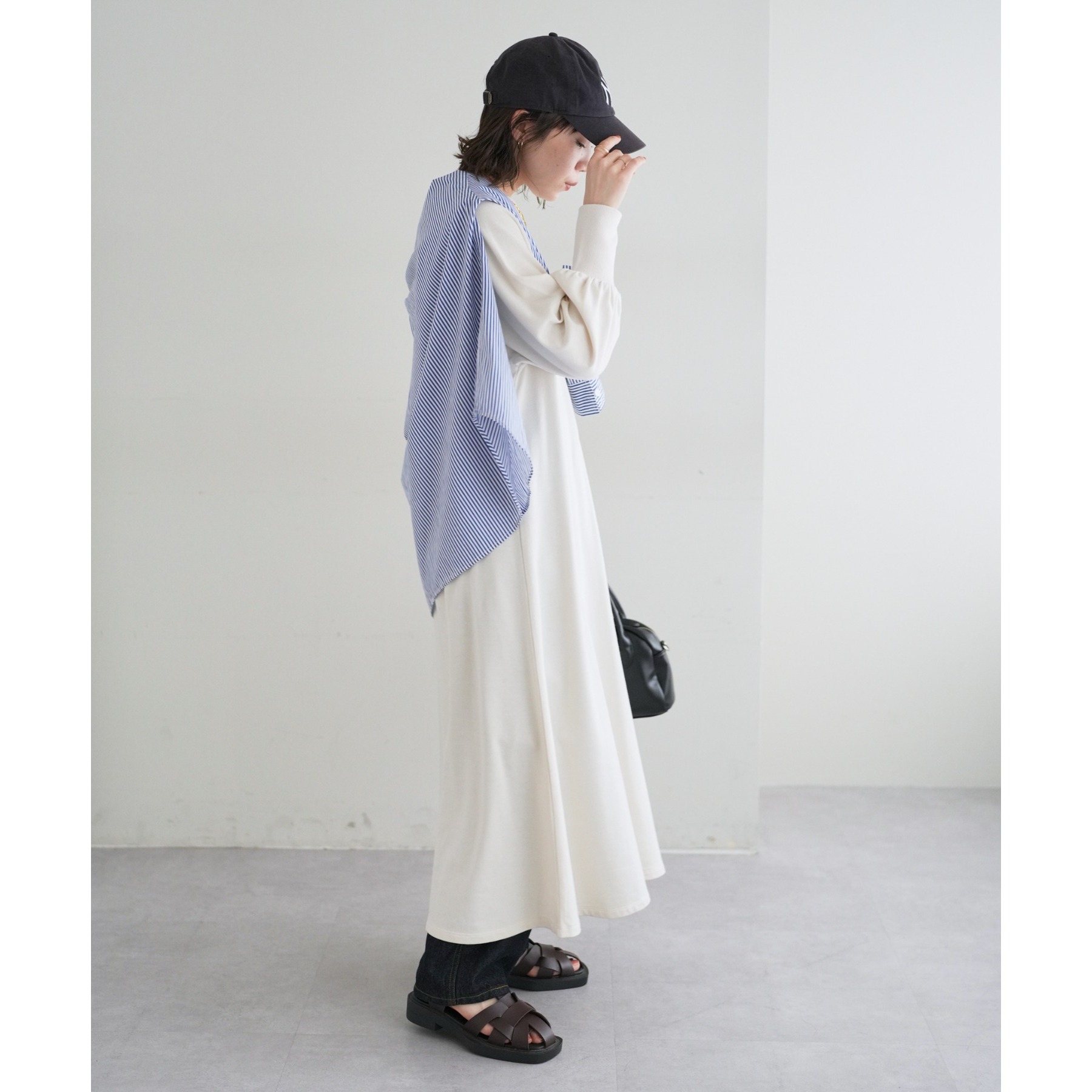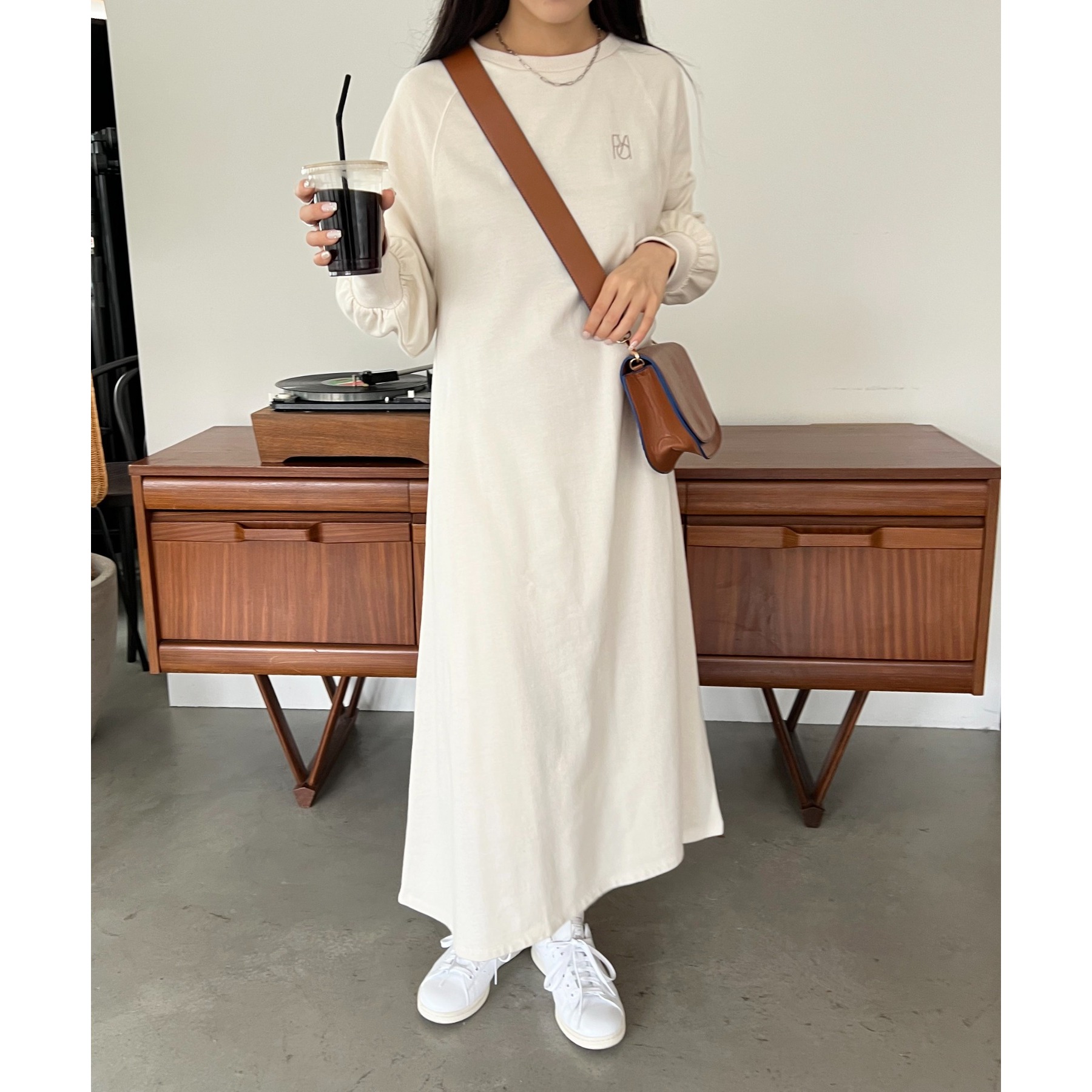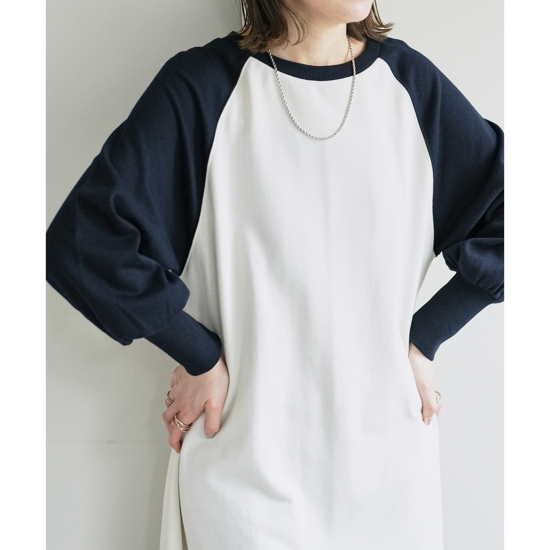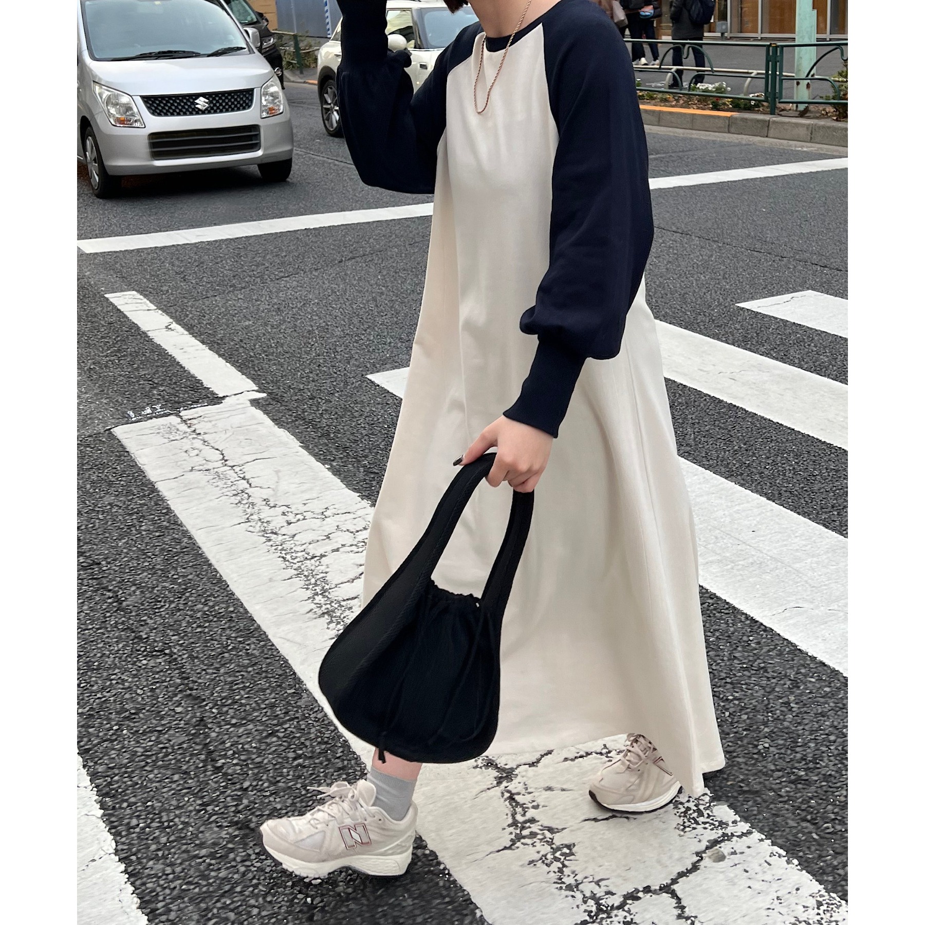 裾に向かって広がりがありながらも女性らしくメリハリがあるAラインのシルエット、肩のラインを拾いにくいラグランスリーブで仕上げたスウェットワンピース。ホワイト、ブラック、グレージュにはワンポイントになるロゴ刺繡を胸元に施した旬のデザイン、アイボリー×ブラックは配色デザインに。薄すぎず厚すぎないロングシーズンに着用ができる柔らかなスウェット生地なので、デイリーのお出かけにはもちろんのこと、おうち時間にも重宝します◎