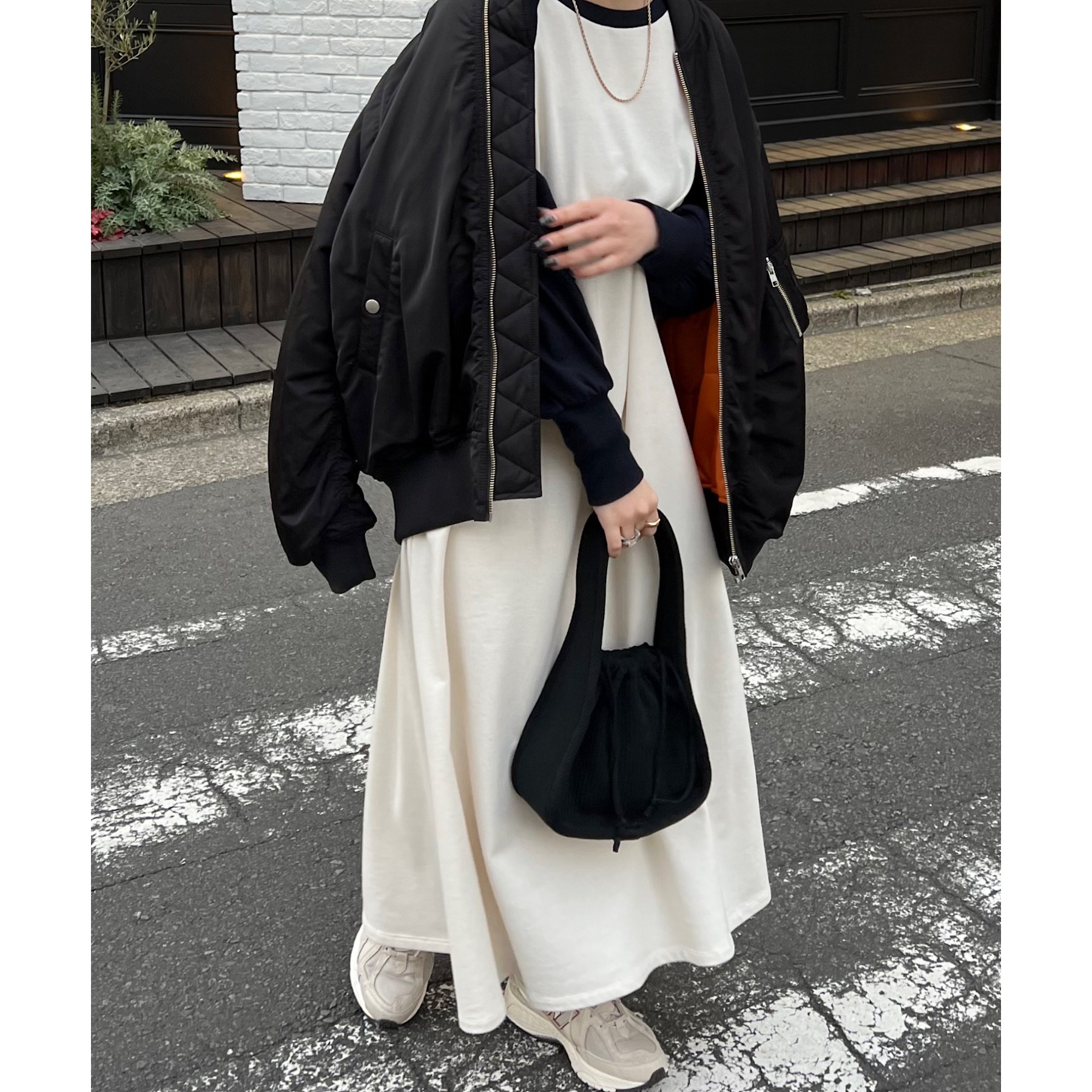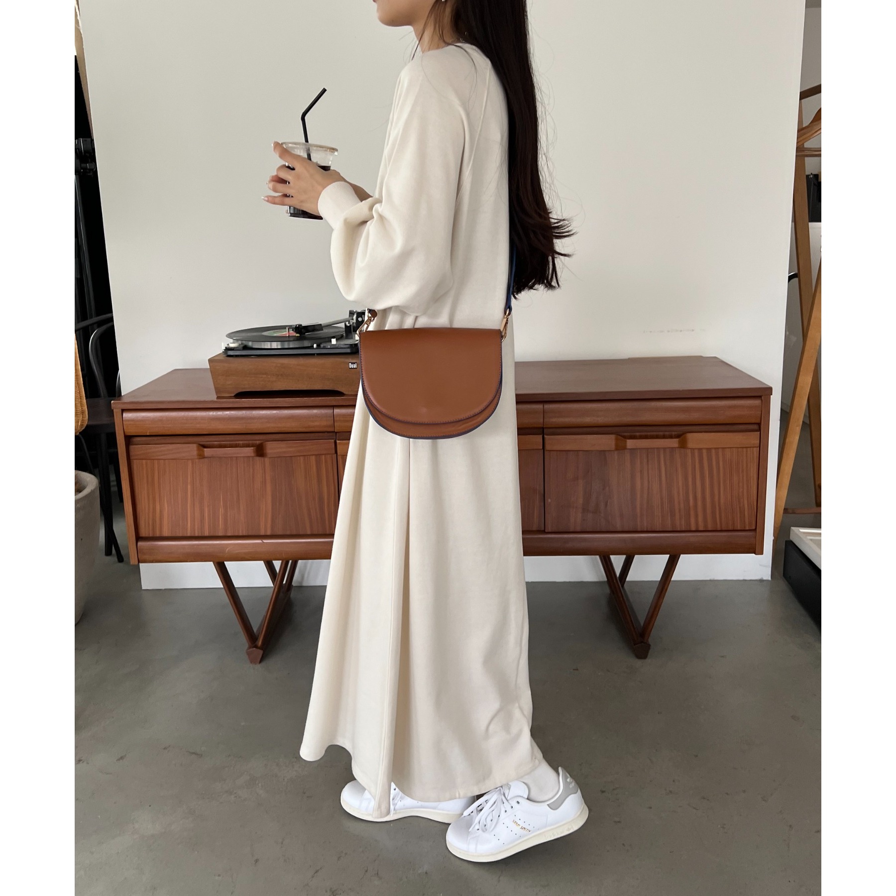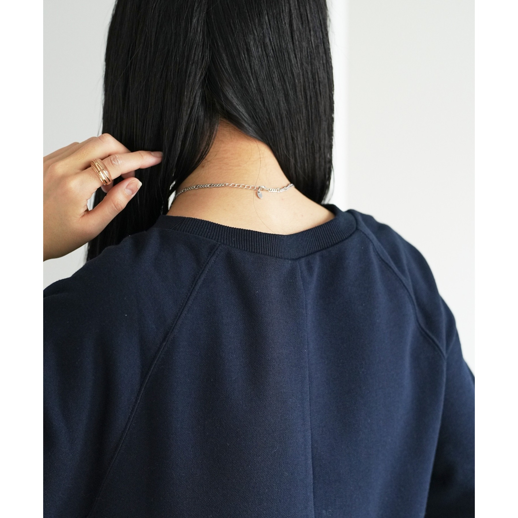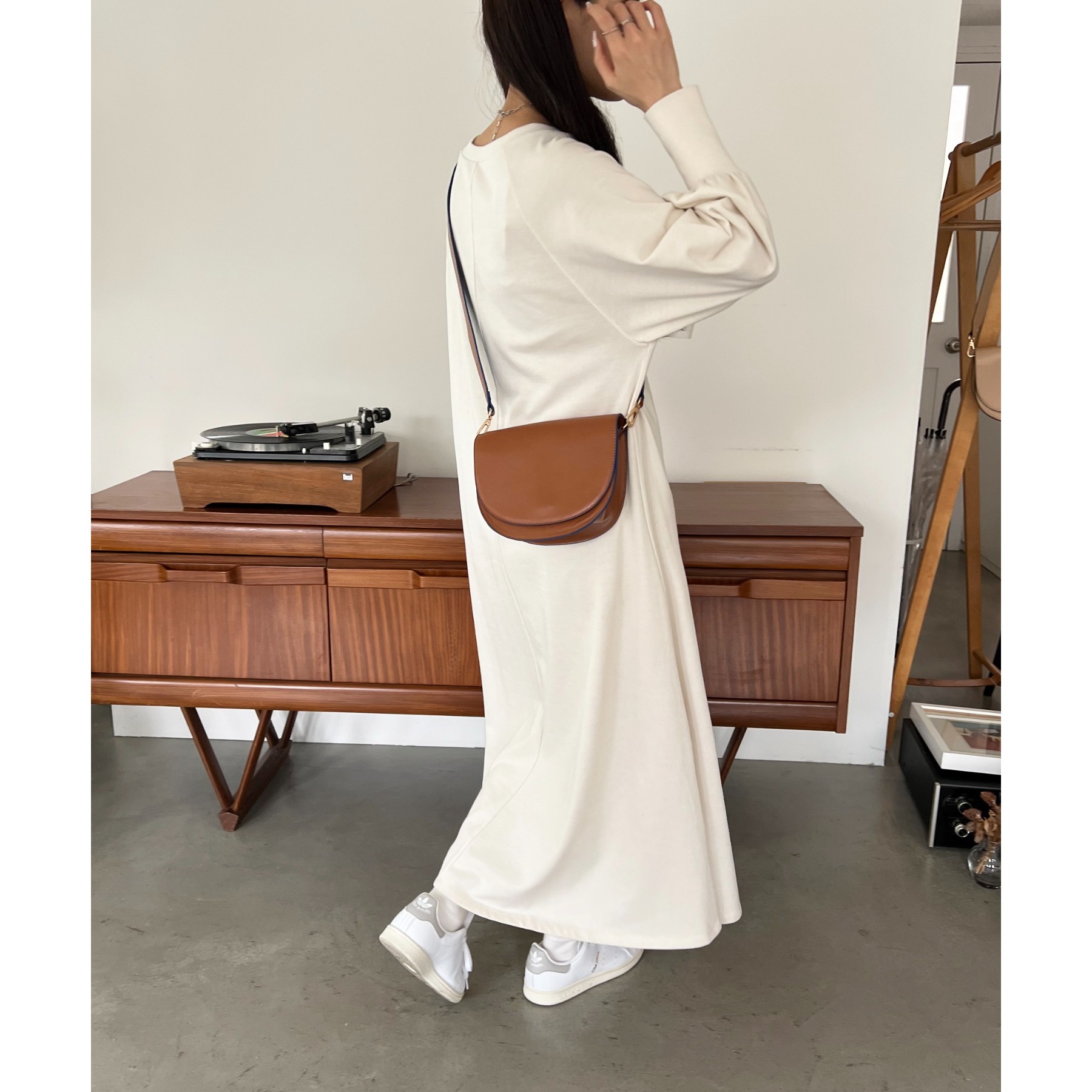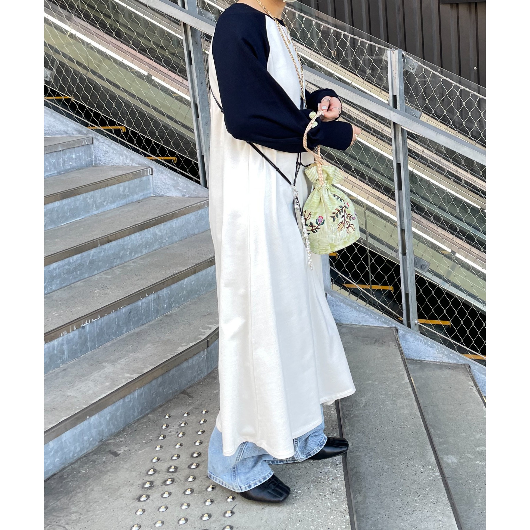 裾に向かって広がりがありながらも女性らしくメリハリがあるAラインのシルエット、肩のラインを拾いにくいラグランスリーブで仕上げたスウェットワンピース。ホワイト、ブラック、グレージュにはワンポイントになるロゴ刺繡を胸元に施した旬のデザイン、アイボリー×ブラックは配色デザインに。薄すぎず厚すぎないロングシーズンに着用ができる柔らかなスウェット生地なので、デイリーのお出かけにはもちろんのこと、おうち時間にも重宝します◎