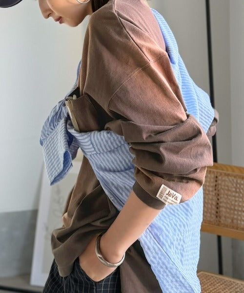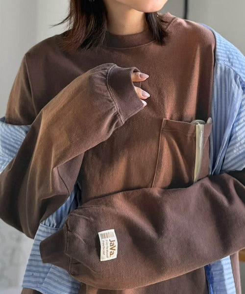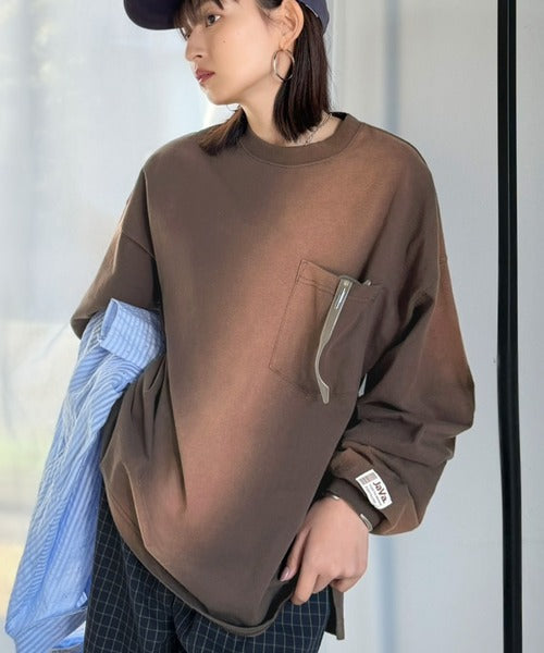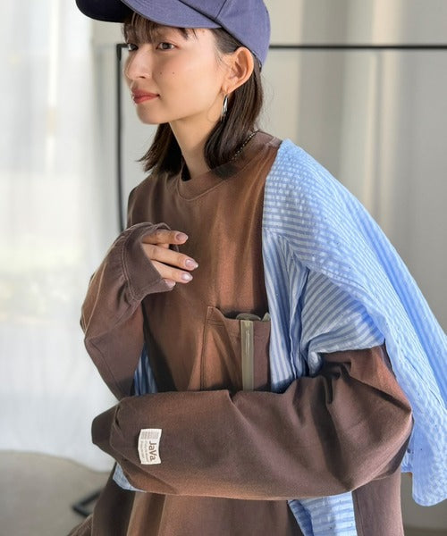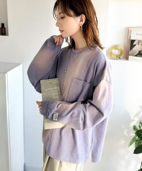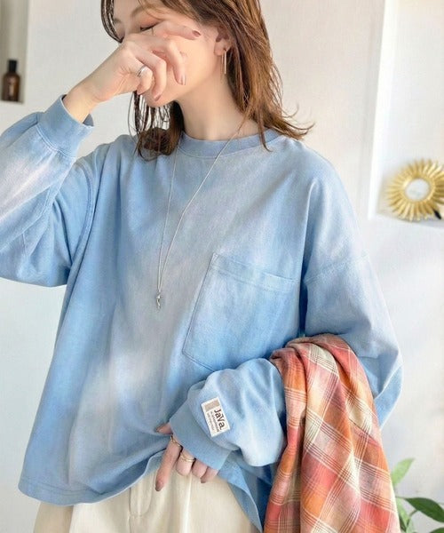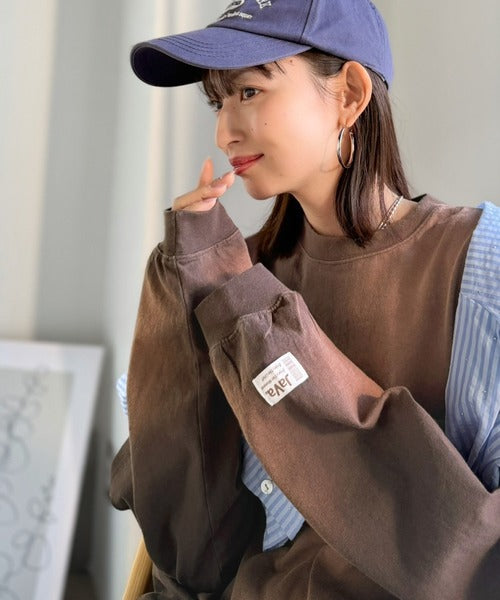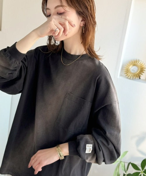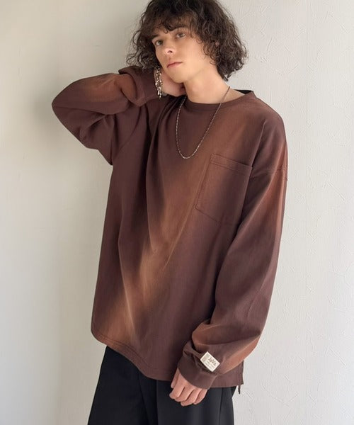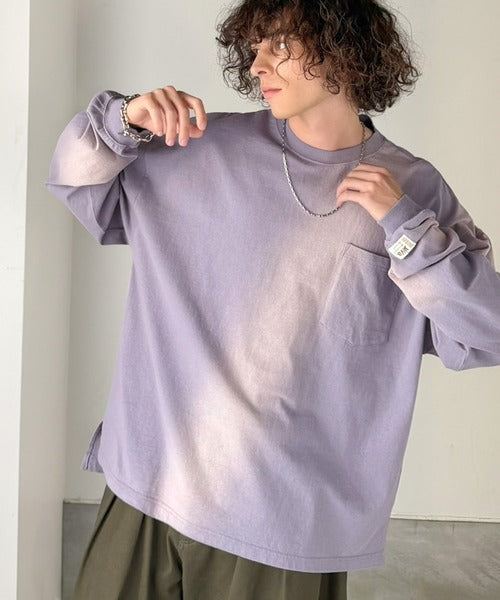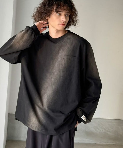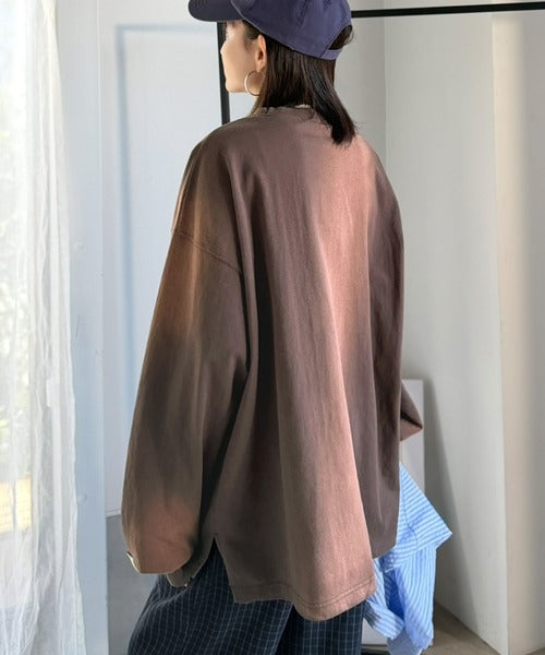 《JaVaジャバコラボ》垢抜け!大人のストリートstyleを作る。綿100%スプレーダイ加工オーバーサイズTシャツ(長袖) jv1020358