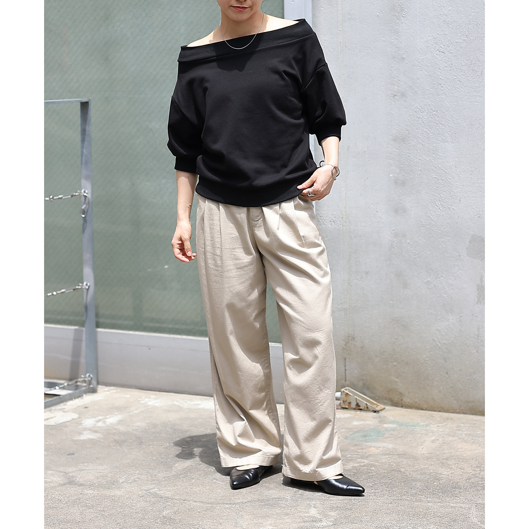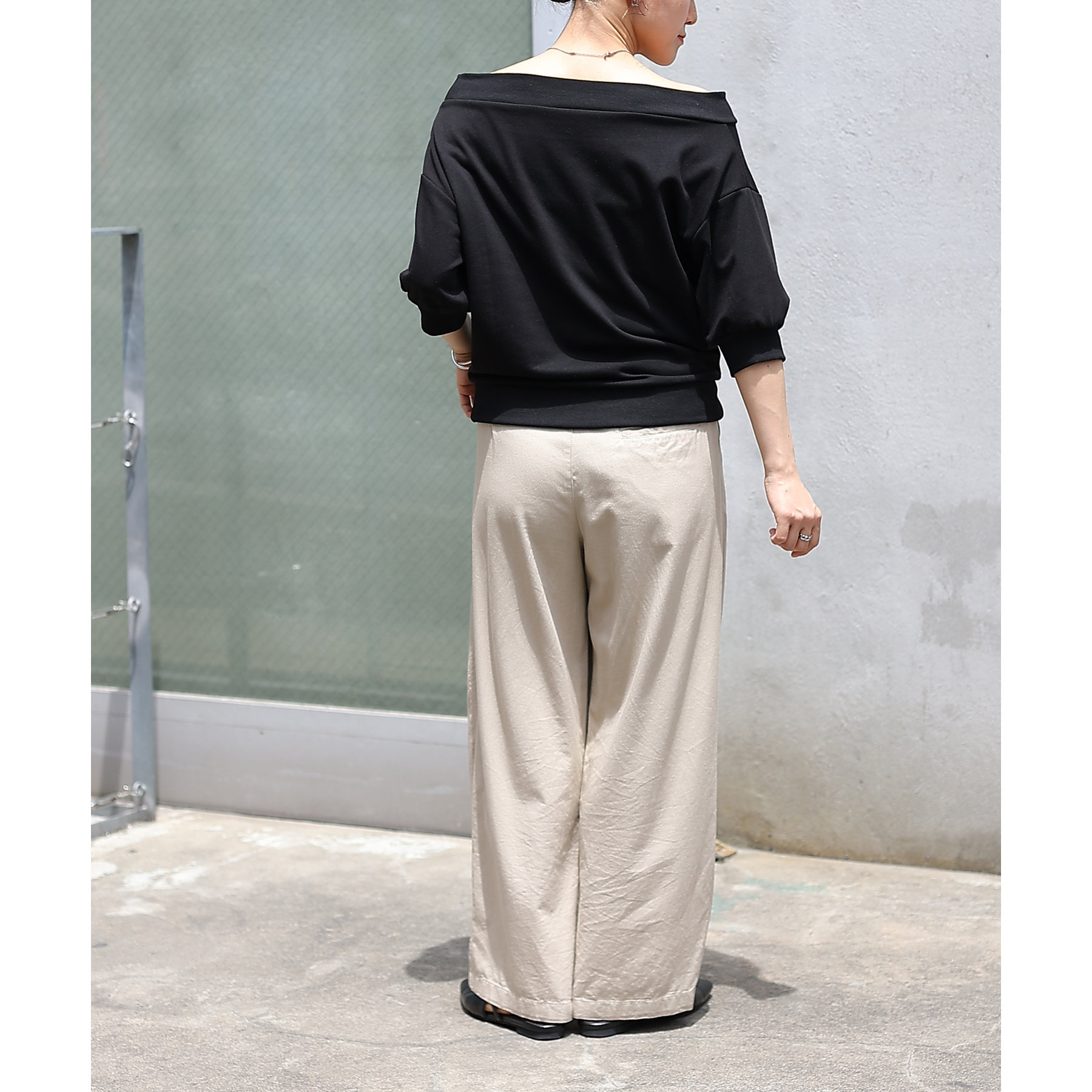 頑張りすぎない、大人の余裕を演出するオフショルダートップス。