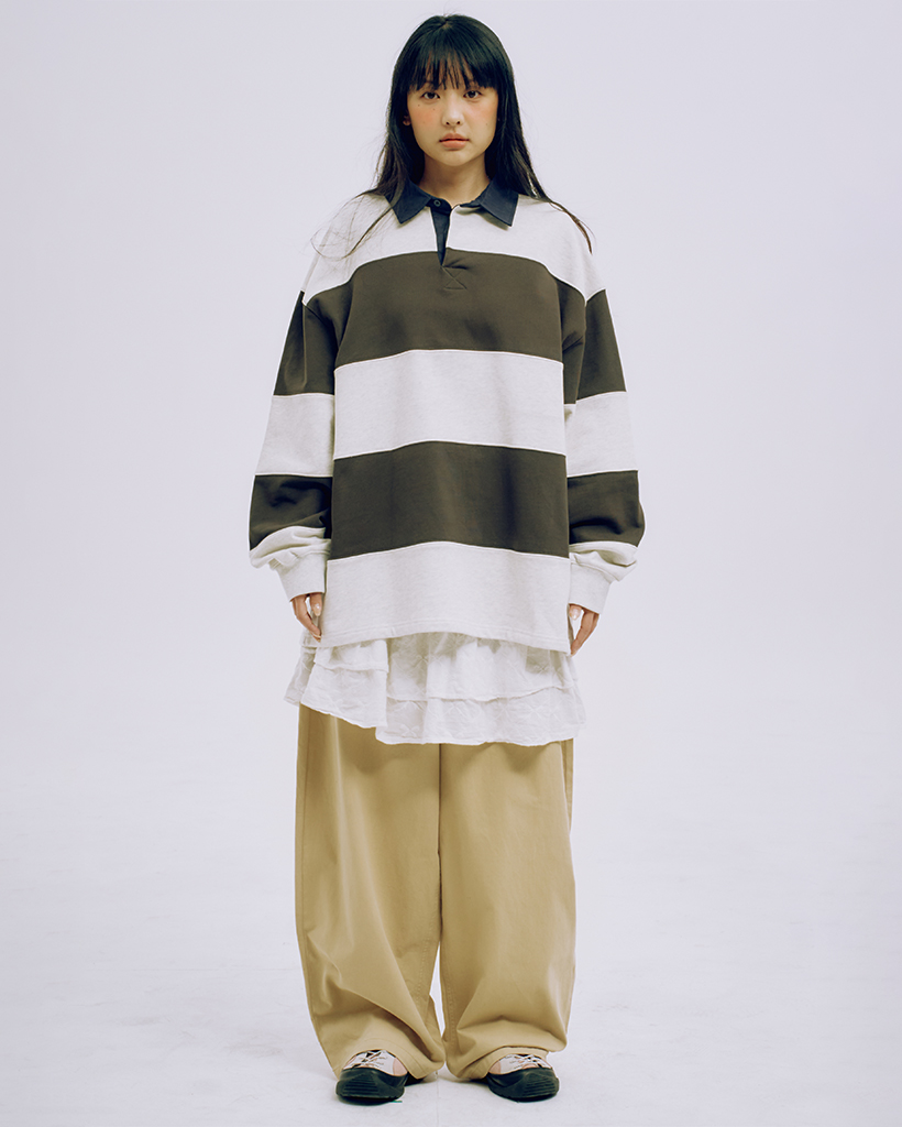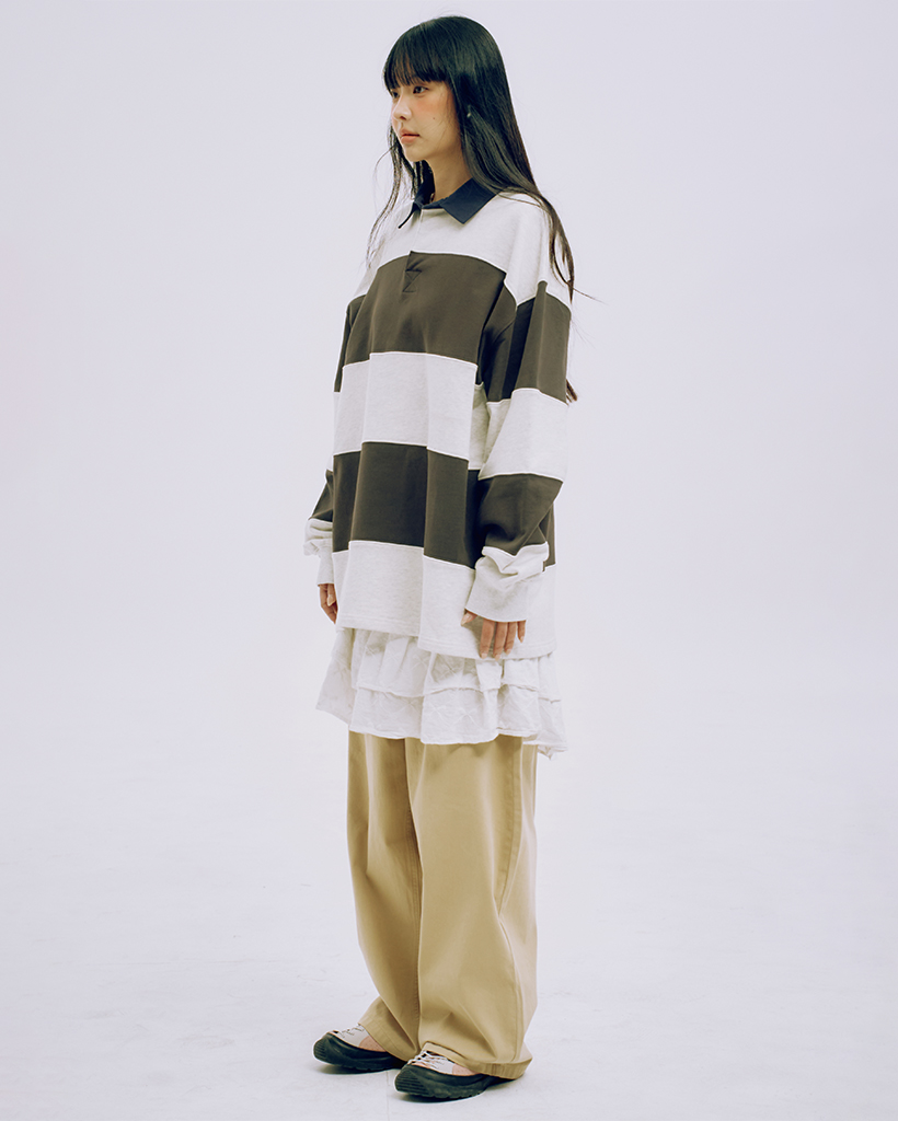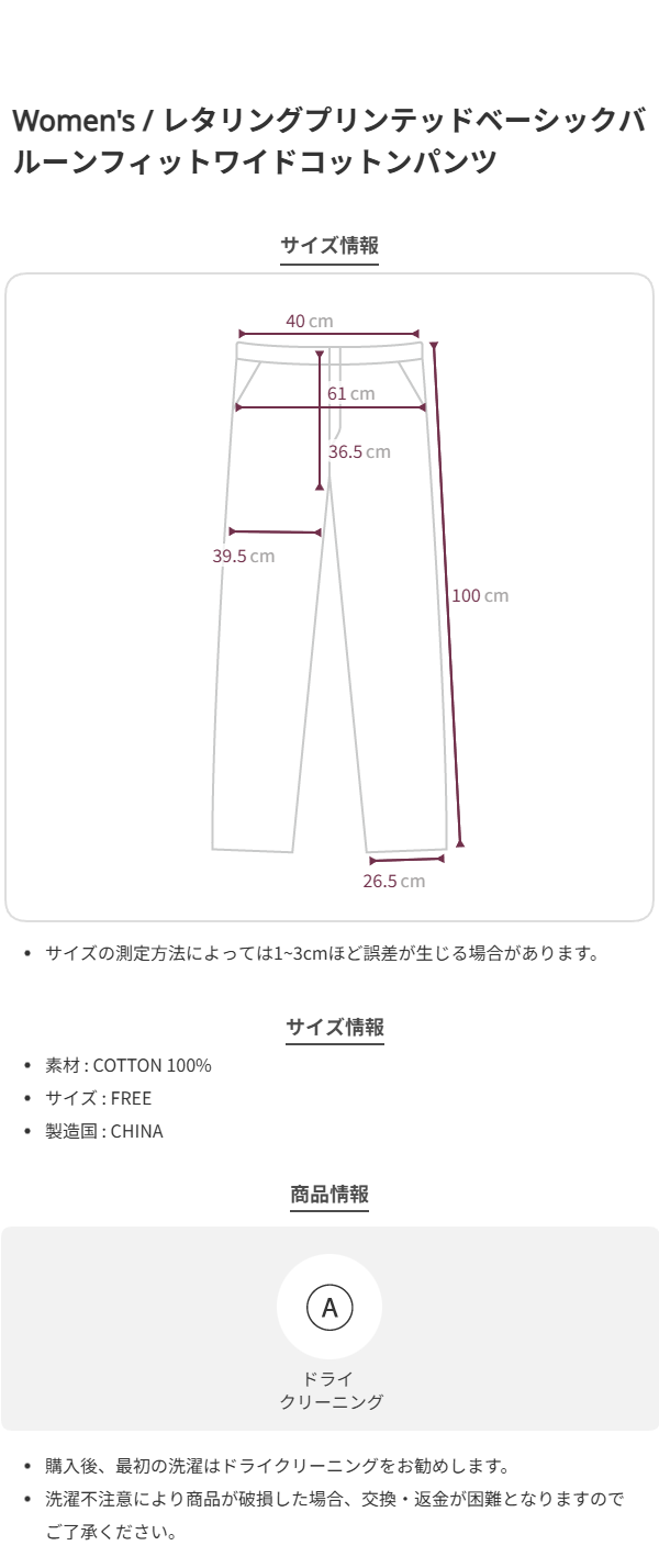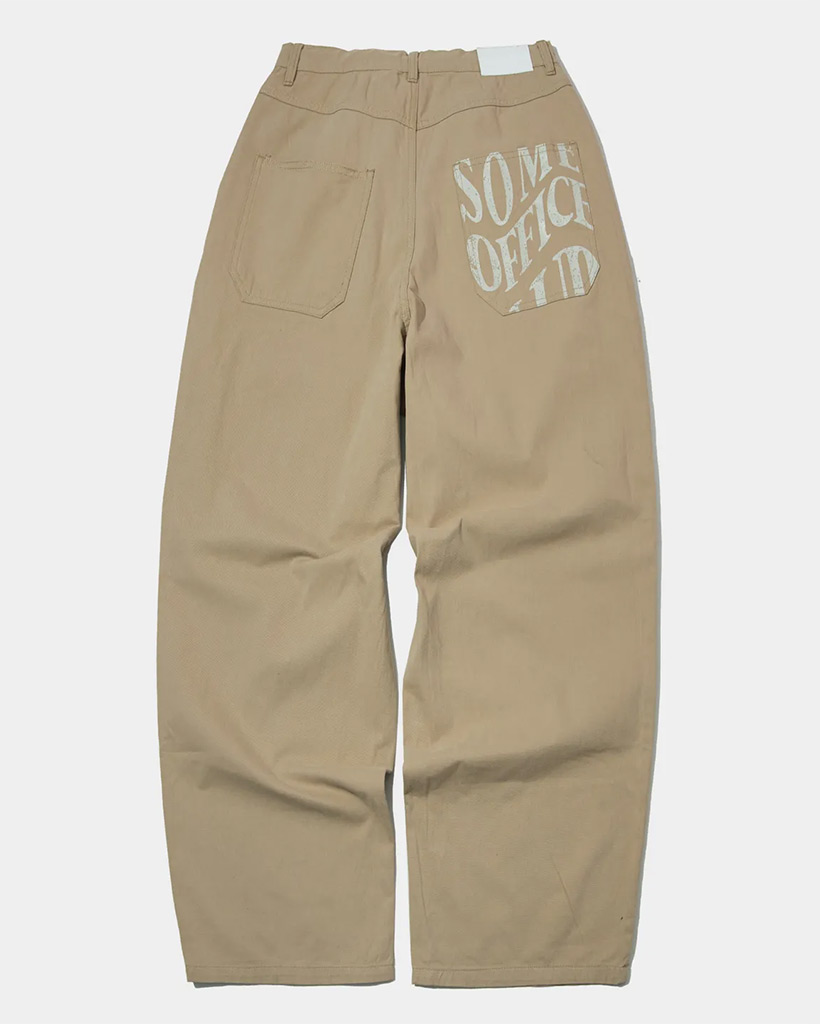 レタリングプリンテッドベーシックバルーンフィットワイドコットンパンツ [ベージュ]