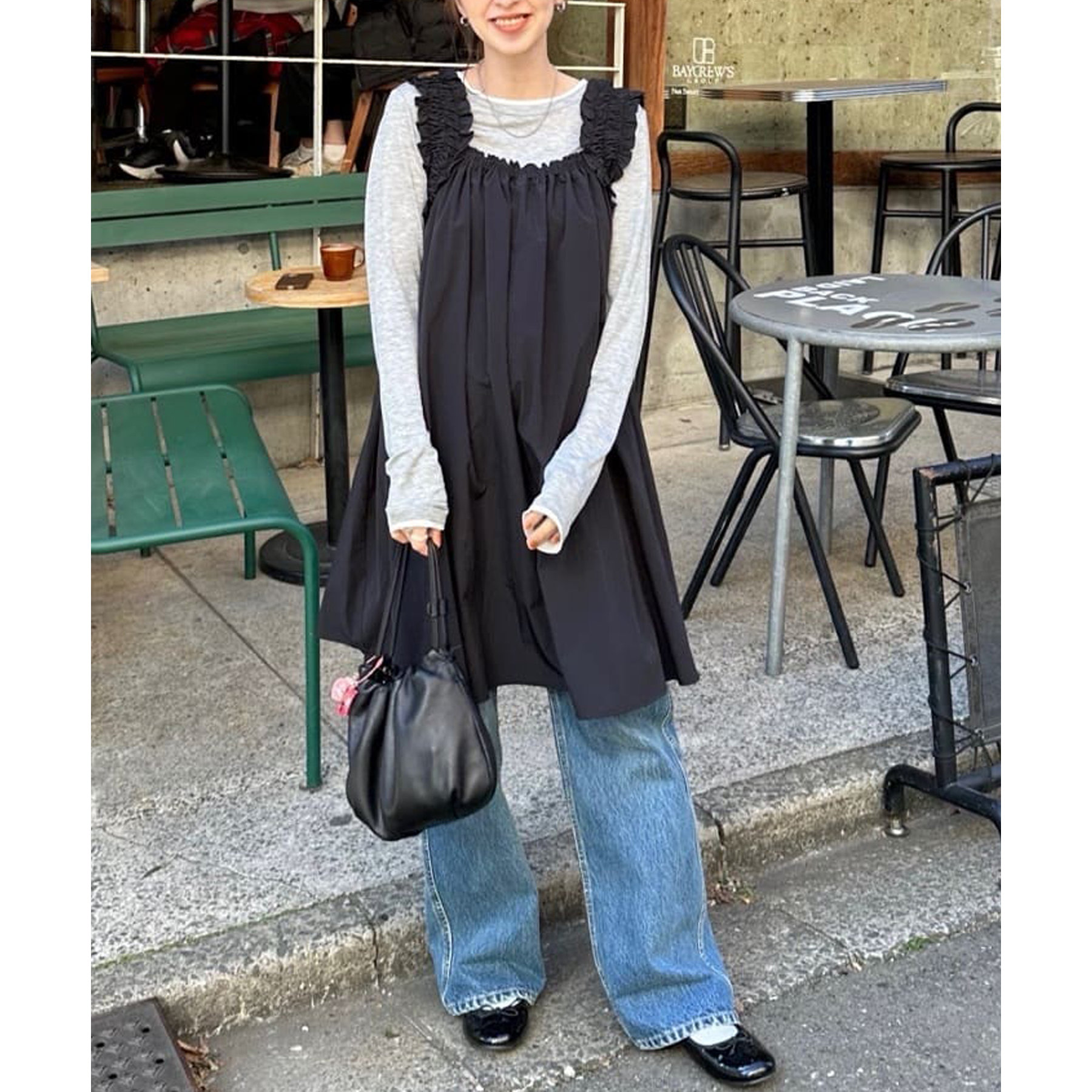 149㎝スタッフ:ワンピースとしても、デニムと合わせたレイヤードコーデにもおすすめのワンピースです!