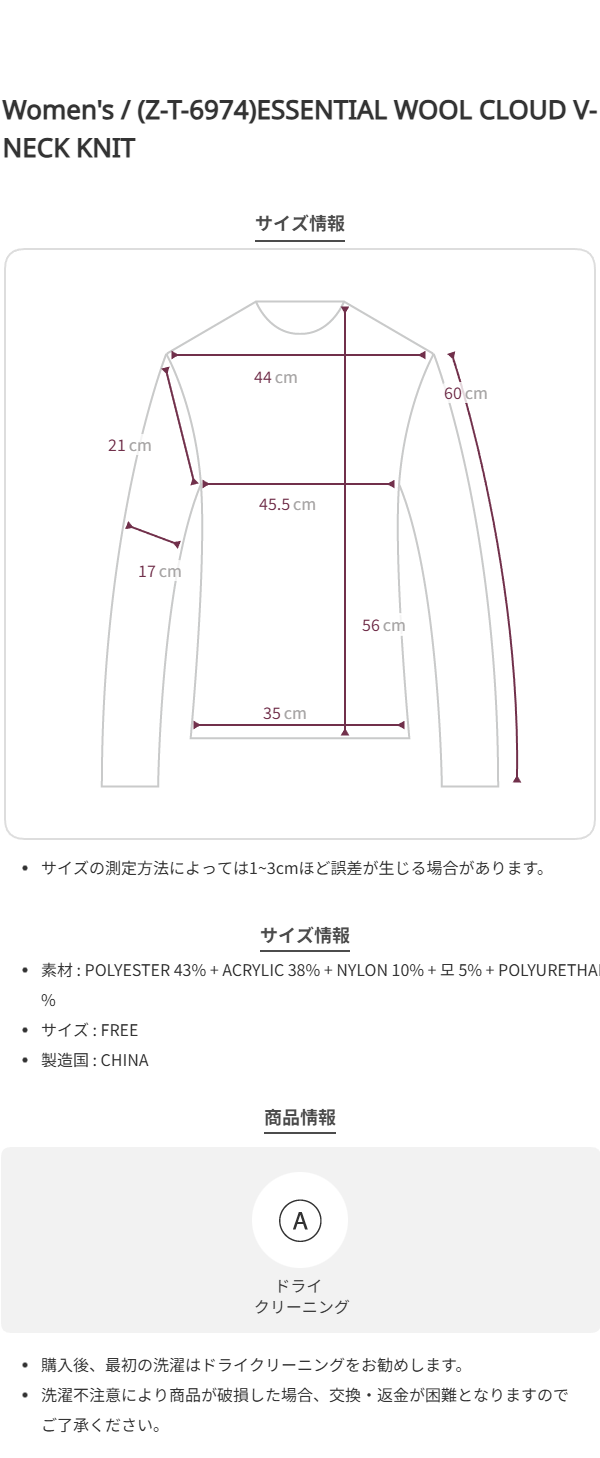 (Z-T-6974)ESSENTIAL WOOL CLOUD V-NECK KNIT