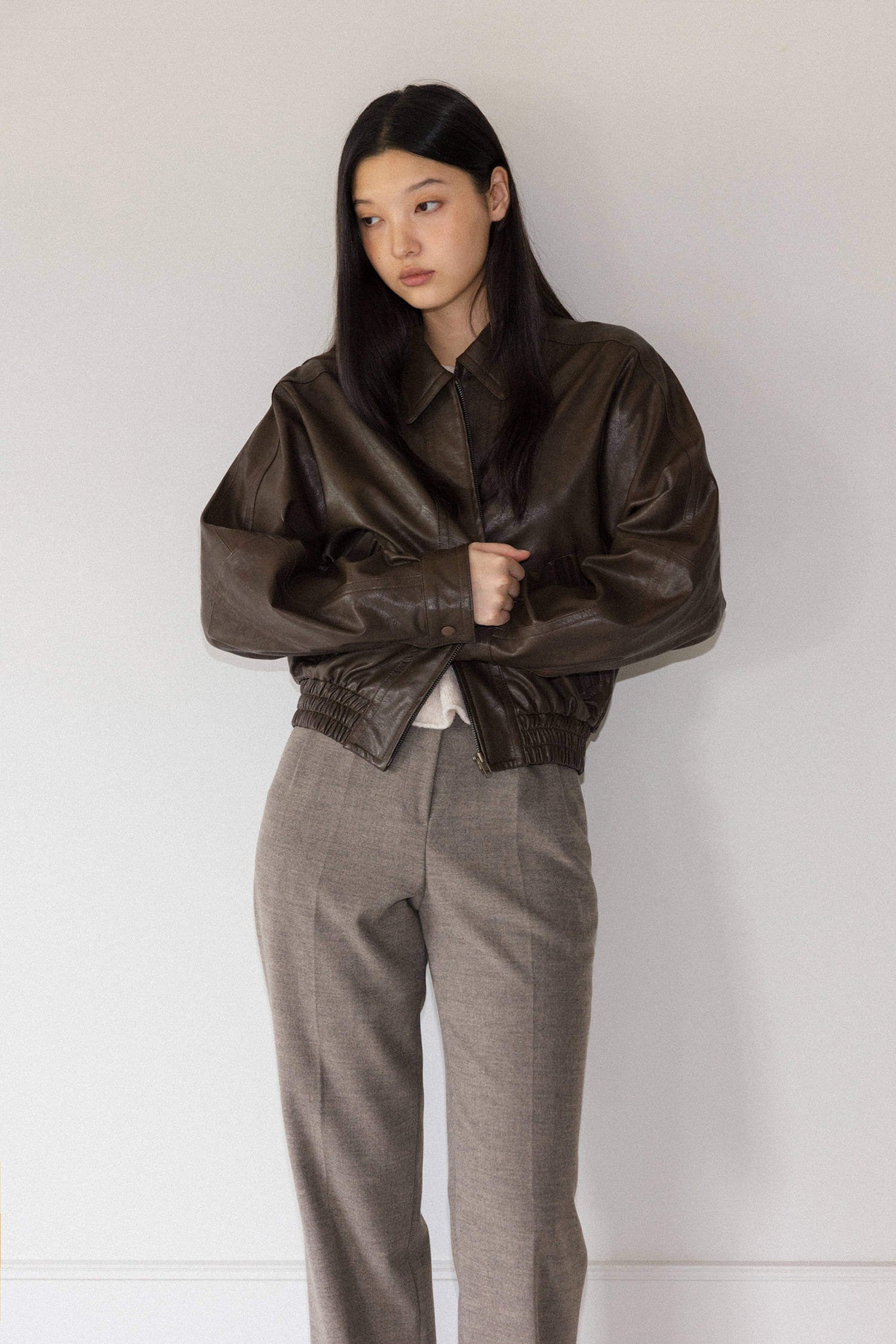 Crunch leather blouson (khaki brown)