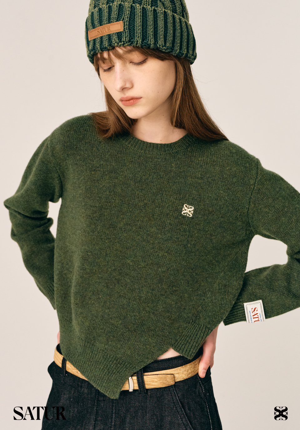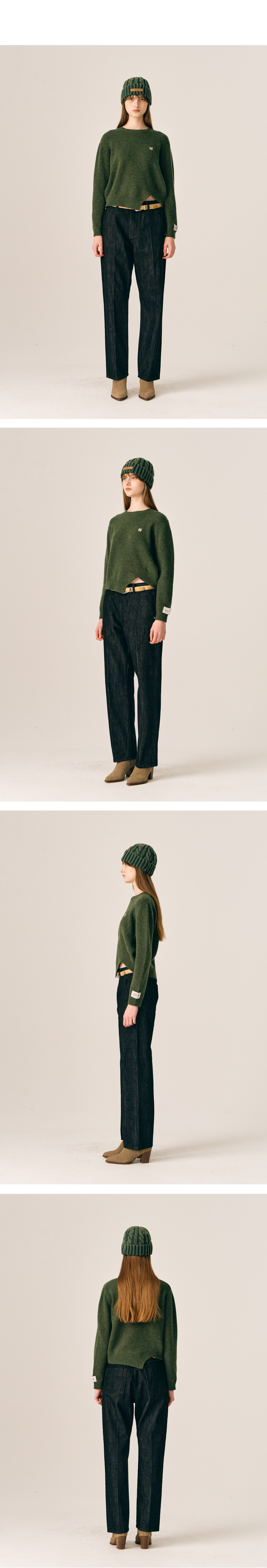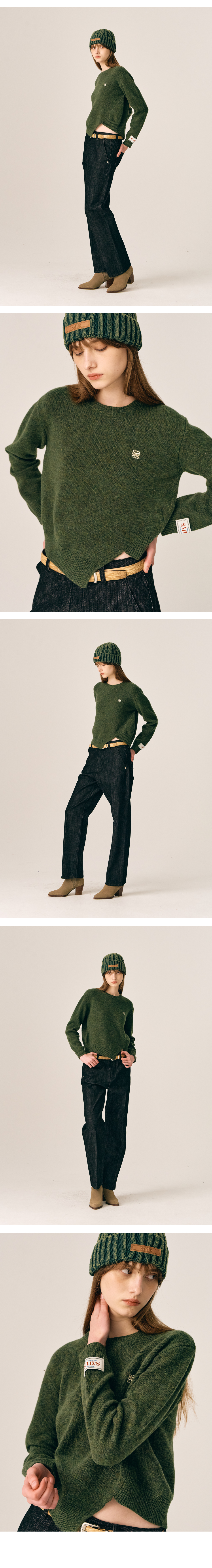 (W) Dublin Unbalanced Cashmere Blend Knit - Olive Khaki