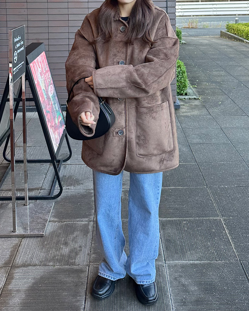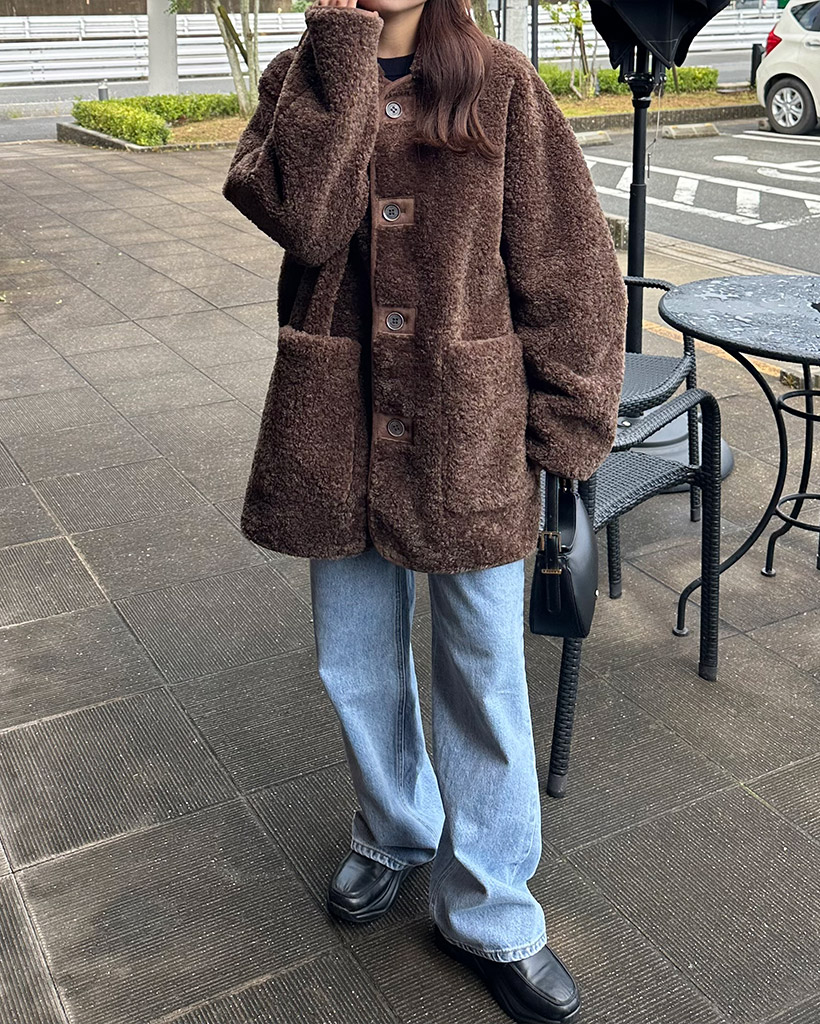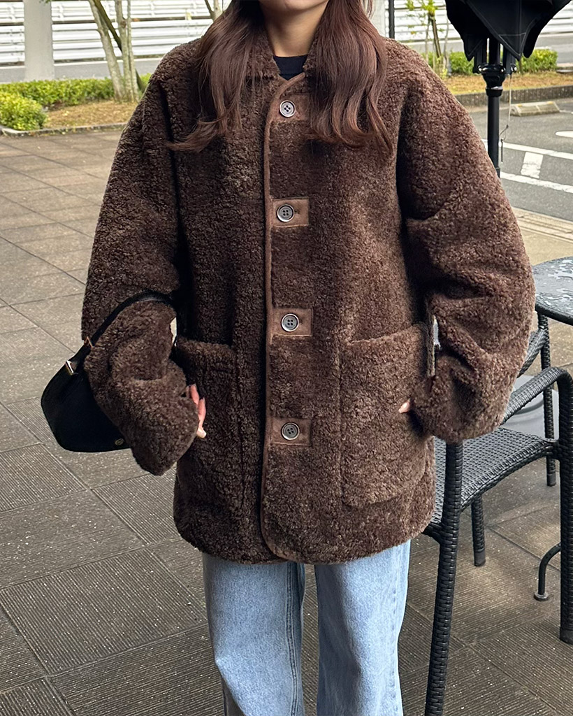 [AFULE X ANDNEEDS] Reversible shearling jacket (brown)