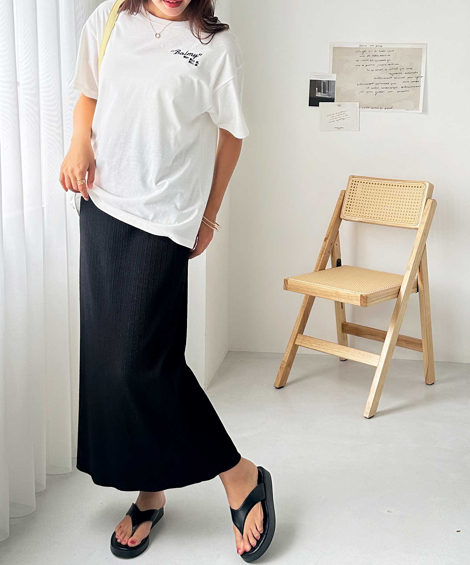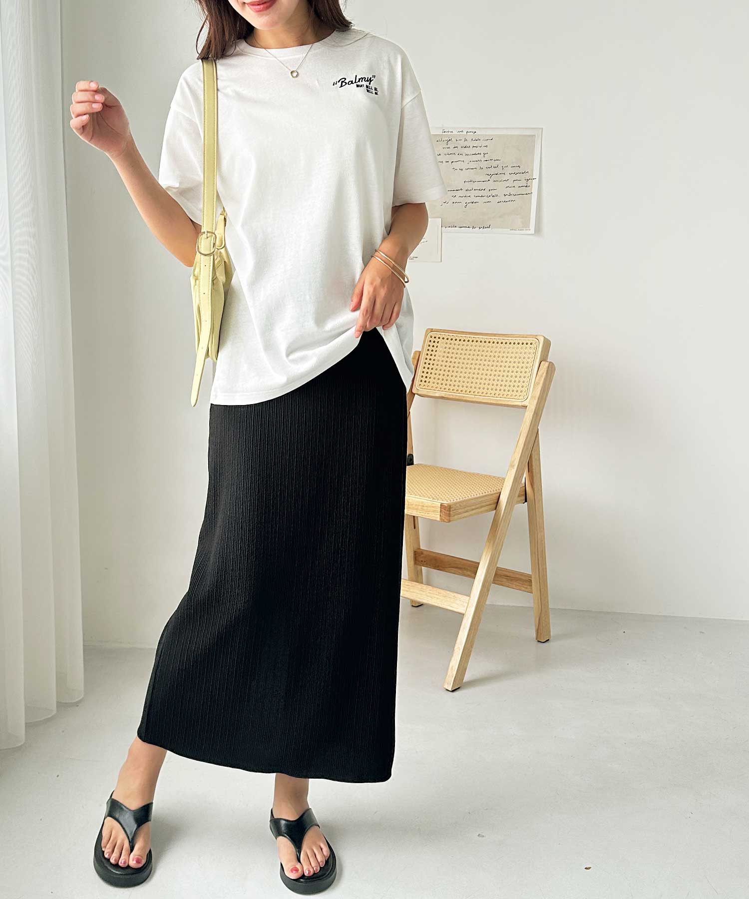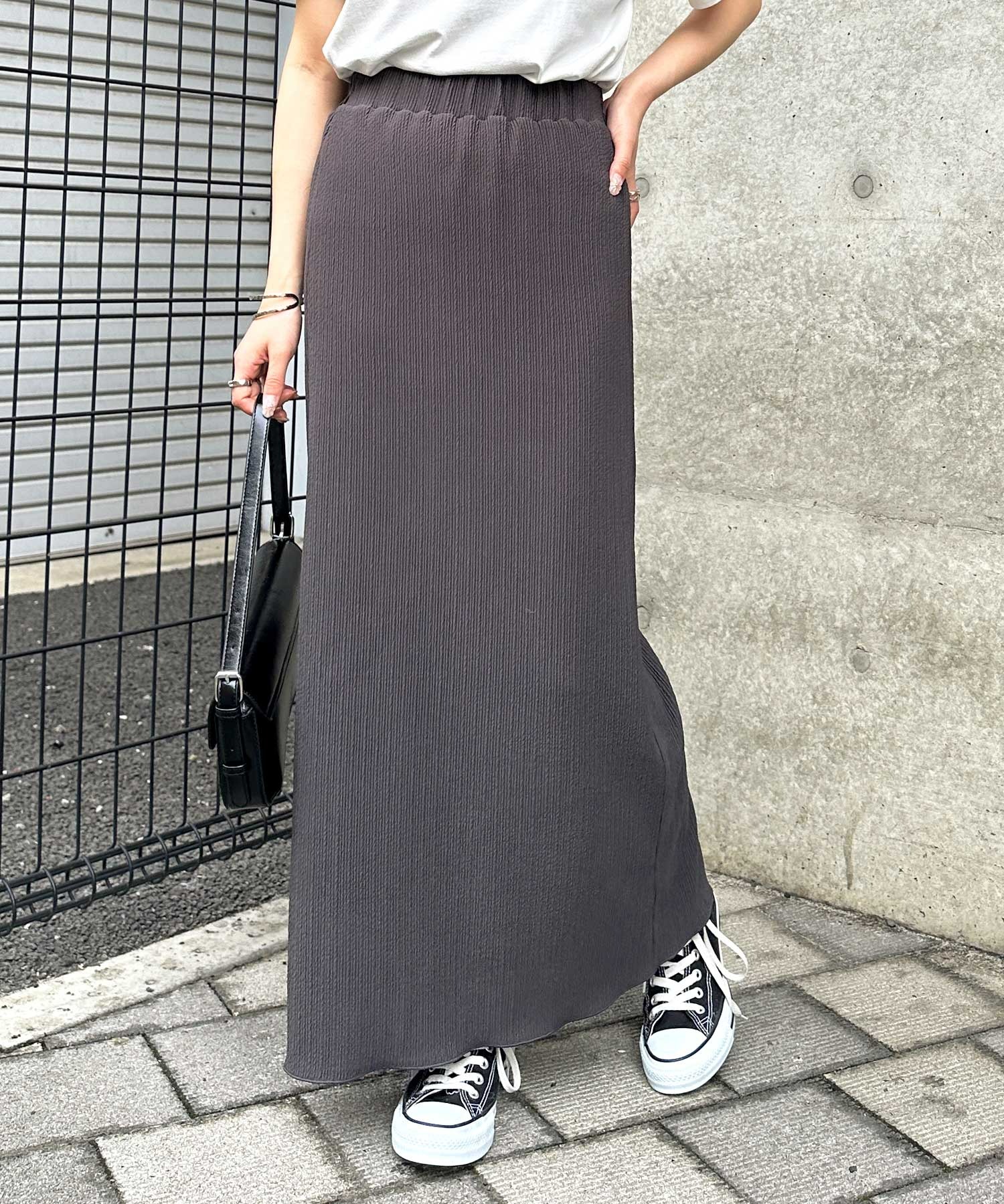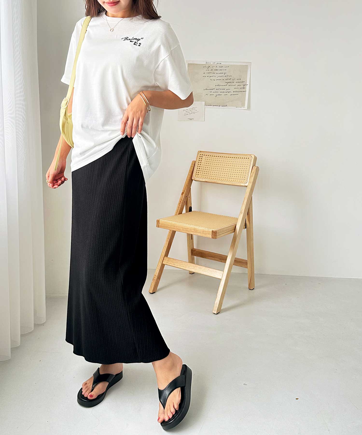 シャツやブラウス合わせでお仕事シーンに、オーバーサイズのTシャツでカジュアルにも!幅広いコーディネートに適したロングスカートです。