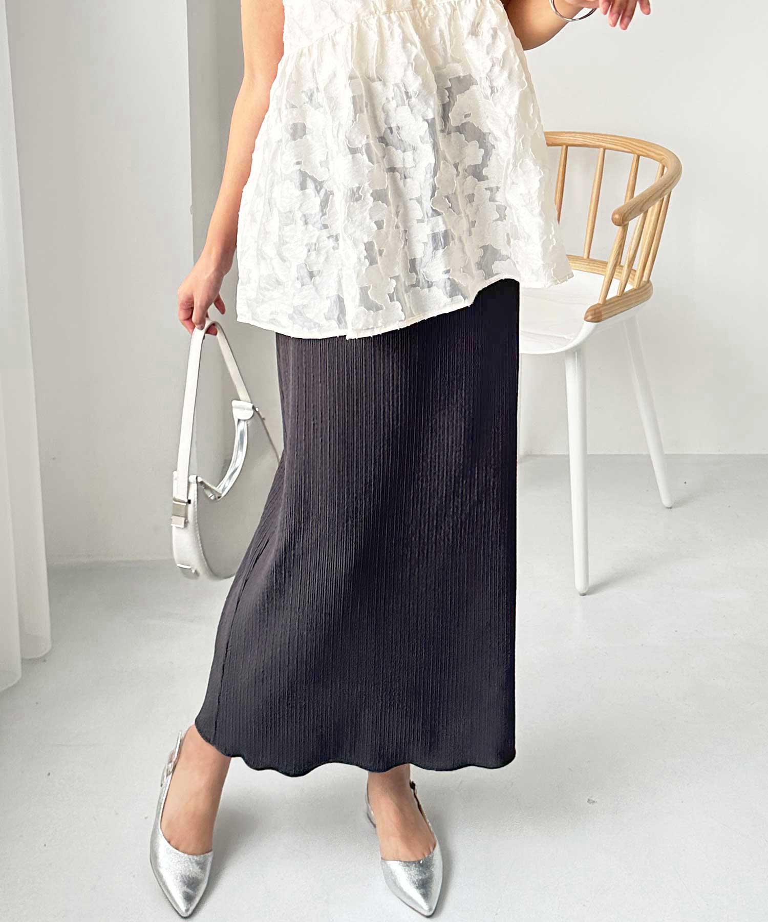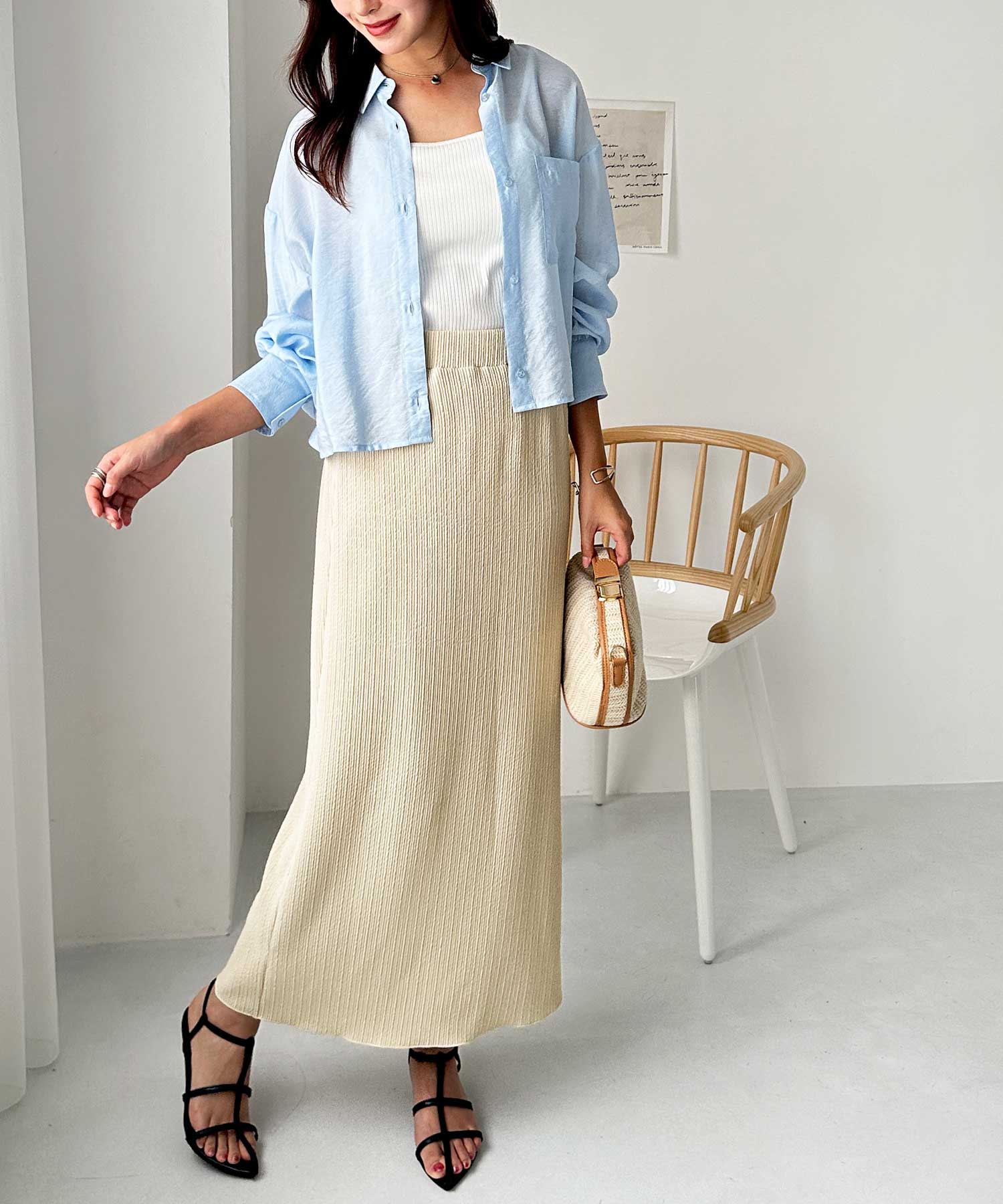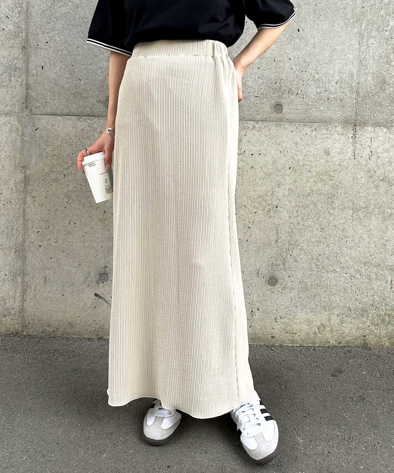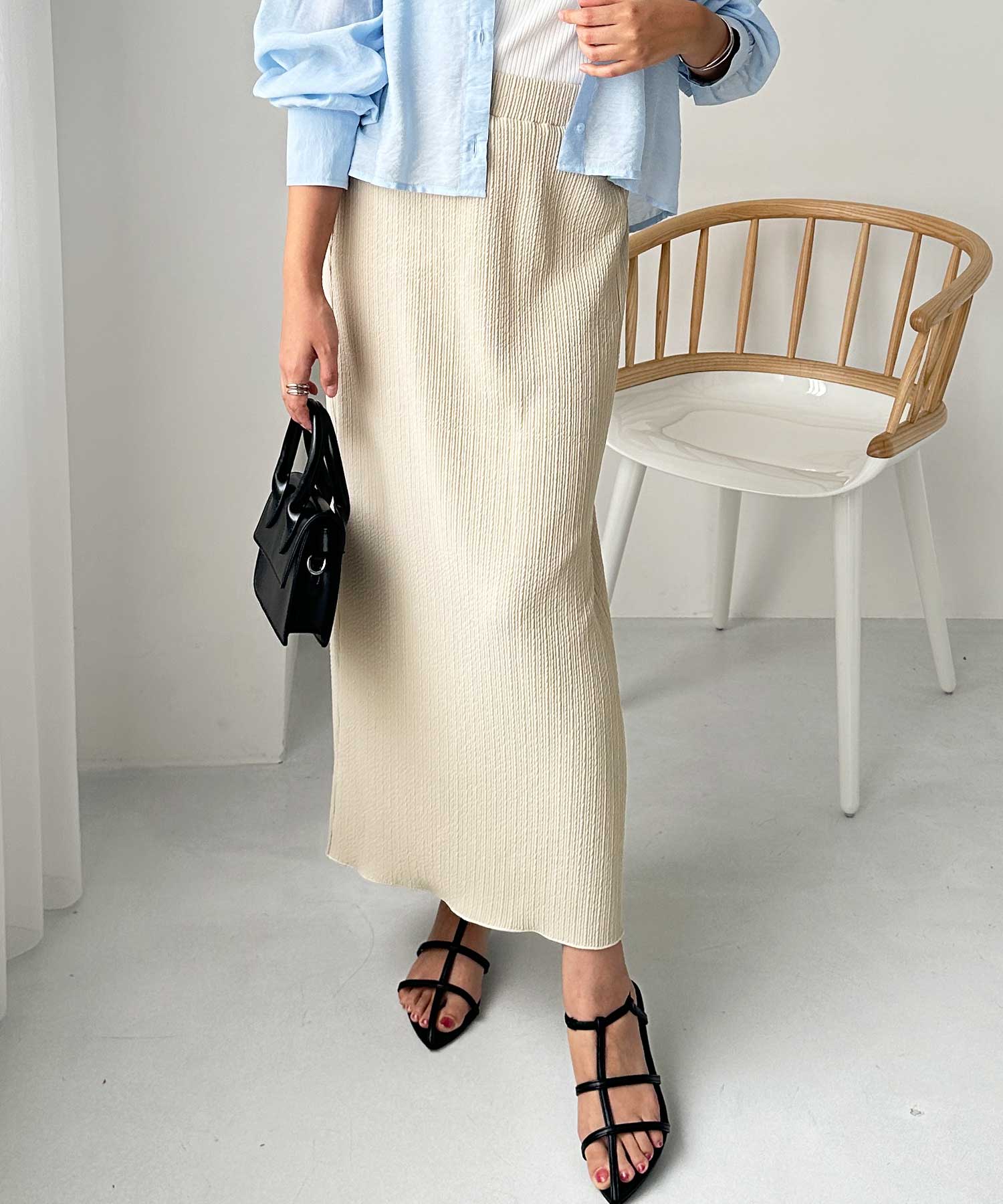 シャツやブラウス合わせでお仕事シーンに、オーバーサイズのTシャツでカジュアルにも!幅広いコーディネートに適したロングスカートです。