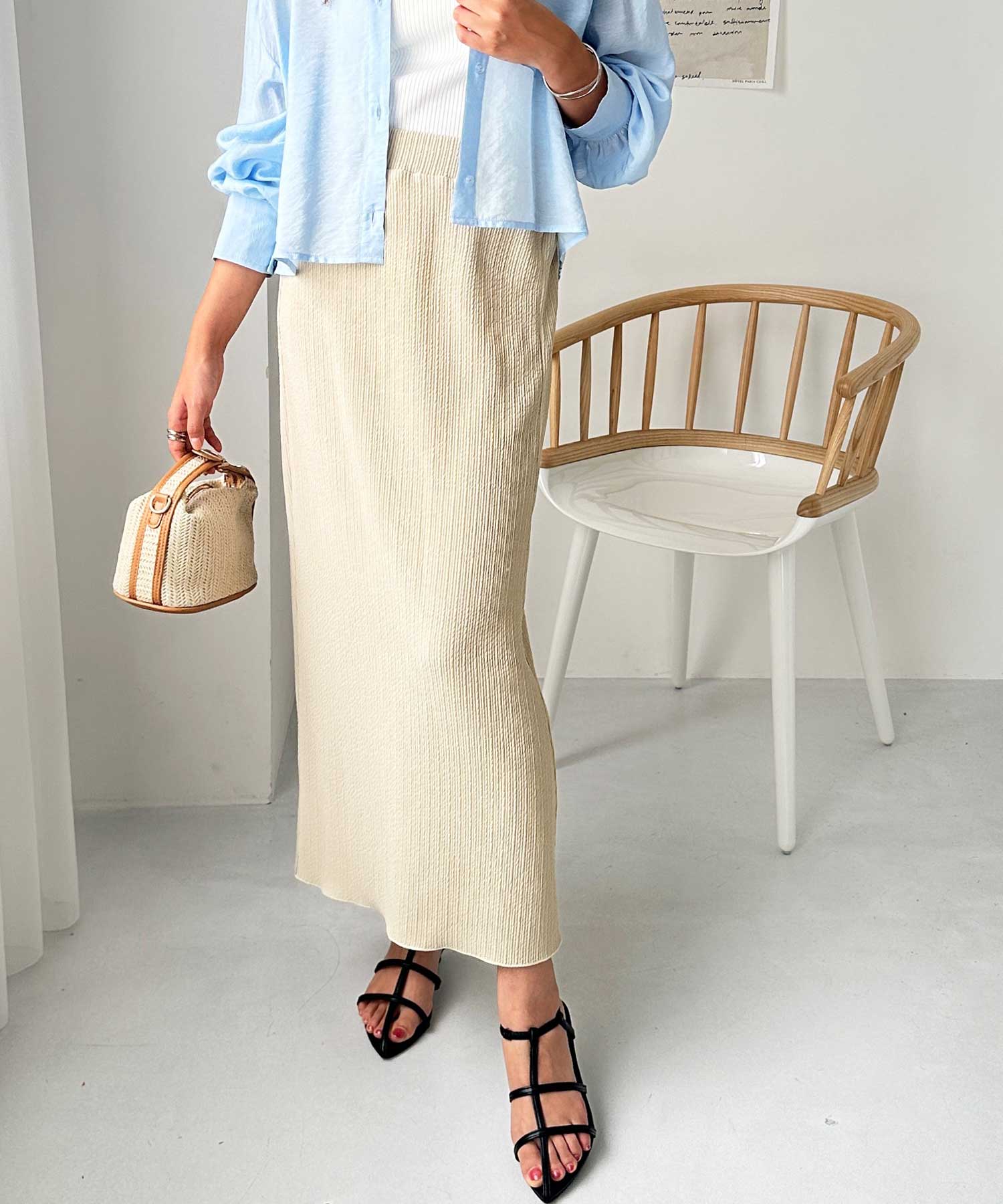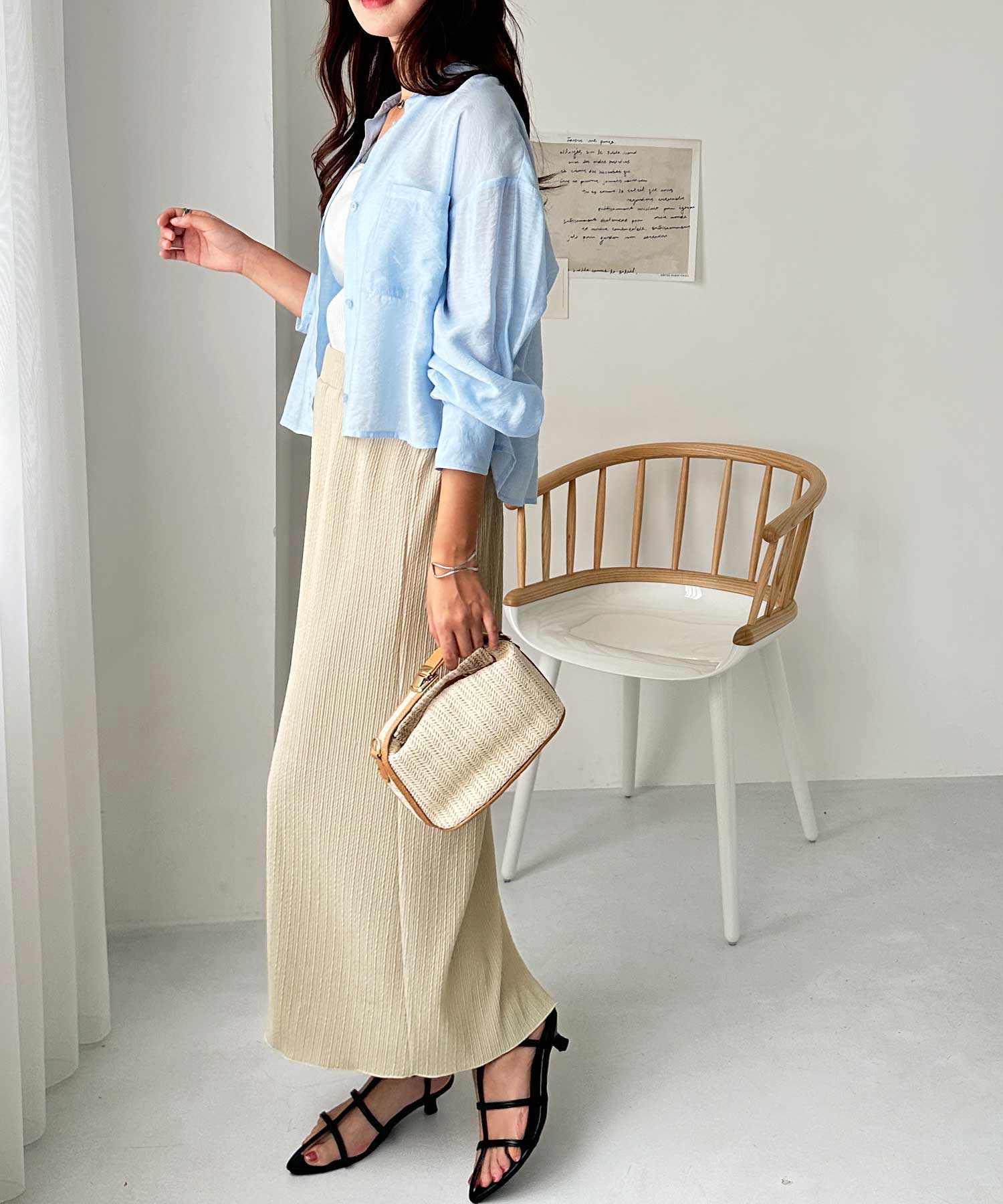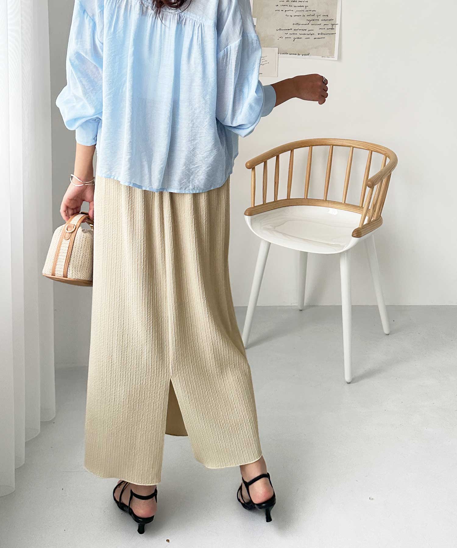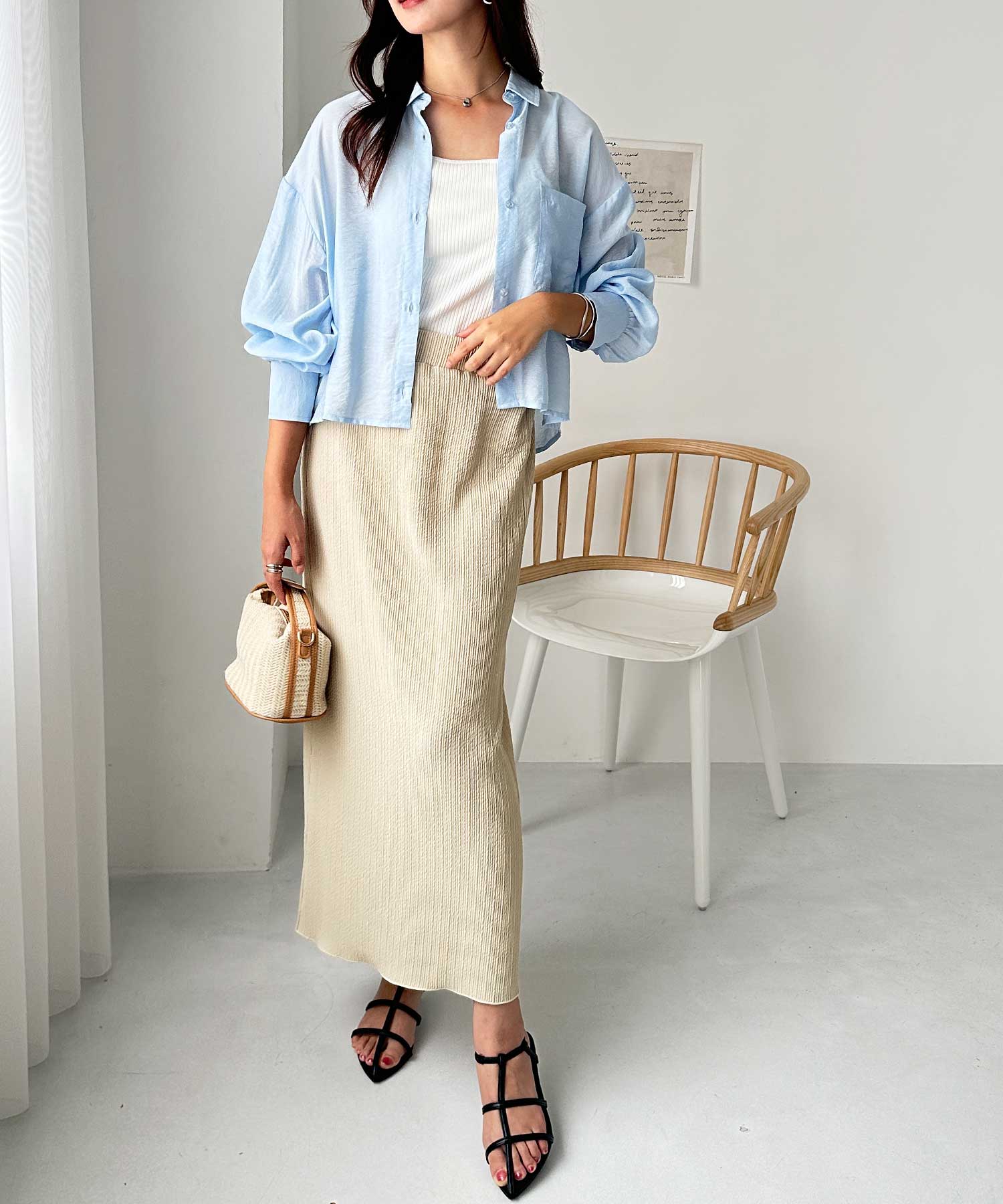 シャツやブラウス合わせでお仕事シーンに、オーバーサイズのTシャツでカジュアルにも!幅広いコーディネートに適したロングスカートです。