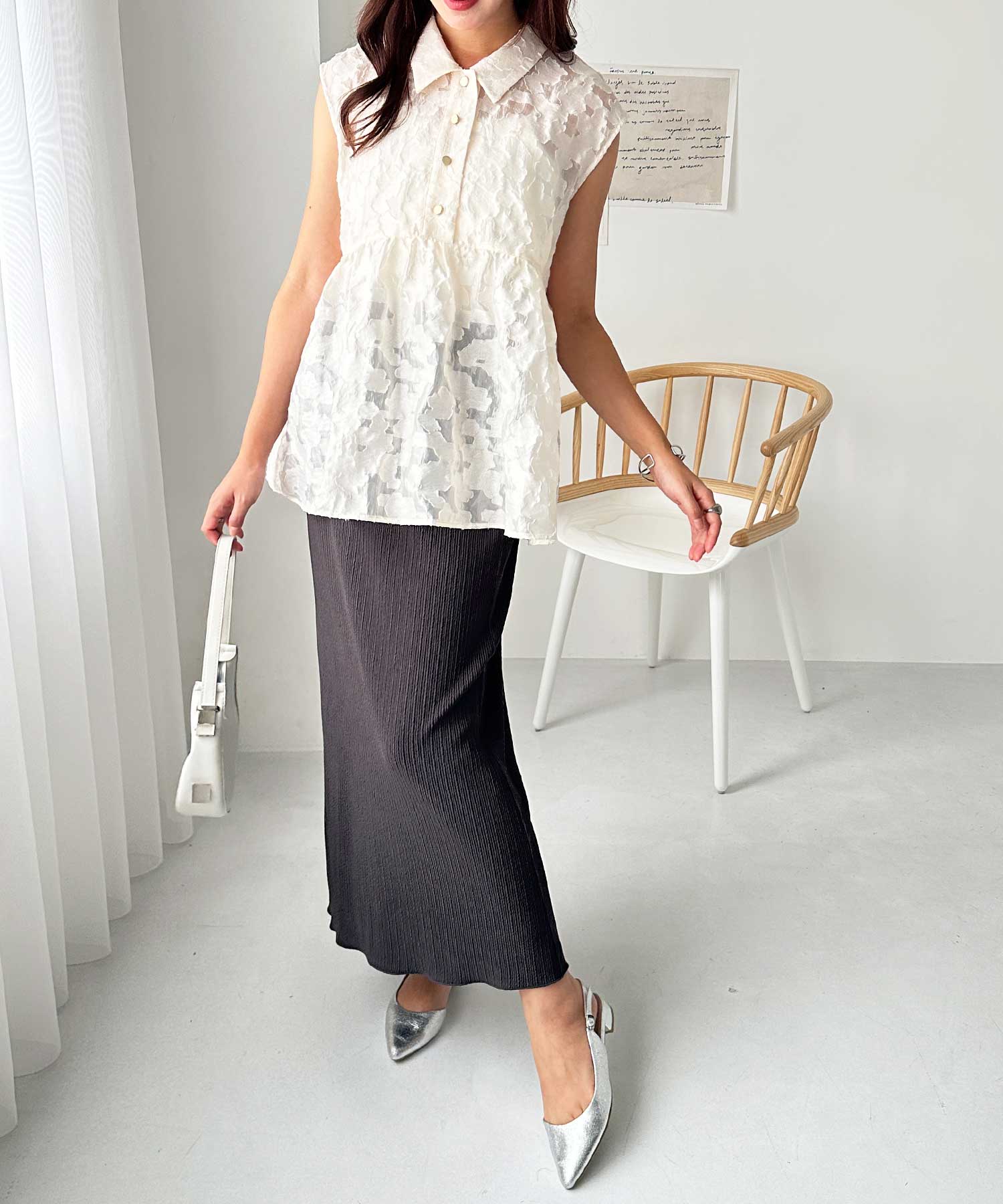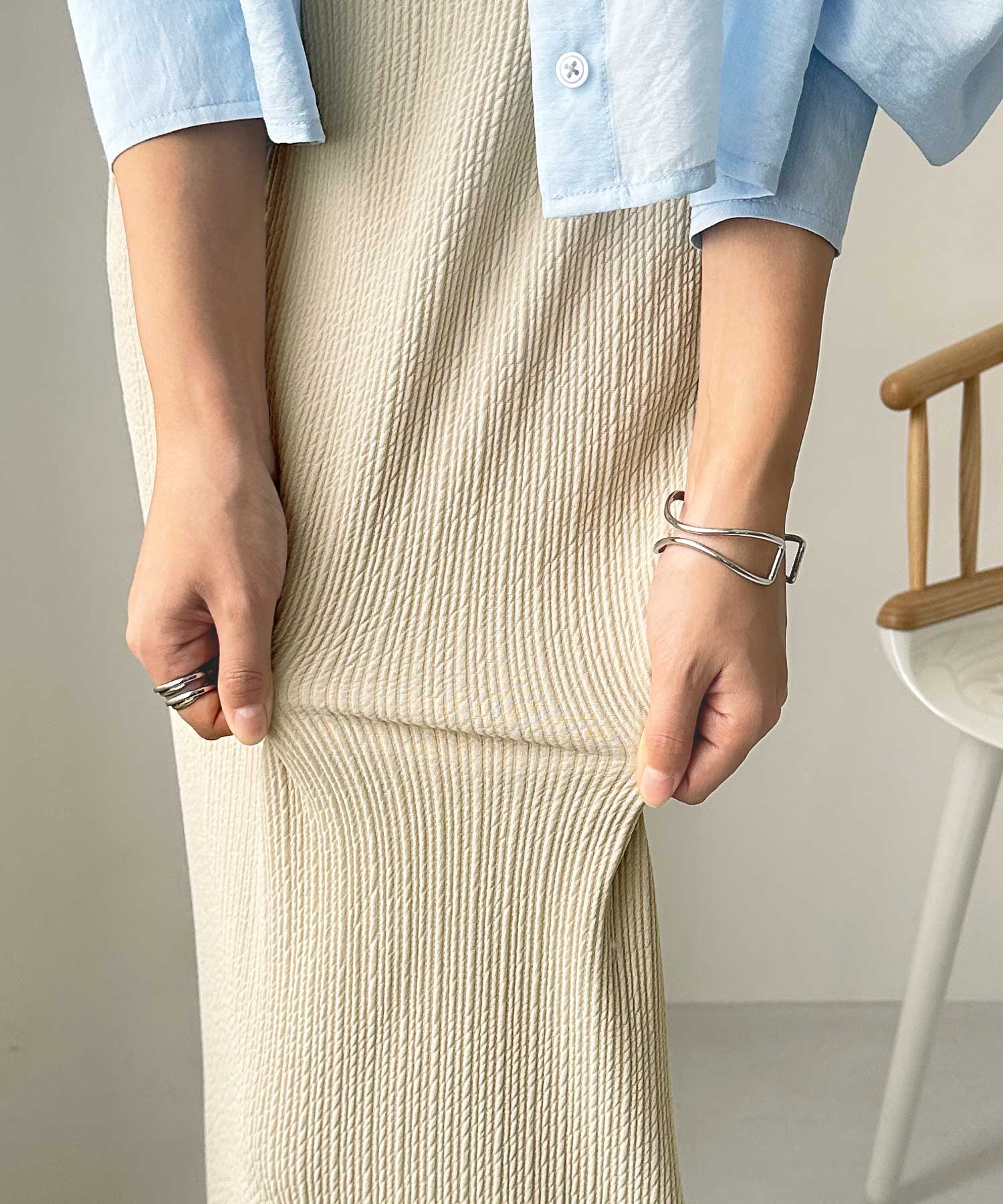 縦のラインを強調するシボ感のある素材もスタイルアップ見え効果が◎。