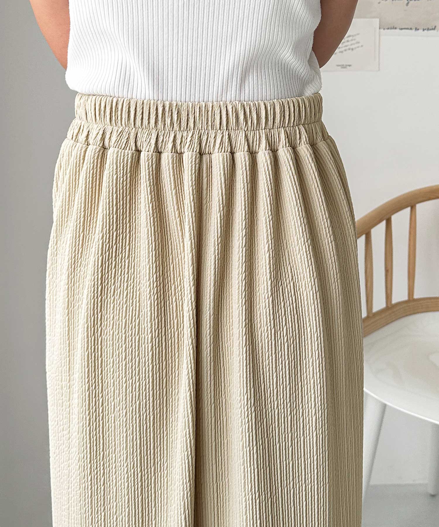 ウエスト総ゴム仕様でイージーな穿き心地ながらも、タックインしても決まるディテールに!