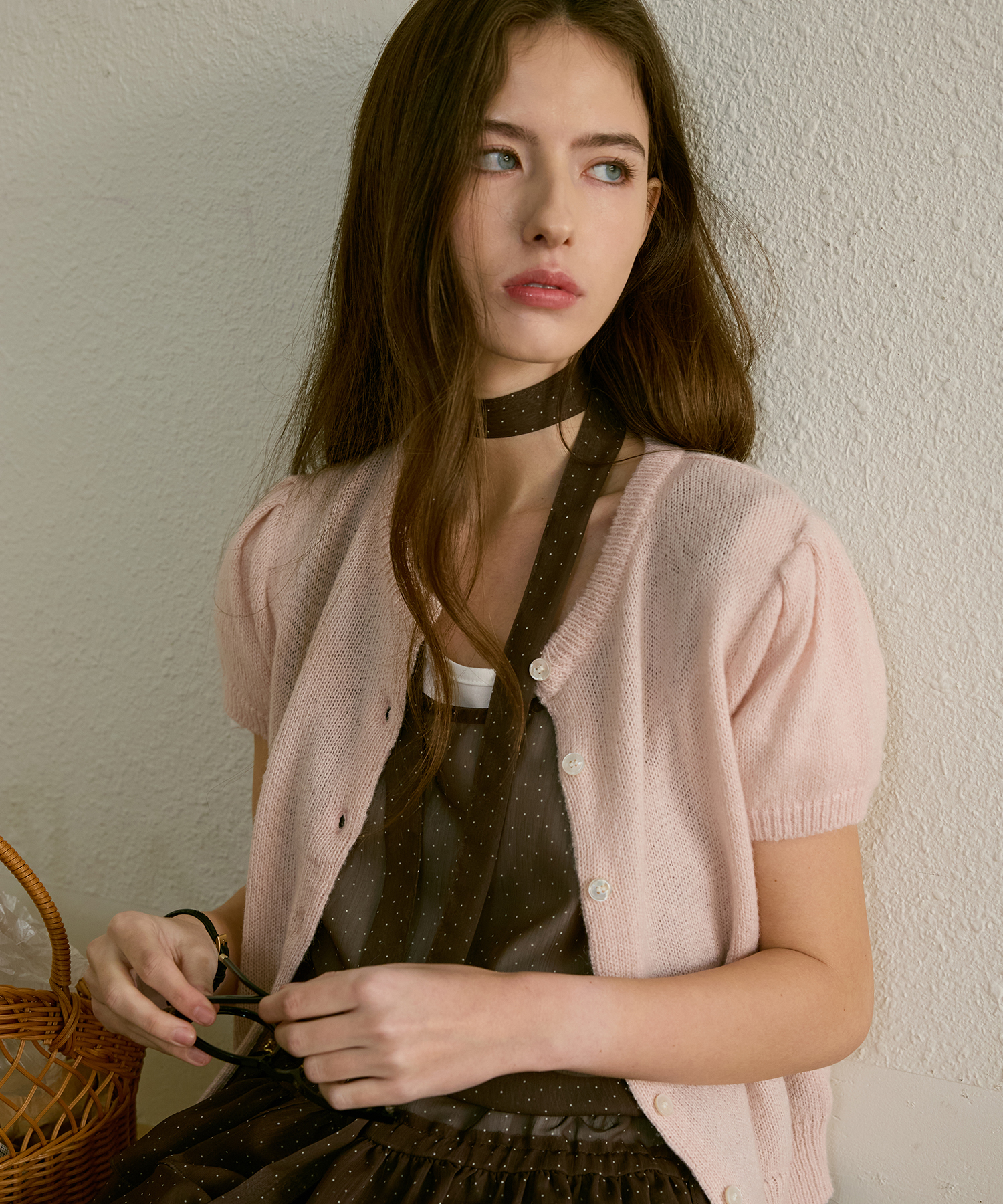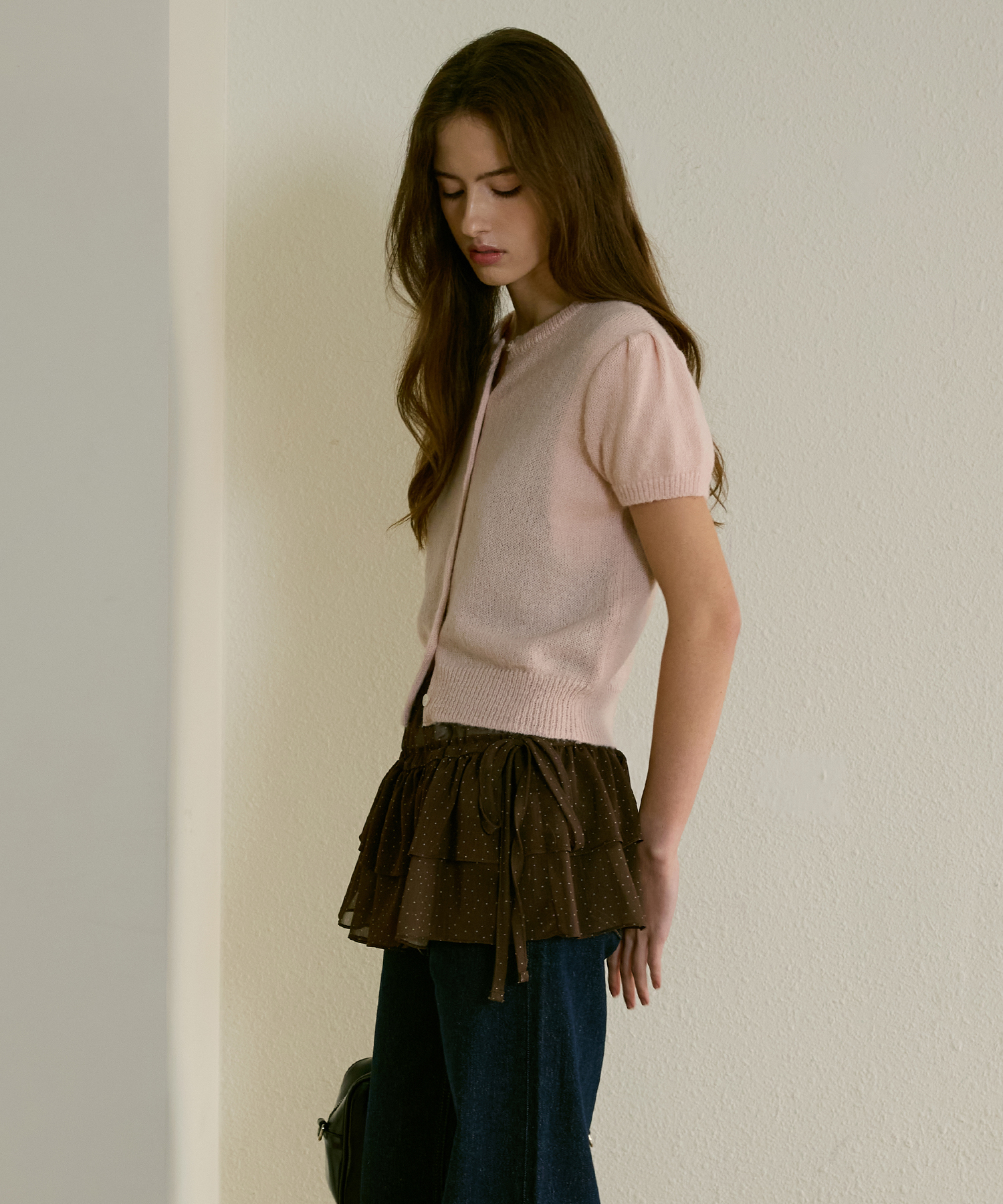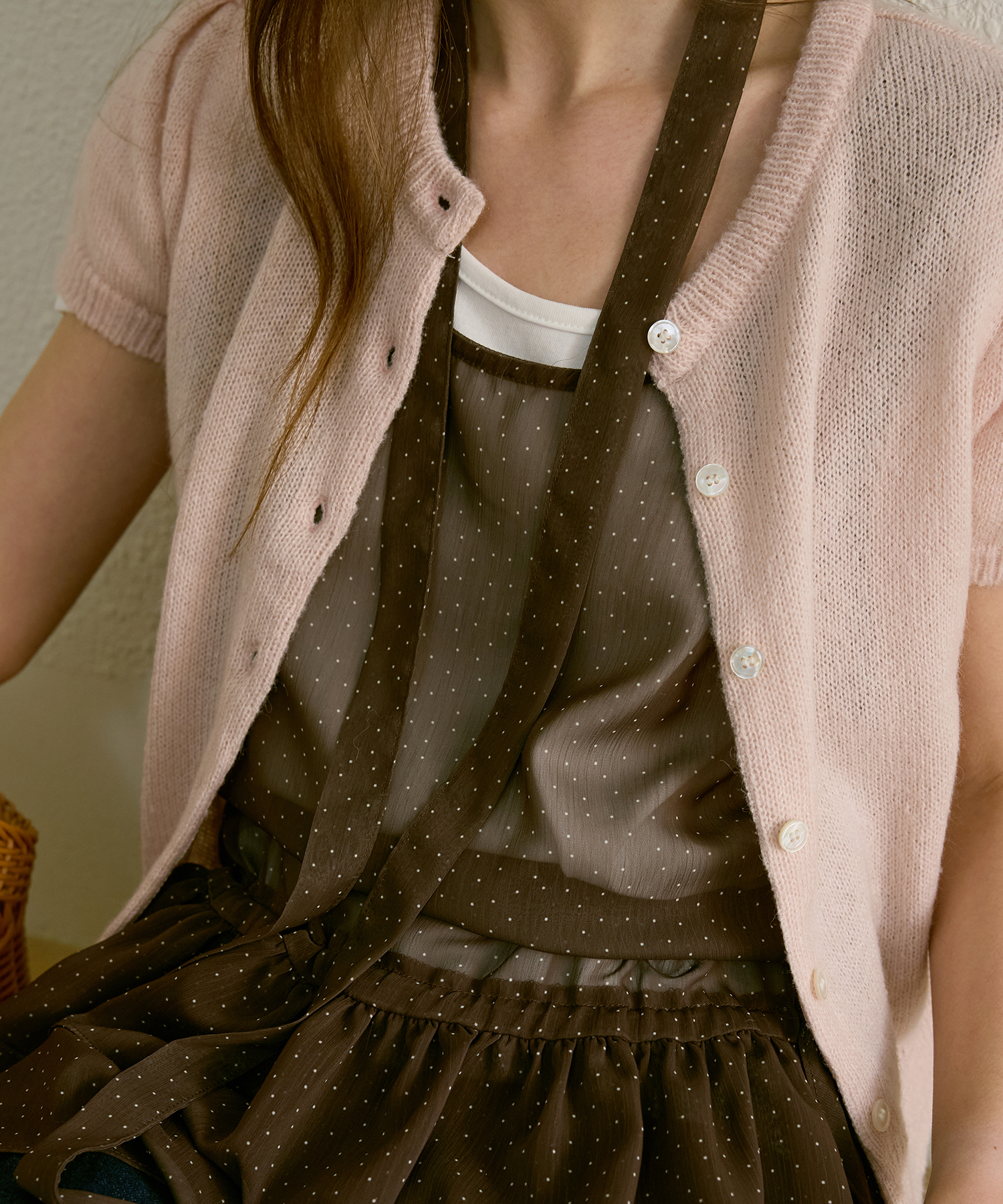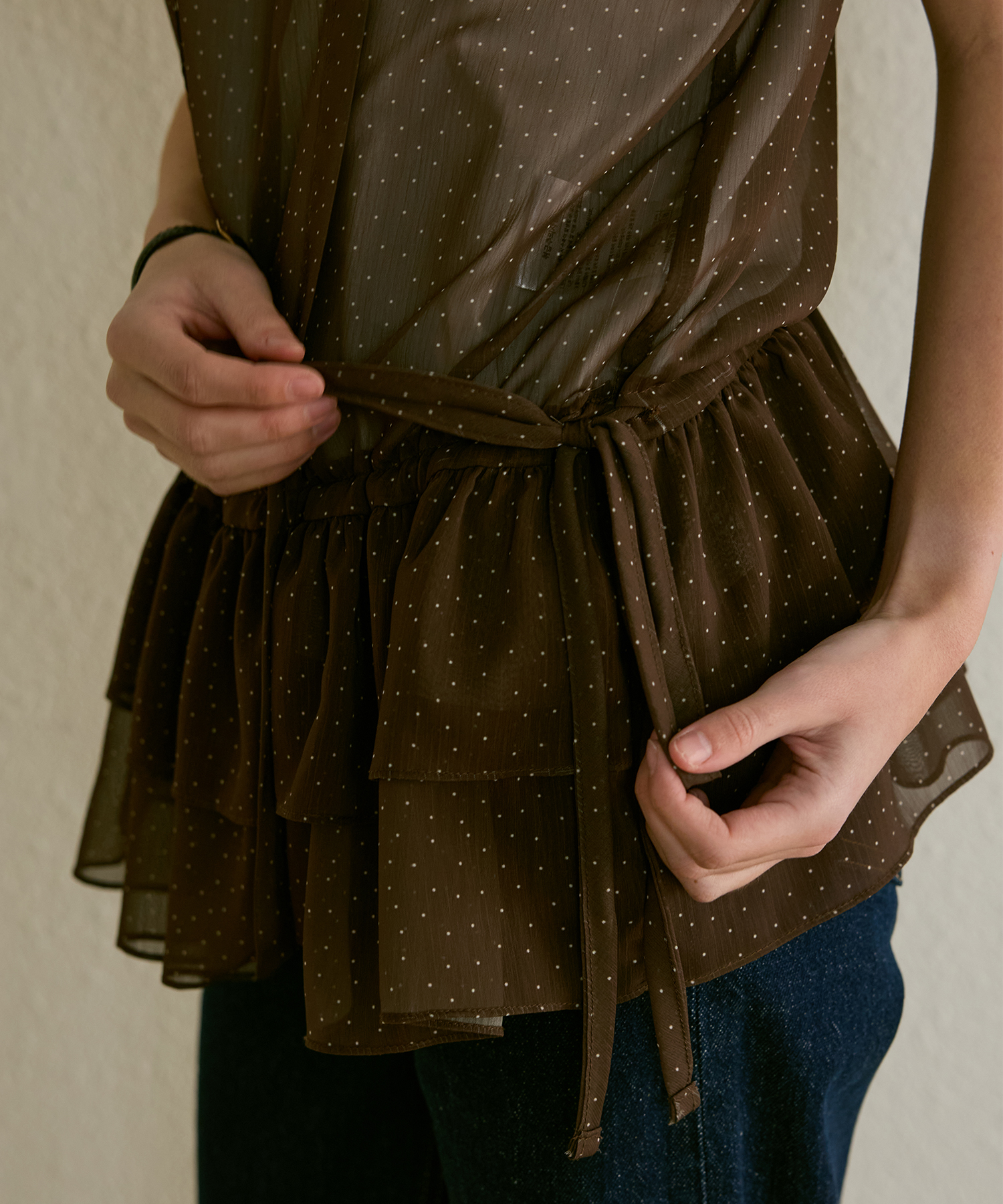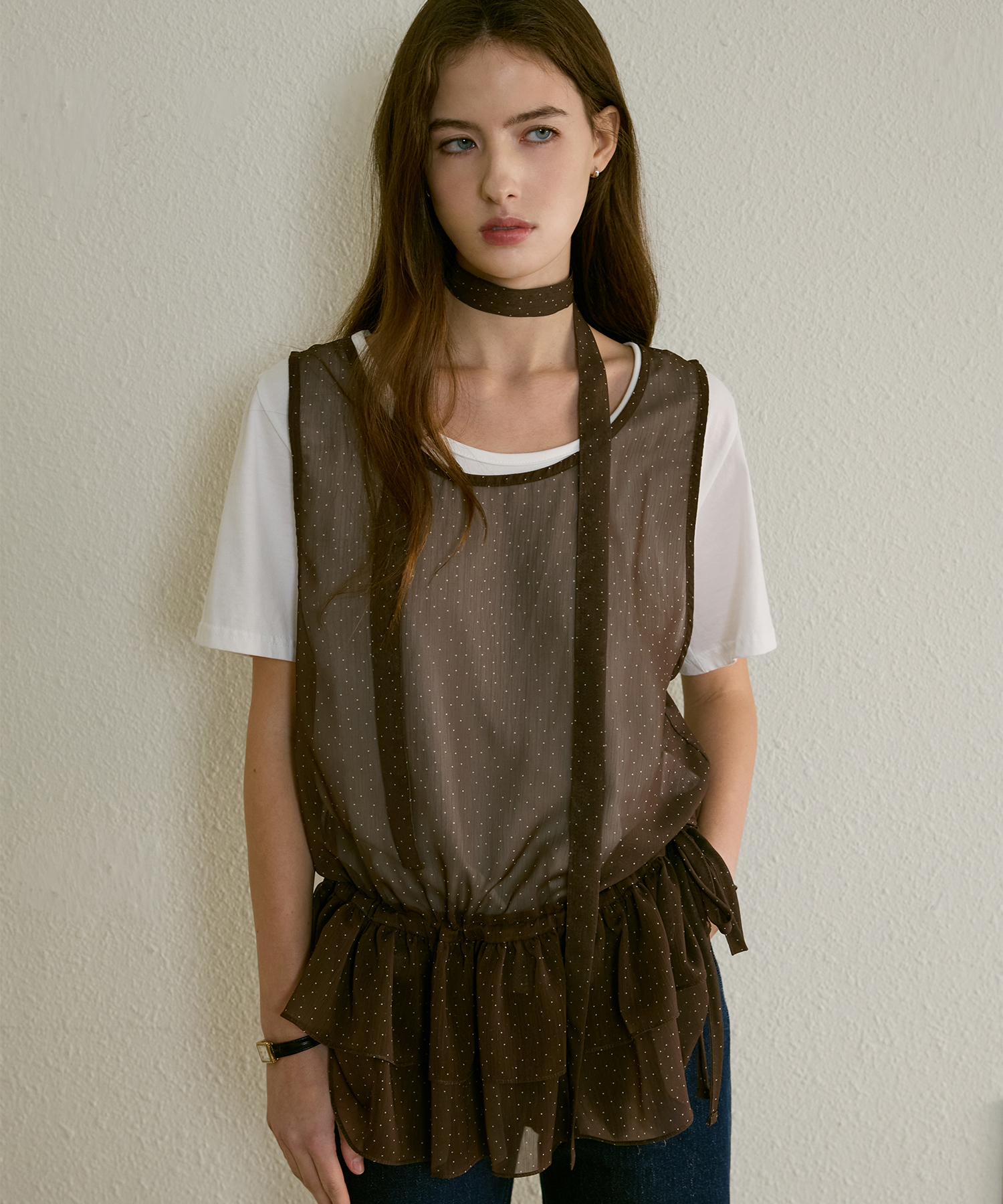 [Scarf SET] Dot Frill Layered One-Piece (Brown)