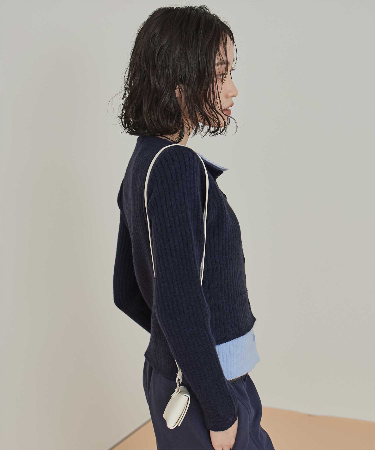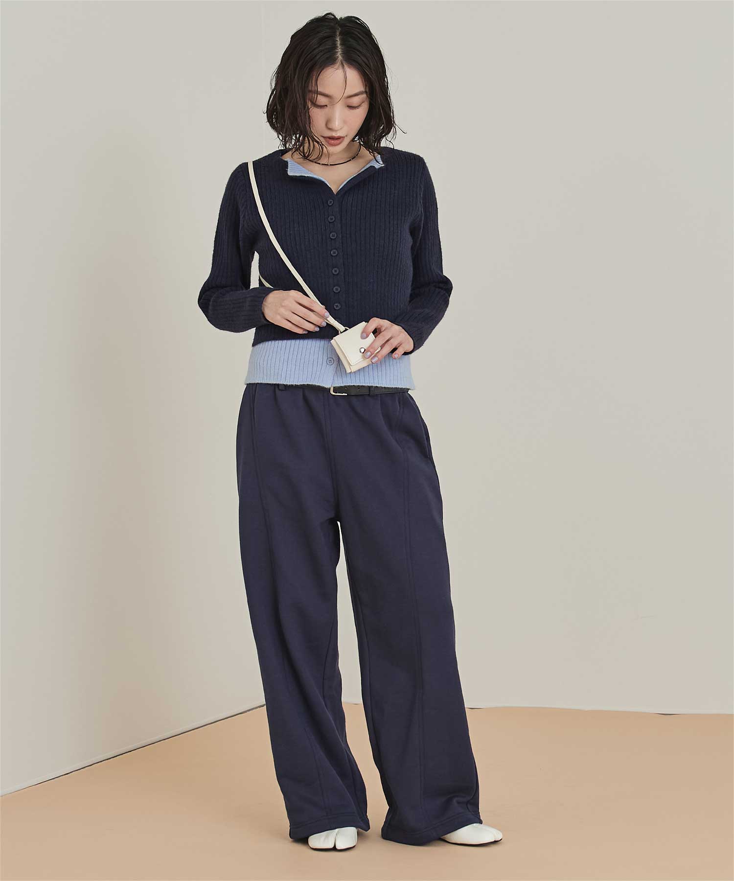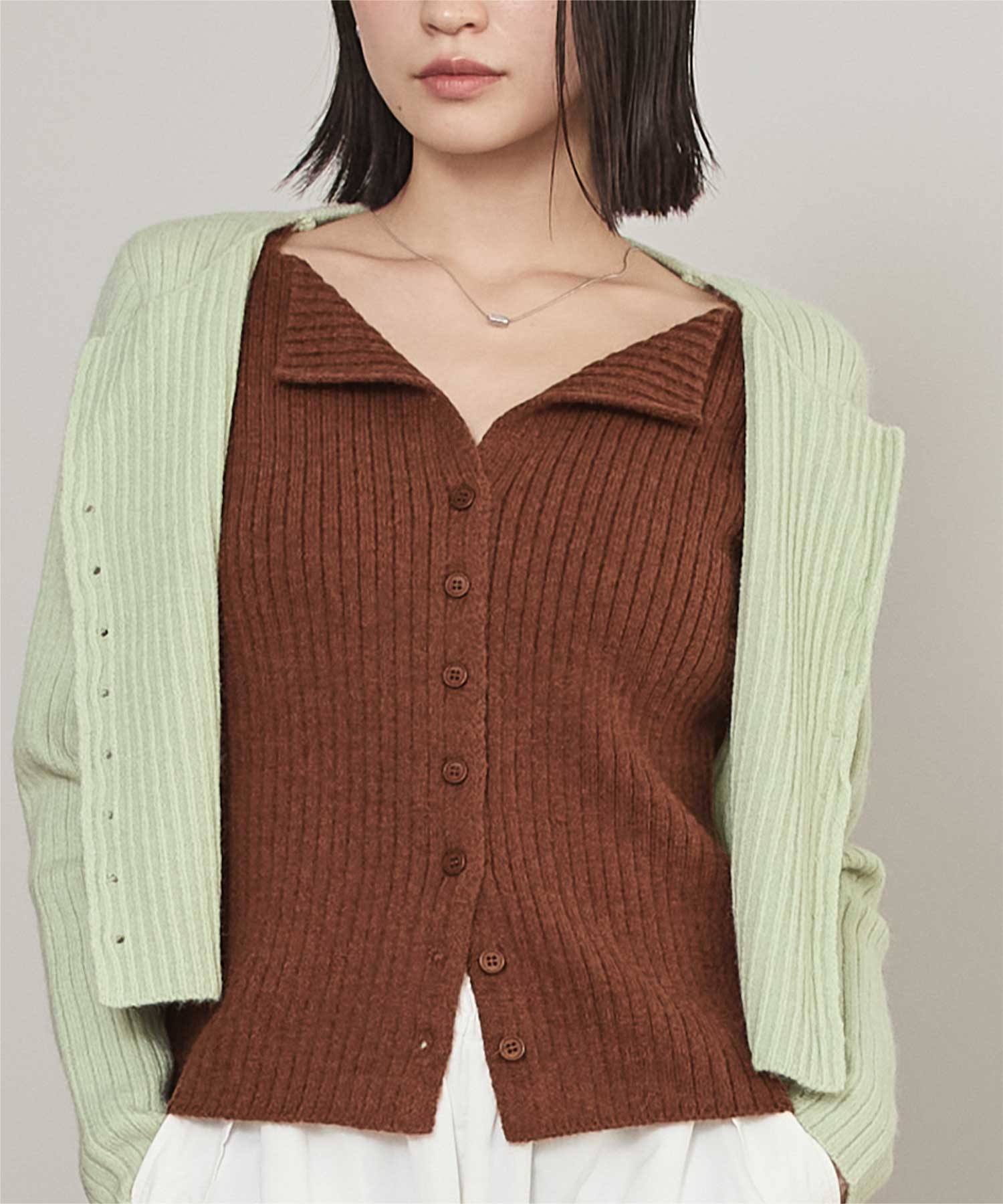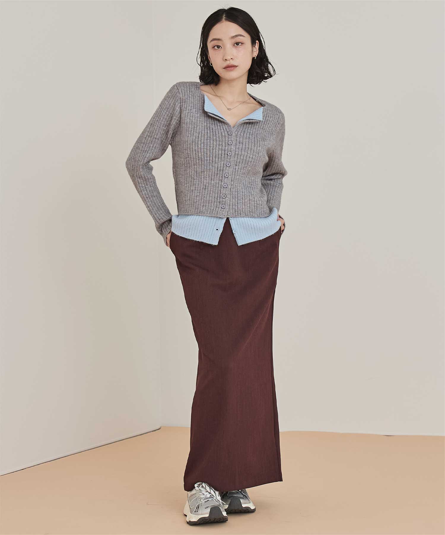 ・2枚重ねて着ているようなレイヤード風デザインが目を惹くニットカーディガン