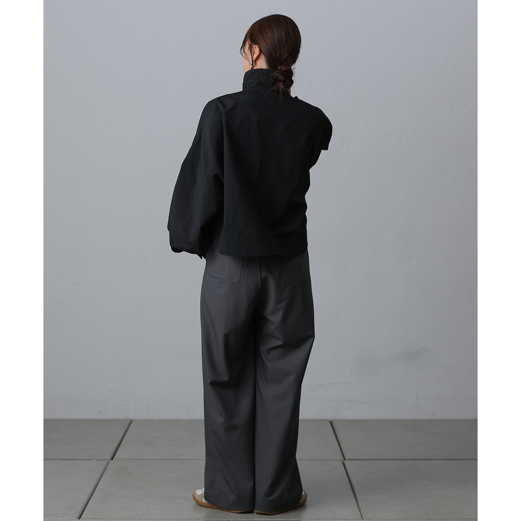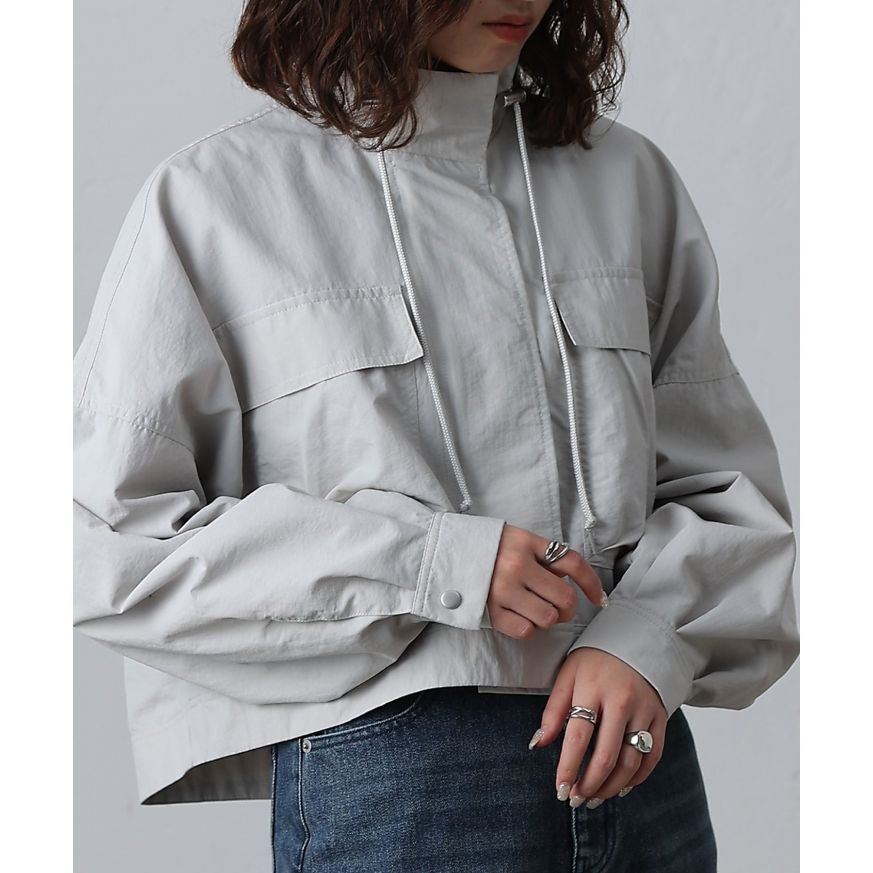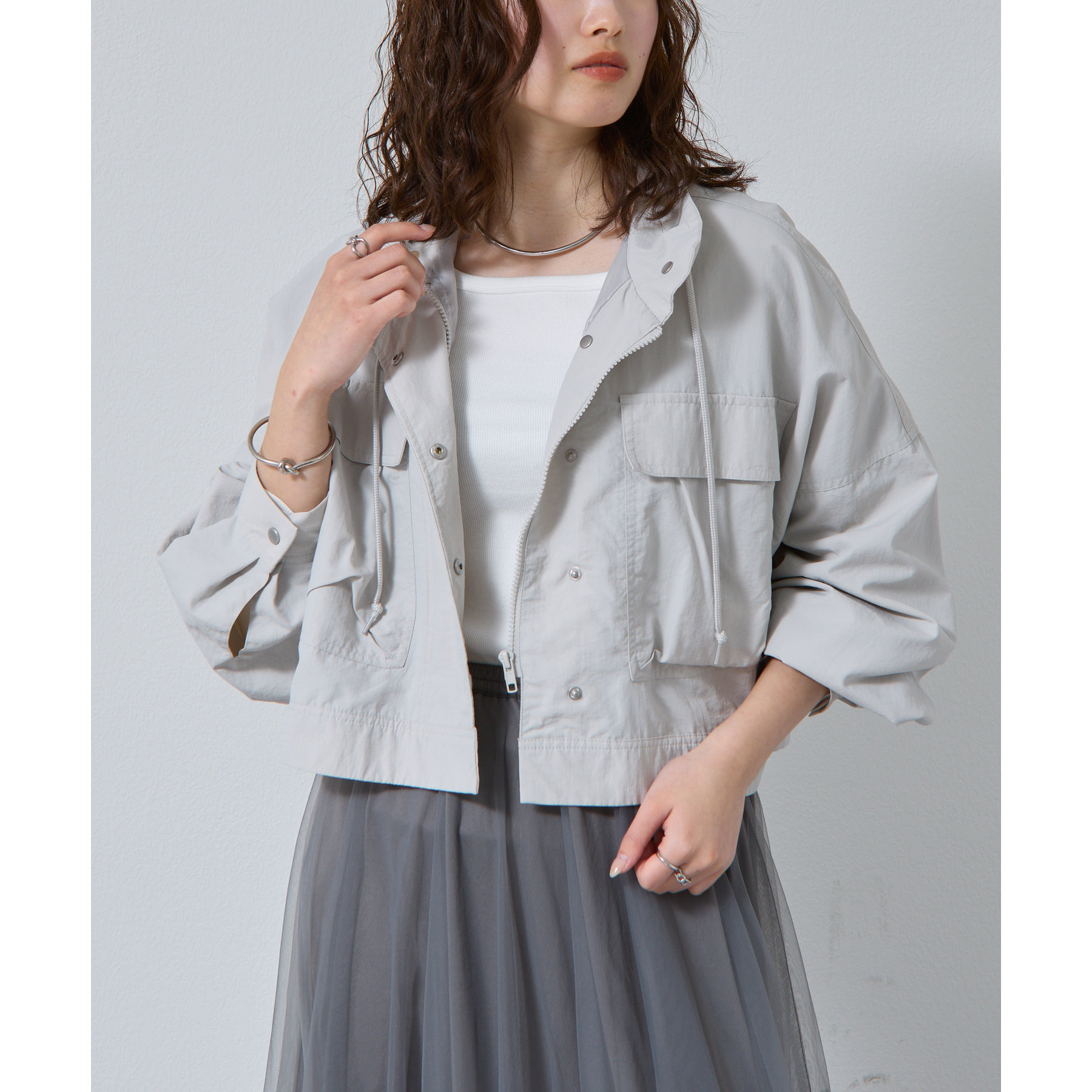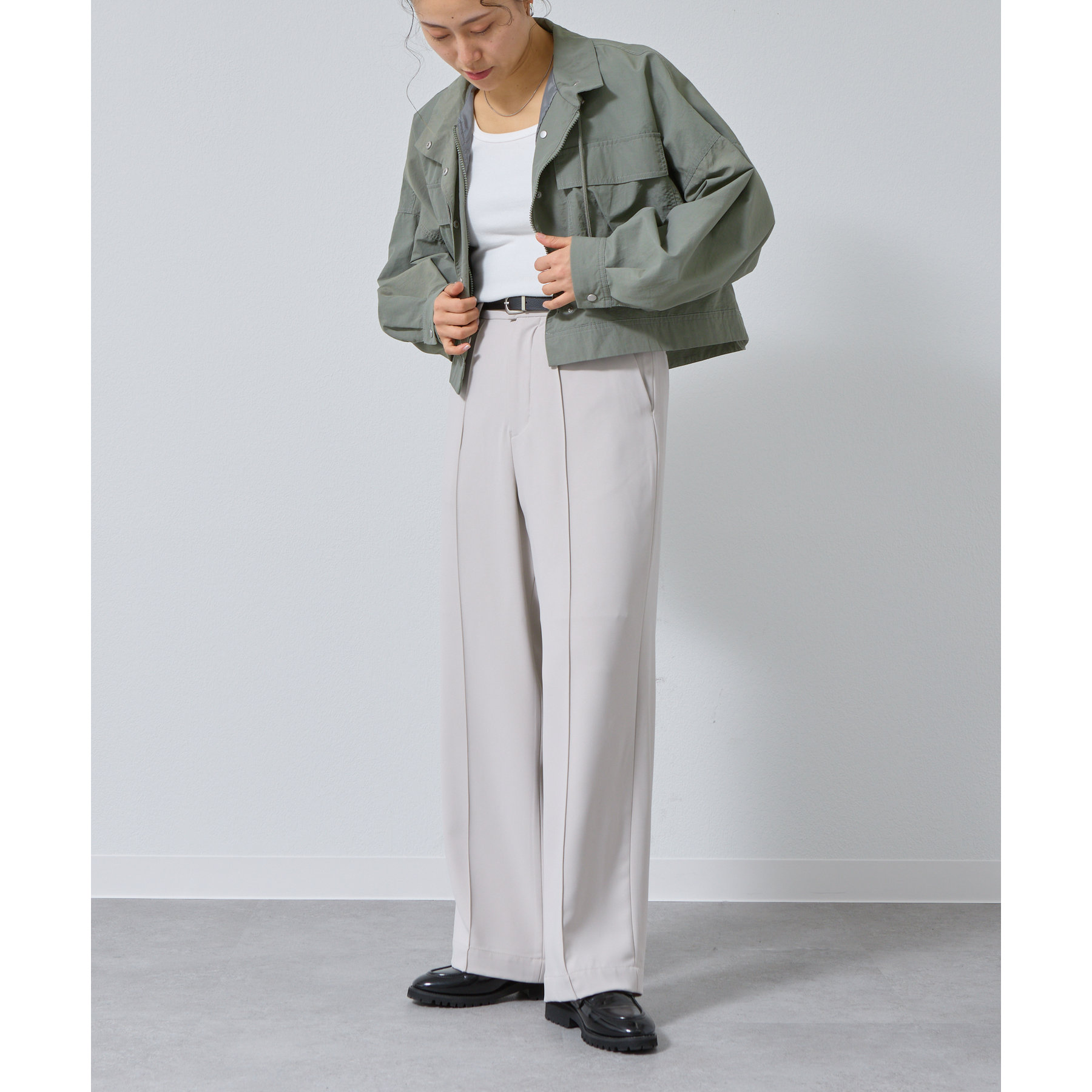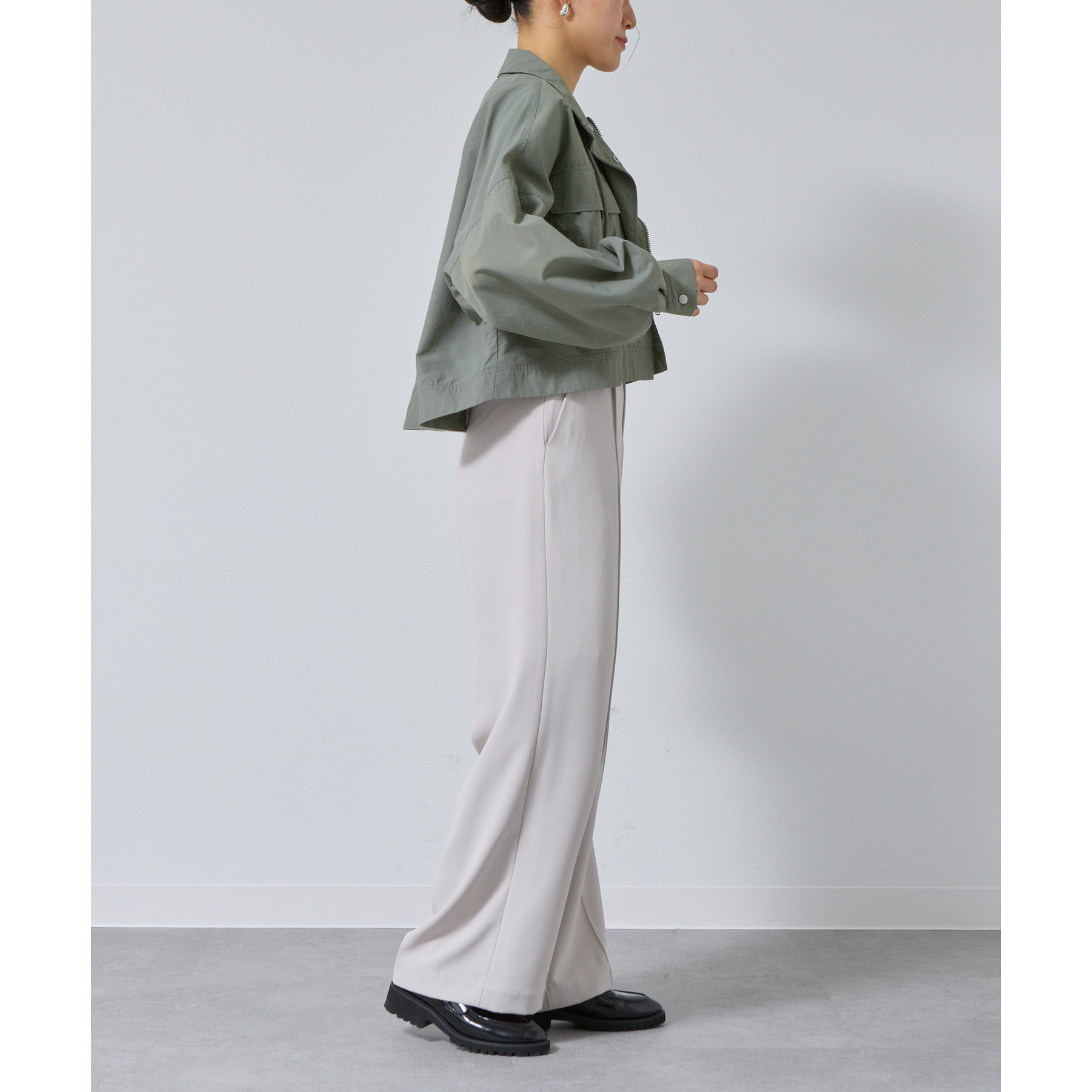 着丈が短くすっきりとした印象で、パンツでもスカートでも合わせやすいデザイン