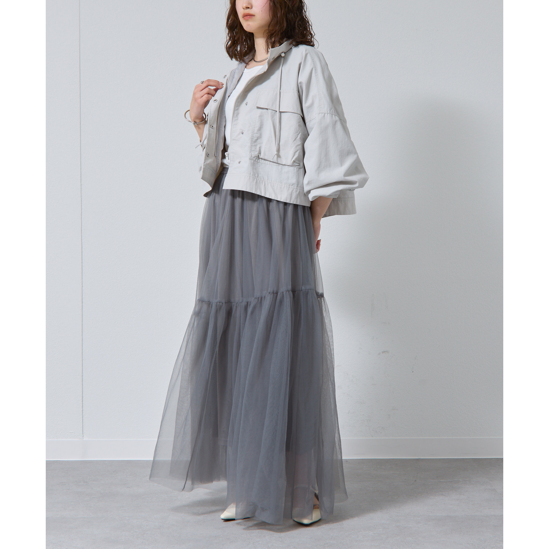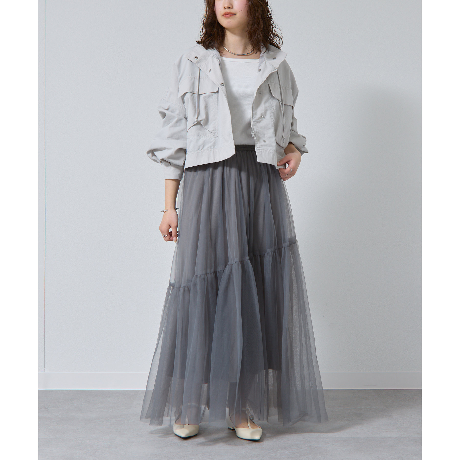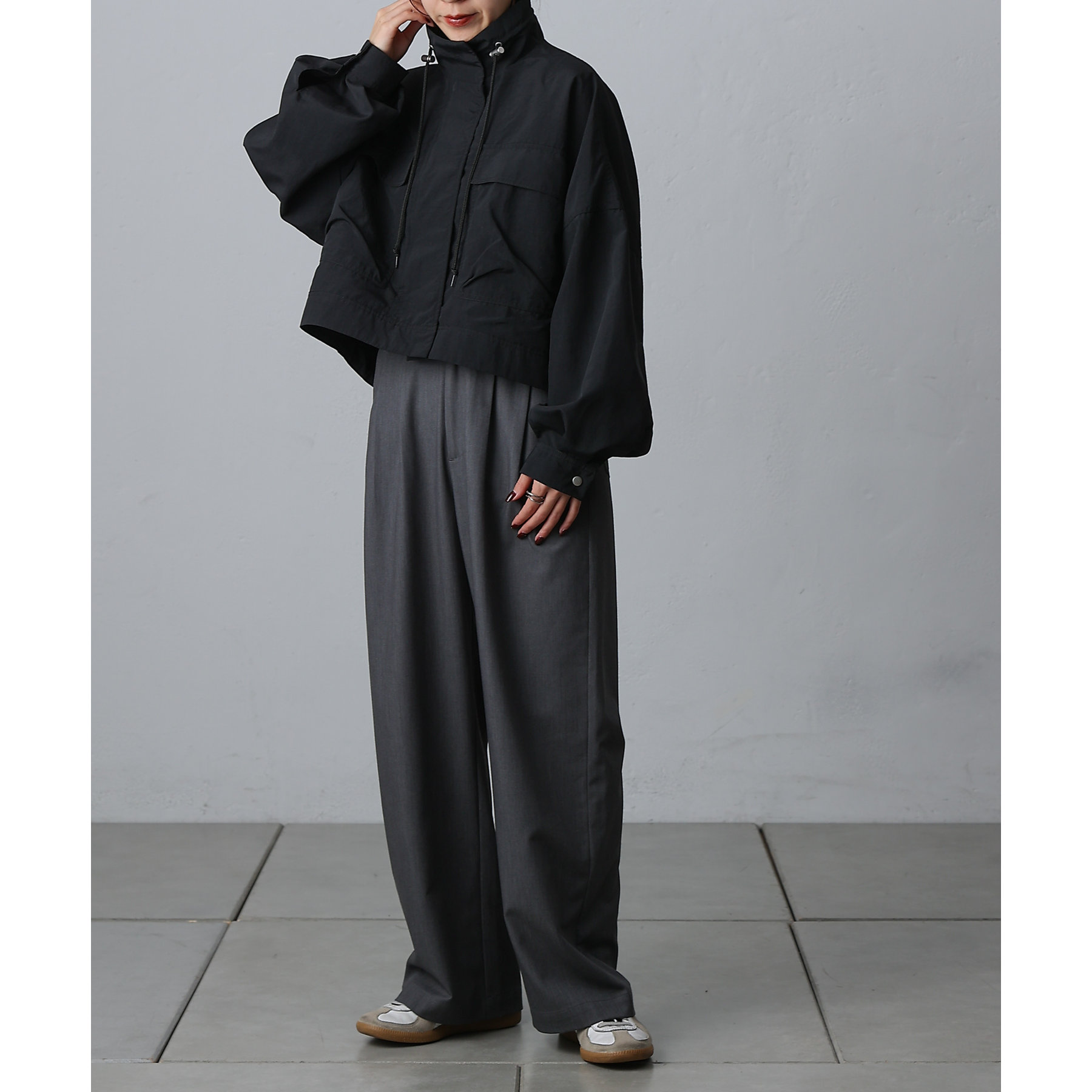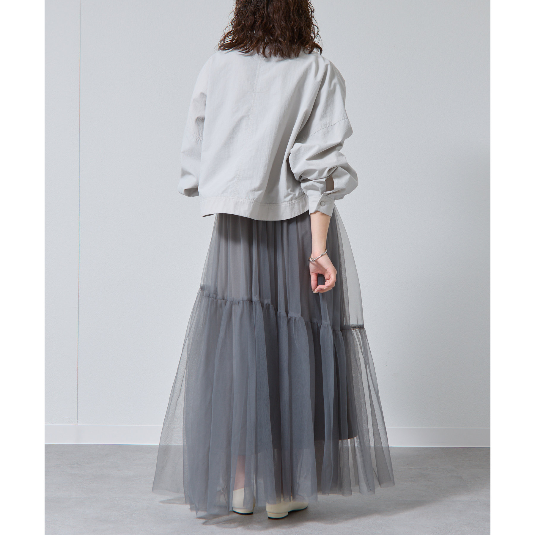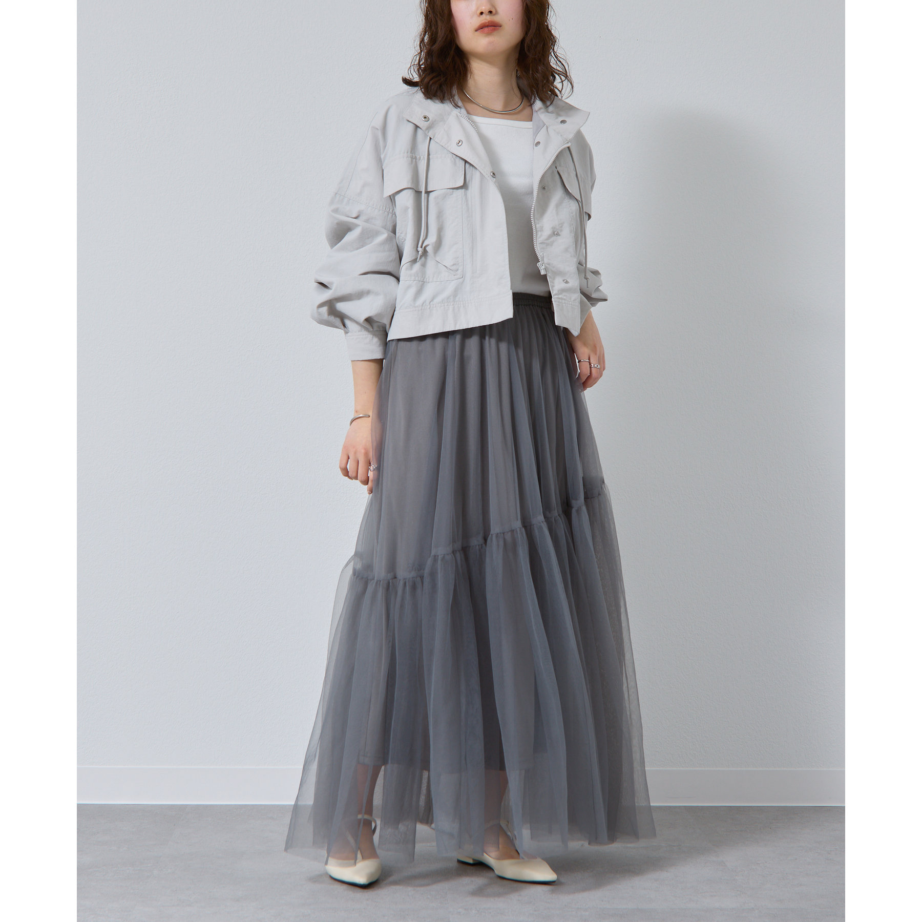 着丈が短くすっきりとした印象で、パンツでもスカートでも合わせやすいデザイン