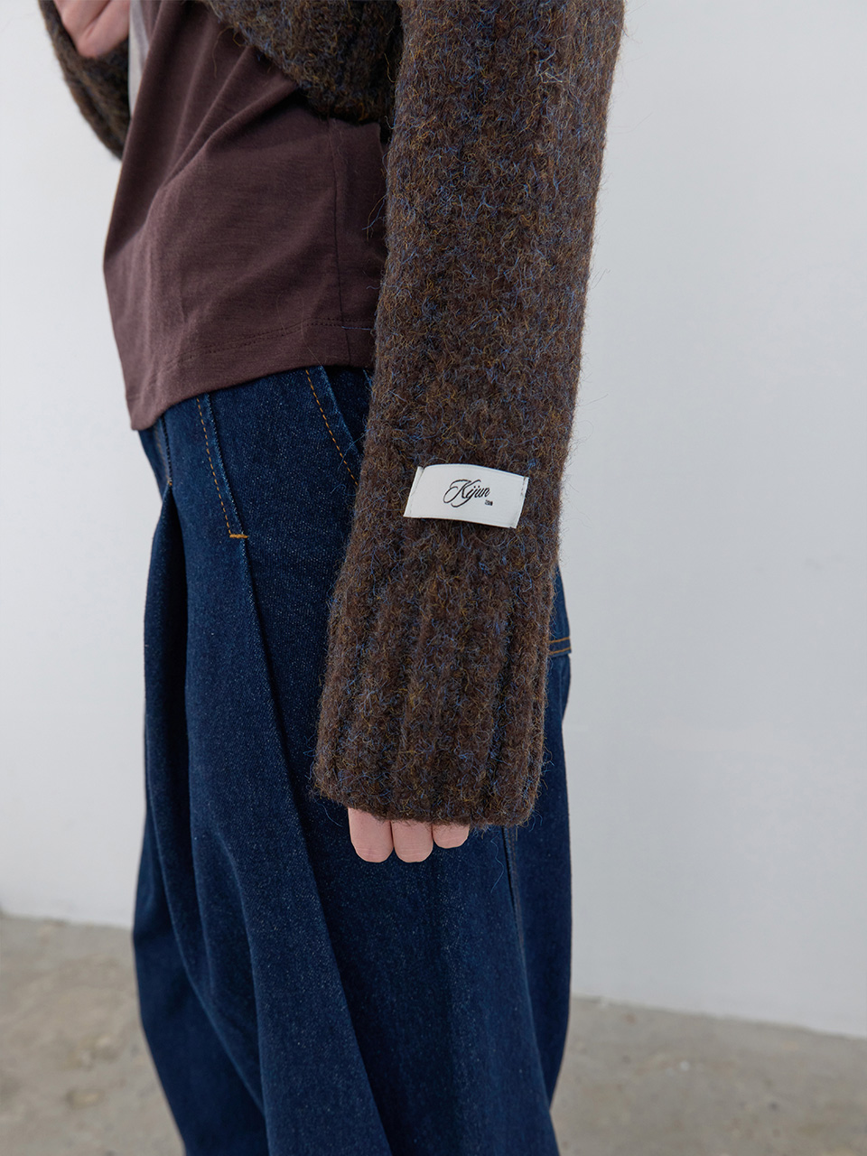 [yu x kijun] Cable Knit Bolero Dark Brown